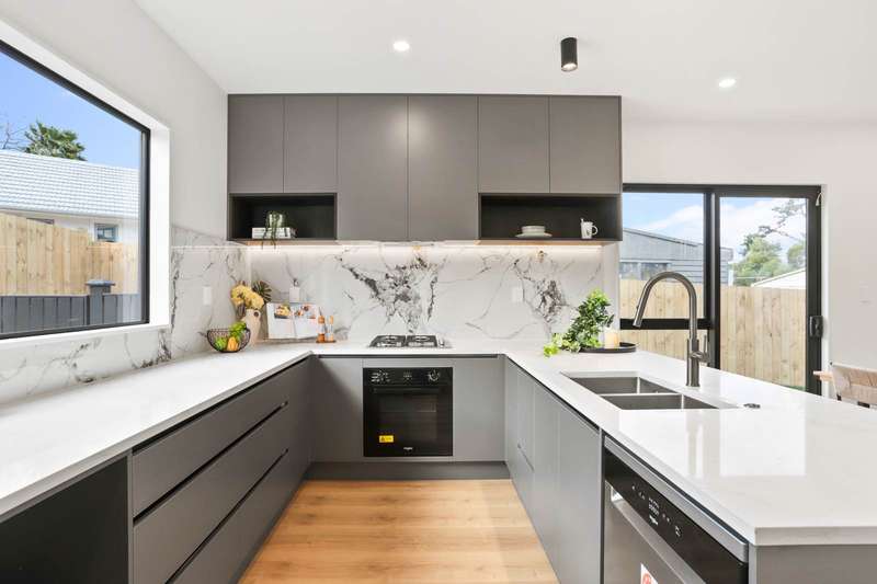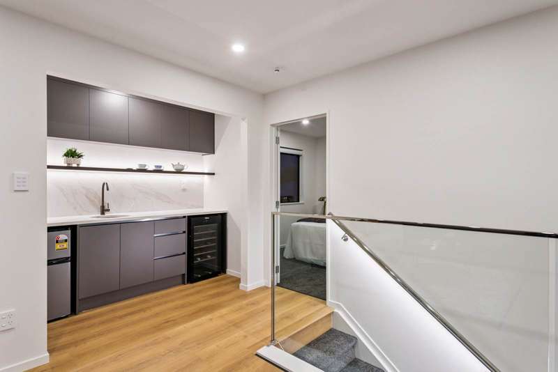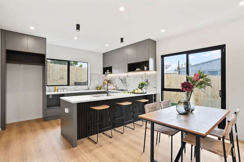 Tucked away in a peaceful pocket of Te Atatu South, this boutique collection of five brand-new townhouses brings together thoughtful design, premium finishes, and a lifestyle that feels both relaxed and refined. Crafted by an experienced developer, each home has been carefully planned to balance practicality with everyday comfort, offering layouts that make daily living effortless while still feeling distinctly stylish. At the end of the development, this home stands proudly as a free-standing four-bedroom home with a rare sense of space and privacy. Spanning 174m² on a 264m² section (more or less), it offers three bedrooms and two bathrooms upstairs, complemented by a separate living area with a bar that opens to sweeping city and harbour views. Downstairs, you’ll find a further bedroom and bathroom, creating flexibility for guests, teenagers, or extended family. The internal access single garage is accompanied by two off-street parks, ensuring convenience for modern living. Every detail has been considered to add genuine value, from the built-in cabinetry that anchors the living rooms with elegance and function, to the ease of automated curtains in the downstairs spaces. European appliances bring trusted performance to the kitchens, while expensive Kwila decking extends living areas outdoors with a touch of sophistication. Ready-laid lawns complete the picture, so you can settle in and enjoy from the moment you arrive. This special enclave sits moments from the riverside reserve and the Te Whau walkway, perfect for weekend strolls, bike rides, or simply pausing to enjoy the natural beauty on your doorstep. With so much to offer in both design and lifestyle, these homes are an exceptional opportunity not to be missed - secure yours today.