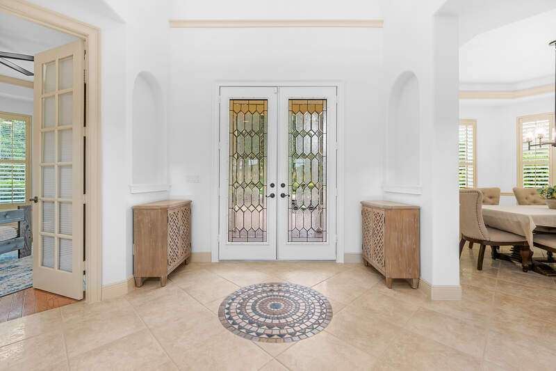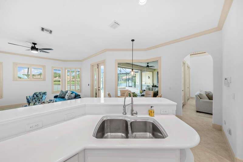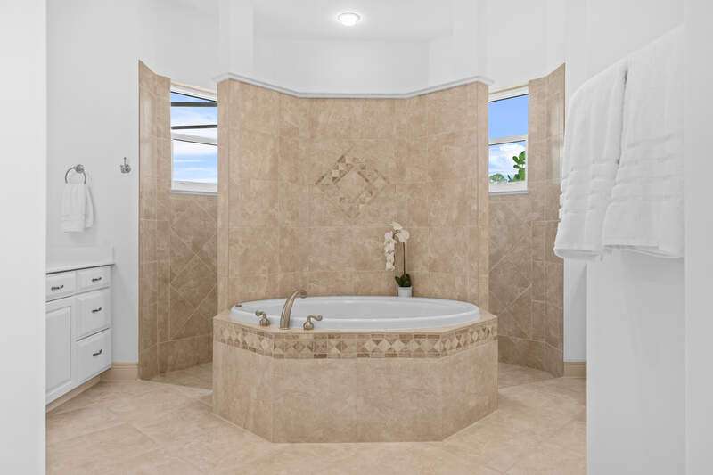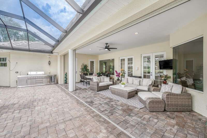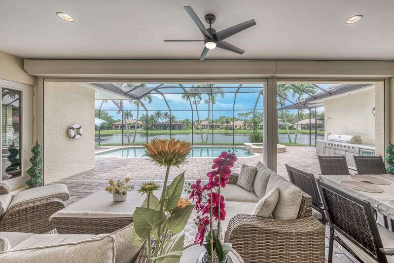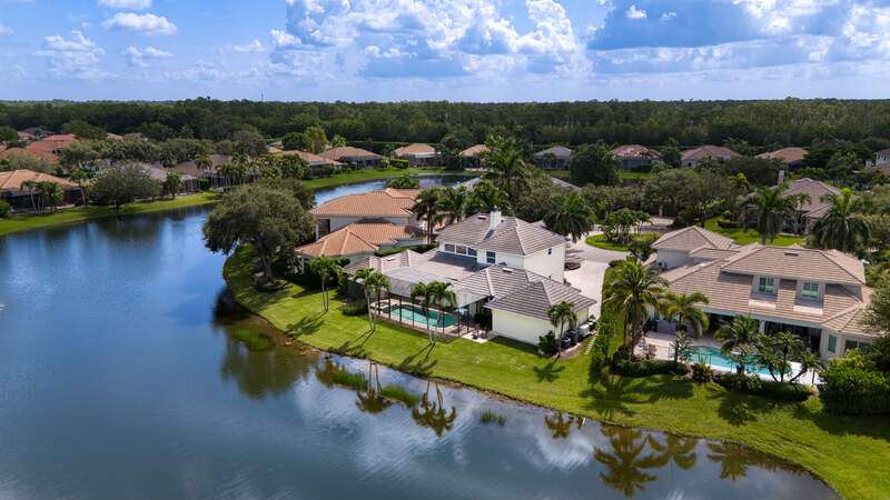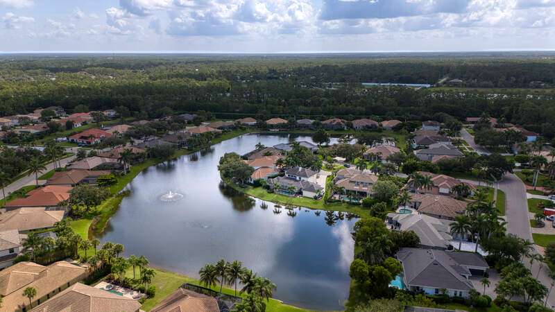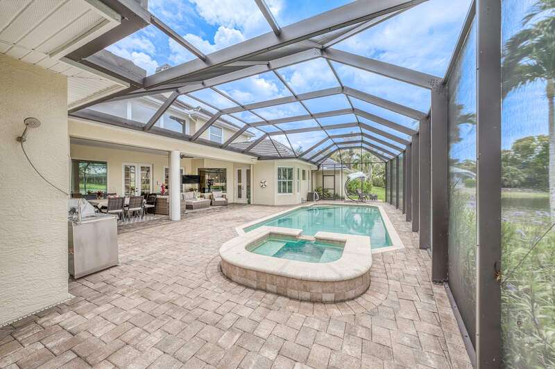 The ultimate in Naples and Florida living is ready for you. Boasting nearly 3,600 sq. ft. of living space, this rarely available 2-story concrete block residence with plenty of natural light, offers 4 bedrooms + den, 4 full bathrooms, and a pool bath. This home represents an exceptional market value, priced below recent appraisals and comparable sales, offering buyers a rare opportunity to own a property enhanced by hundreds of thousands of dollars in thoughtful upgrades. The heated saltwater system pool, jacuzzi, 3-car garage, and cul-de-sac location provide both luxury and privacy, while direct access to North Collier Park and top-rated schools make this ideal for families. No detail was overlooked: new light fixtures, fresh paint, and modern upgrades enhance every corner of this stunning property from top to bottom. The grand foyer with soaring ceilings leads to the formal living area, while all new impact-resistant doors and windows ensure peace of mind. A newer 24kW Generac whole-house generator with a 500-gallon underground LP tank offers up to 5 days of backup power. The chef's kitchen features newer LG stainless steel appliances (under extended warranty), granite/epoxied counters, a large walk-in pantry, and chic functional style. In the North wing, the first-floor primary suite is a true retreat, with a double vanity, double walk-in closets, separate tub and walk-in shower with double shower heads, and private access to the enclosed lanai, also, the den/office, large formal dining room, formal living room and a family room. Upstairs, two guest bedrooms share a Jack-and-Jill bath, and an ensuite offers abundant natural light and privacy, along with a custom built-in bookshelf for the avid reader. Resort-style living continues outdoors with 145 feet of west-facing water views, a saltwater pool and spa, built-in outdoor kitchen with 8-burner gas/charcoal grill and refrigerator, powder room, and covered lanai perfect for entertaining. The 3-car garage includes epoxy flooring, AC, and extra storage. Additional upgrades include brand new LG washer/dryer, whole-house spring water reverse osmosis filtration and UV system, 2023 HVAC system, and a 2019 Tile Roof, fountain, paved circular driveway, automatic irrigation system, automatic front door, and lanai patio hurricane roll down shutters. Wilshire Lakes offers the ultimate in luxury, man-guarded 24 hours security gate, located less than 6 miles from the pristine white-sand Naples beaches, nearby shopping, fine dining, entertainment, west of I-75, rate A school zone and much more... -this home is truly a gem!
