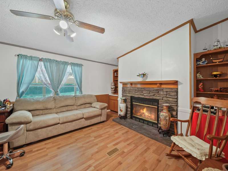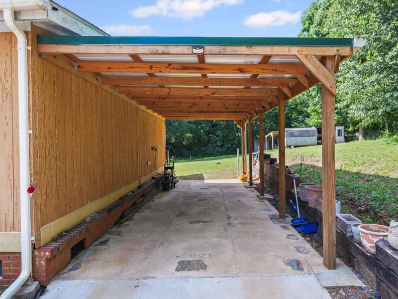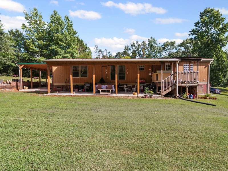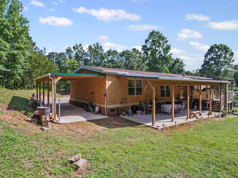 Come enjoy the serenity and space this property has to offer! Nestled on almost one acre, this 3-bedroom, 2-bath, well-maintained home welcomes you with its comfort and many updated features. Step inside to discover an inviting living room and a spacious den, all part of an open concept floor plan. The split bedroom plan offers privacy, and you'll appreciate the beautiful, easy-to-care-for wood laminate floors throughout. The kitchen boasts some updated cabinets, a breakfast bar, and separate dining area. Outside, the newly covered (2024) deck and expansive covered patio are perfect for relaxing evenings or entertaining friends and family. Other updates that will give you peace of mind include: carport installed in 2023 and roof replaced in 2024. Conveniently located, you'll have easy access to I-85 and be just a stone's throw from the new Two Kings Casino. This home truly offers peaceful country living with conveniences close at hand.