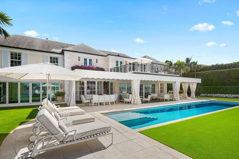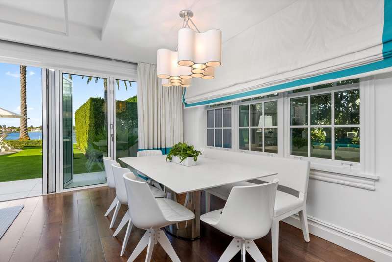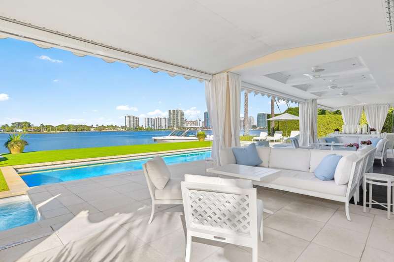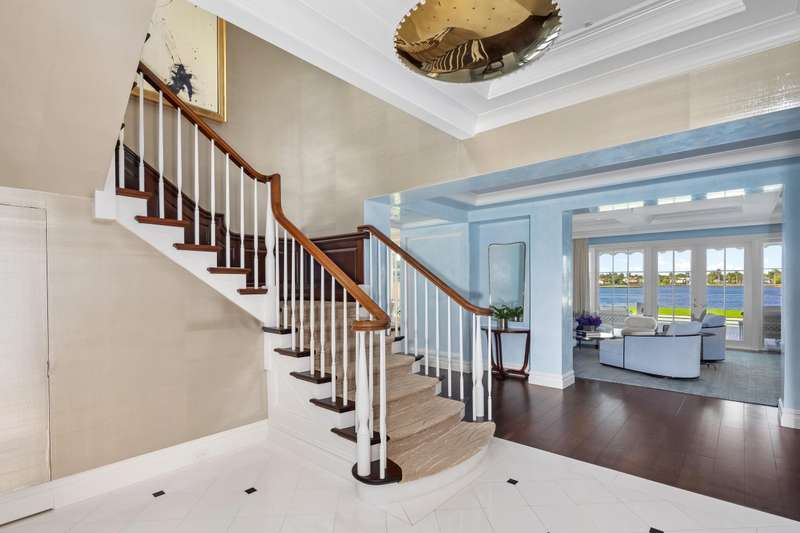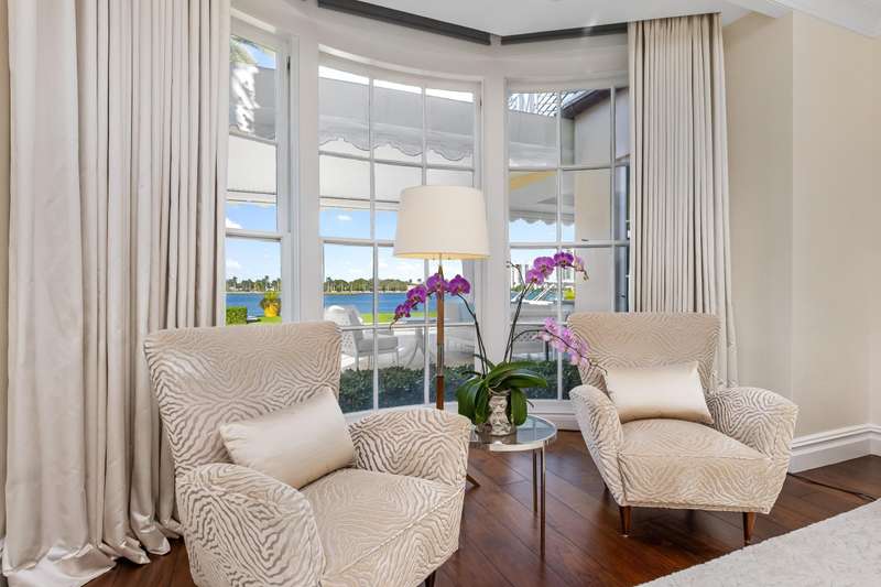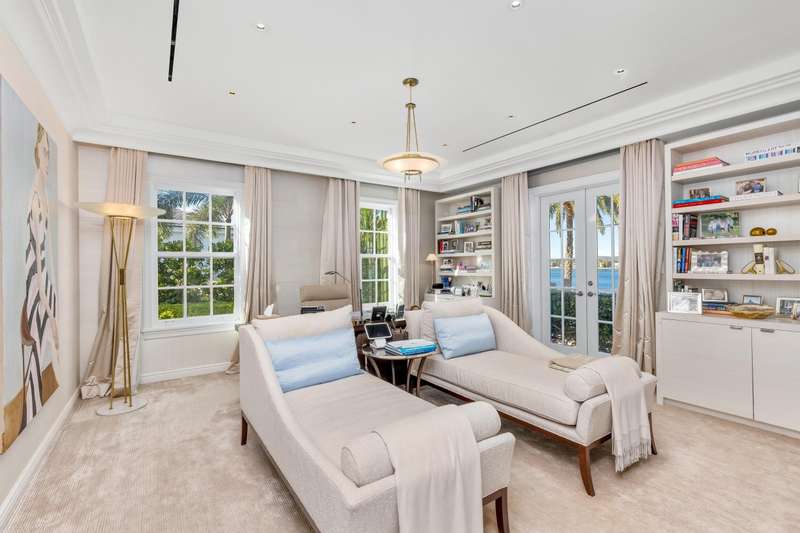 Welcome to 631 Island Drive, an immaculate direct intracoastal Georgian-style residence on coveted Everglades Island in Palm Beach. The home boasts 6 bedrooms, 6 full bathrooms, and 3 half bathrooms. Experience exceptional sunsets with panoramic west-facing views greeting you from every inch of the expansive Primary suite and downstairs living spaces. With 130 ft of direct water frontage, a private dock ready to accommodate your vessel, and a brand new roof, this fully gated estate features bespoke outdoor spaces for entertaining, dining, and relaxing, as well as a separate staff bedroom downstairs.
