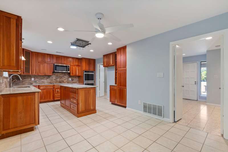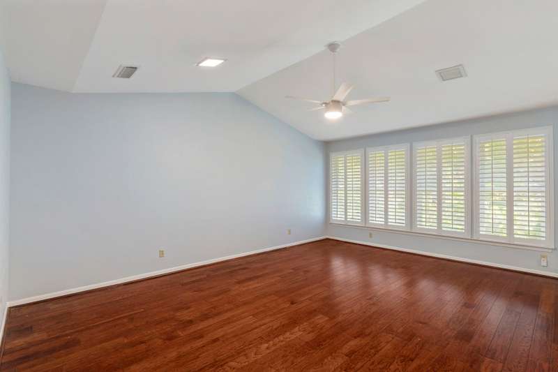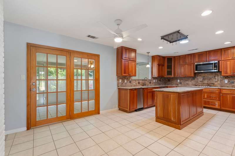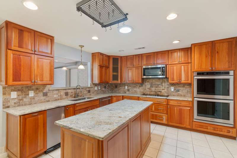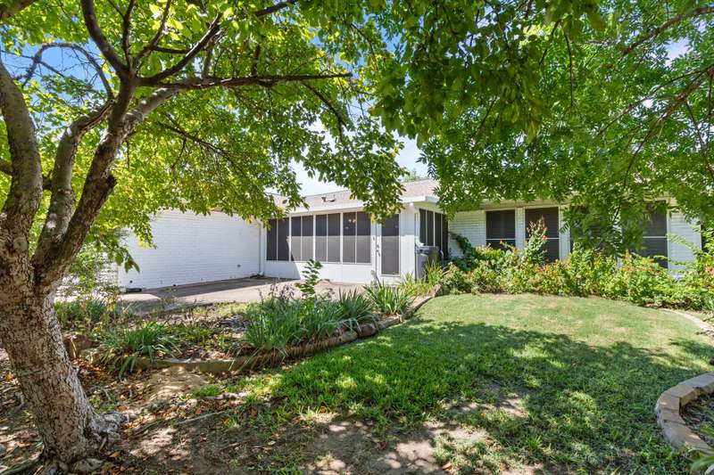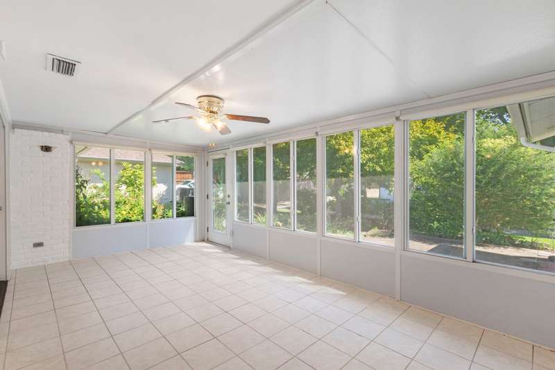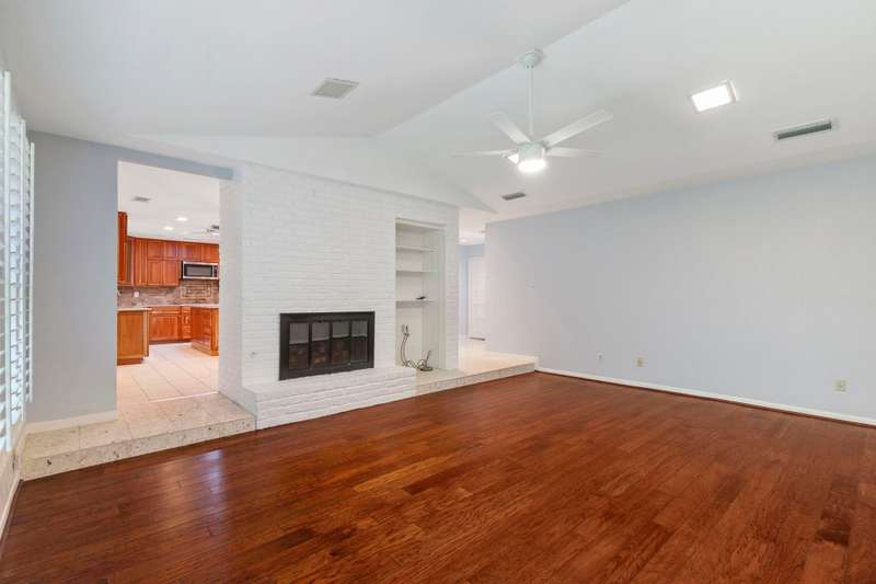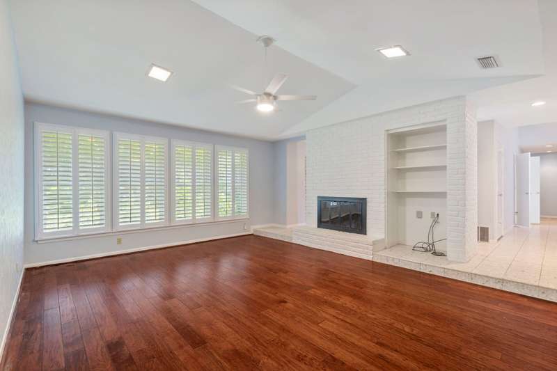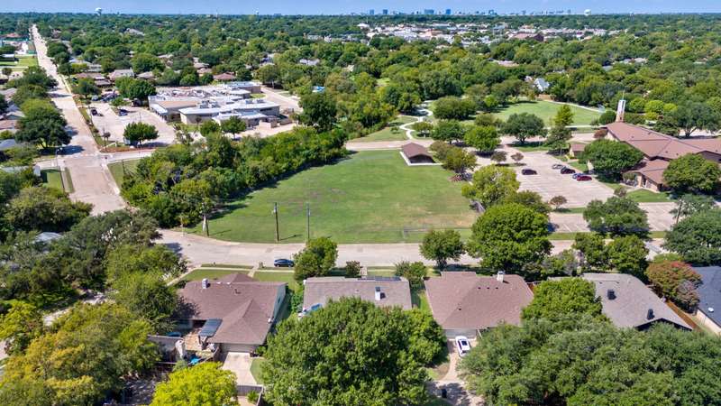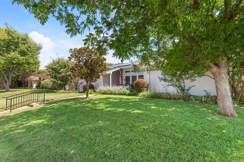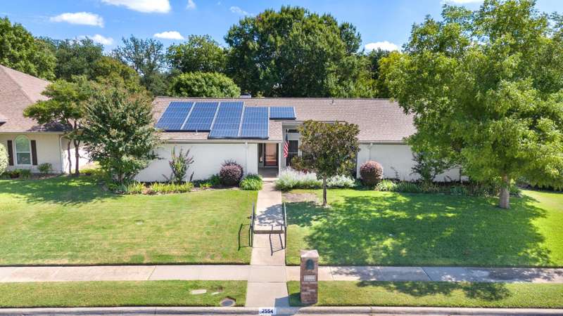 This beautiful single-story home offers an ideal blend of comfort, functionality, and convenience with 4 spacious bedrooms and 2.5 bathrooms thoughtfully arranged across a versatile floor plan. The welcoming den features warm wood floors, a charming brick fireplace, and a wall of windows with plantation shutters overlooking the backyard, while a nearby half bath adds convenience for guests. The private primary suite is set apart on one side of the home, filled with natural light from large windows with plantation shutters, and includes a serene bath with dual sinks, granite countertops, and a walk-in closet. On the opposite side, three guest rooms share a full bath, creating a perfect layout for family or visitors. The updated kitchen is a chefs delight with new cabinets, granite countertops, an island with pot hanger, built-in microwave, pot filler, induction cooktop, and double ovens, seamlessly flowing into a breakfast nook and an air-conditioned sunroompermitted and added in 2005ideal for morning coffee or relaxing afternoons. A formal dining room overlooks the front yard and is perfect for entertaining or hosting special meals. Major updates include a roof replacement in 2016 and all windows replaced in 2008, offering peace of mind and long-term value. Mature landscaping frames both the front and backyard, adding shade and curb appeal, while the homes location overlooking a neighborhood park provides peaceful views. Energy efficiency is another highlight, as the home is equipped with solar panels that significantly reduce monthly electric bills. With a church across the street and close proximity to Highway 75, George Bush, shopping, dining, and more, this home offers not only beautiful interiors but also the convenience of a prime location, making it a wonderful place to call home.