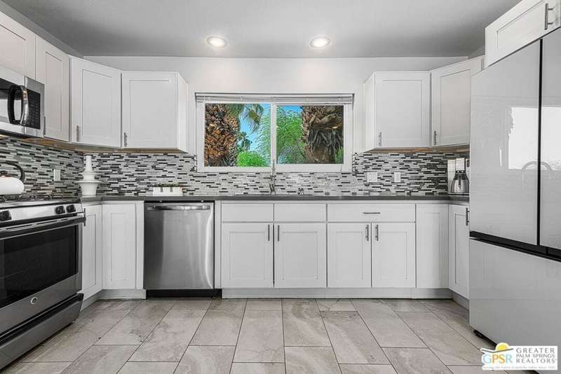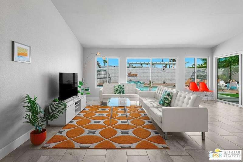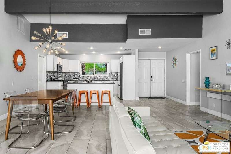 Set in the Desert Park Estates neighborhood, this updated Palm Springs home offers a seamless blend of comfort, function, and timeless indoor-outdoor living. Natural light fills the interior, where vaulted ceilings and tile flooring create an open, easy flow through the living, dining, and kitchen areas. A wall of double-pane sliders leads to the private backyard retreat - complete with pool, spa, gas fire pit, and covered patio - all set against a backdrop of dramatic mountain views. Four bedrooms and two bathrooms include a spacious primary suite with dual vanities and direct access to the yard. Owned solar panels support energy efficiency, while mature desert landscaping - with pops of color and texture - enhances curb appeal and creates inviting spaces to relax or entertain. Tailored for easy living and designed to make the most of the Palm Springs lifestyle, this home is ready to welcome you. Schedule your private showing today!