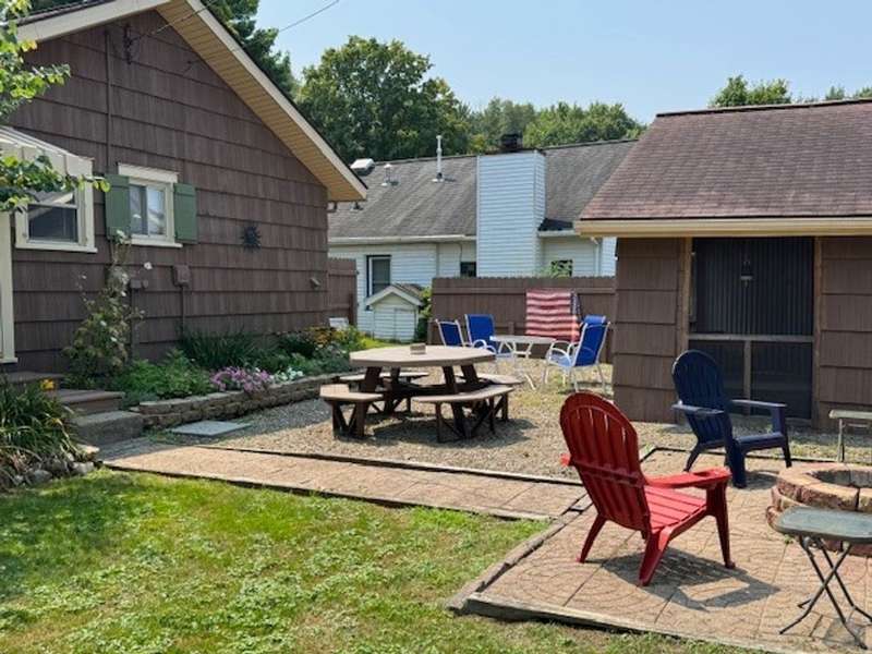 A great place to make memories at the lake! This recently renovated property has much to offer. Both the main house and guest quarters feature two bedrooms and a full bath. The open floor plan in the main welcomes you into the inviting living area. Perfect for relaxing and entertaining. With a large double parcel, you have space to enjoy the great outdoors with your manicured landscape and brick patio with built-in fire pit. A large shed gives you the extra storage you need. Included is a designated boat slip, beach access and access to the playground in Huidekoper Bay Park! It's time to make your own memories at the lake.
