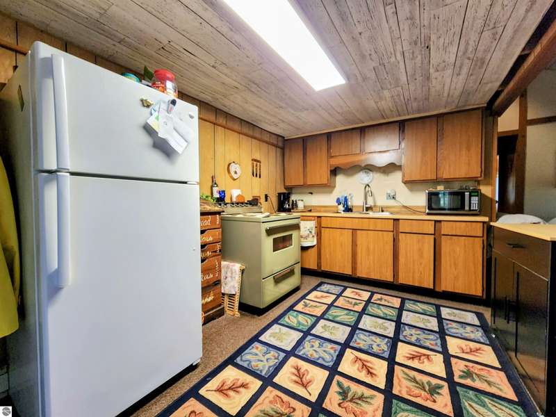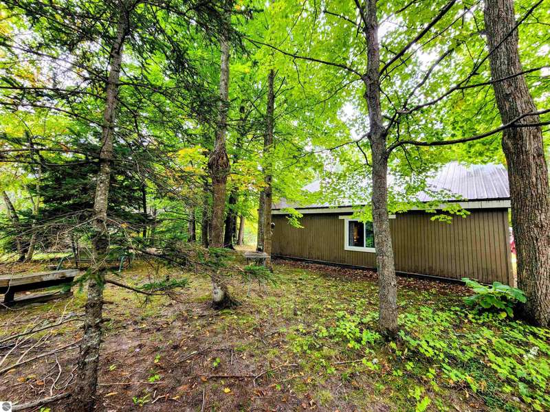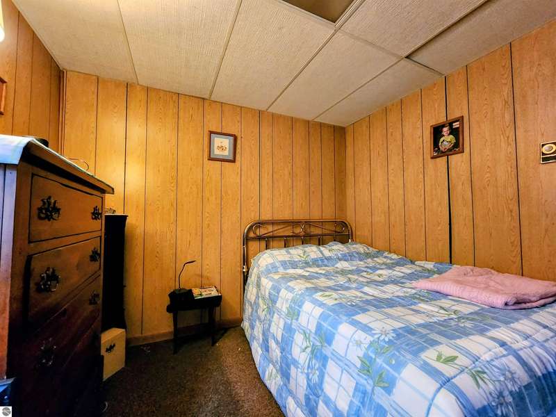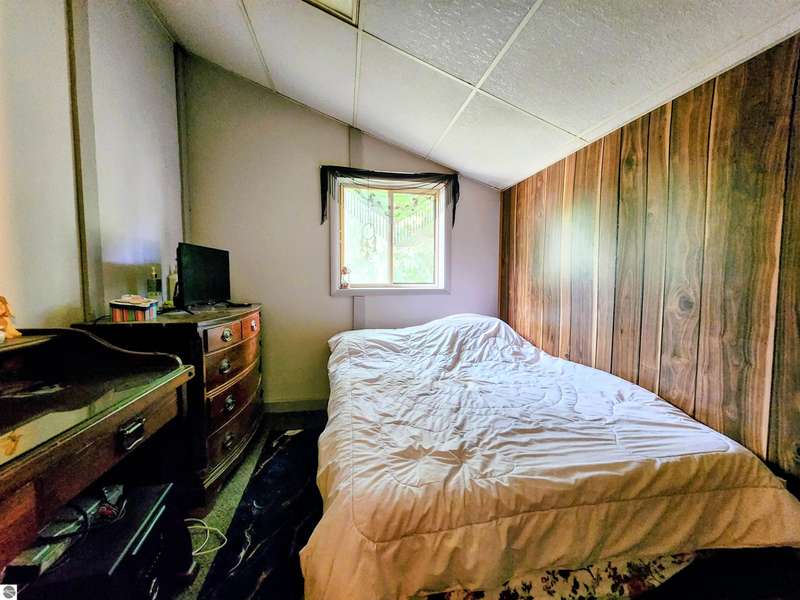 Located on a quiet cul-de-sac in Lakes of the North, this story-and-a-half home offers a comfortable Northern Michigan retreat. The floor plan includes 2 bedrooms (1 non-conforming), a 3/4 bath, and a cozy main living area that connects to the kitchen and dining spaces. The upper level provides additional sleeping or flex space, ideal for guests, storage, or a home office. Built on a slab foundation, the property also features an oversized 1-car garage with room for parking, storage, or recreational equipment. Surrounded by trees, the setting provides privacy and a quiet Up North atmosphere. As part of the Lakes of the North community, you'll have access to an indoor pool, fitness center, golf course, clubhouse, private lakes, campground, and miles of year-round trails. Conveniently situated between Mancelona and Gaylord, this home is well-suited as a year-round residence, seasonal getaway, or vacation rental.