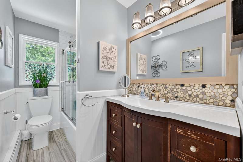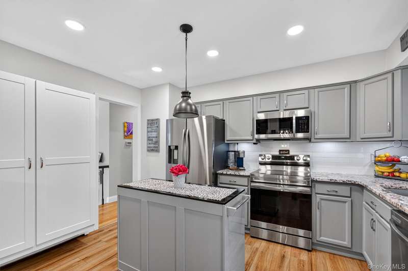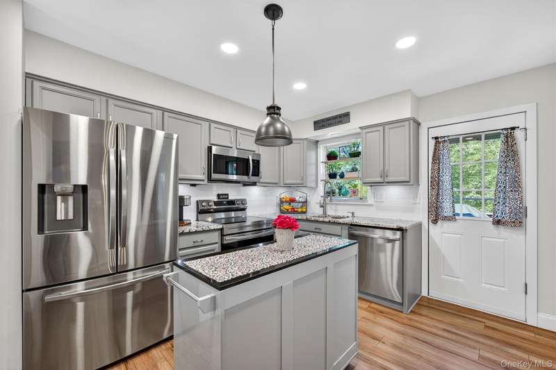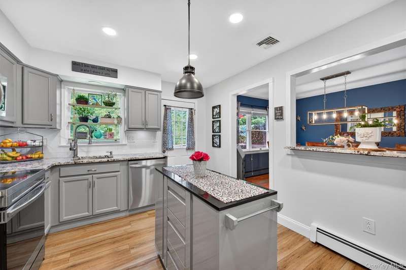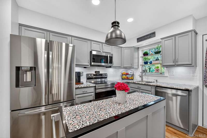 Motivated Sellers are relocating for work and have adjusted the price to make this home your opportunity!!! Expertly maintained and thoughtfully upgraded by its contractor-owner, this beautifully enhanced bi-level home in Highland Mills offers exceptional quality, comfort, and style all within the coveted Cornwall School District and the Town of Woodbury Recreation area. Set behind a unique front garden retreat, the property features an expansive paver patio surrounded by professionally landscaped gardens with extensive flower beds accented by decorative river rocks, custom retaining walls, and thoughtfully placed lighting creating the perfect spot to relax outdoors. The brand-new double-wide driveway adds to the home s curb appeal, and the front entry was refreshed in 2019 with a new door that enhances its welcoming charm. Step inside to find a bright, freshly painted interior (2024) filled with natural light. The kitchen, fully renovated in 2021, shines with granite countertops, stainless steel appliances (including an electric stove with air fryer), a deep 9-inch undermount sink, LVP flooring, custom backsplash, pendant lighting, and granite pass-through. The dining room accommodates a large table beneath a striking custom fixture, while the living room offers warmth and character with its stone fireplace wall, mounted TV, and electric fireplace. Gorgeous hardwood floors and updated blinds enhance the main living spaces. All three bedrooms feature ceiling fans, ample closet space, and abundant natural light. The main bath was fully renovated with quality finishes, while the lower level offers a spacious family room with tile flooring, a lovely half bath, a flexible office space, and a heated one-car garage. Additional highlights include upgraded 200-amp electrical service (2024), central air (2024), sump pump (2023), water softener, Samsung washer and dryer (included), and a CO for the generator and electric car charger setup. The private backyard is framed by mature trees, rows of flowering shrubs, and meticulous landscaping, offering a peaceful setting. Enjoy all the benefits of Town of Woodbury Recreation including parks, playgrounds, a beach, and a pool complex with slides. This is a special home that s move-in ready and designed for modern living don t miss it!