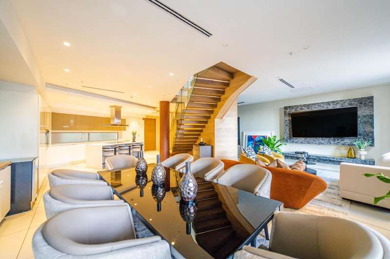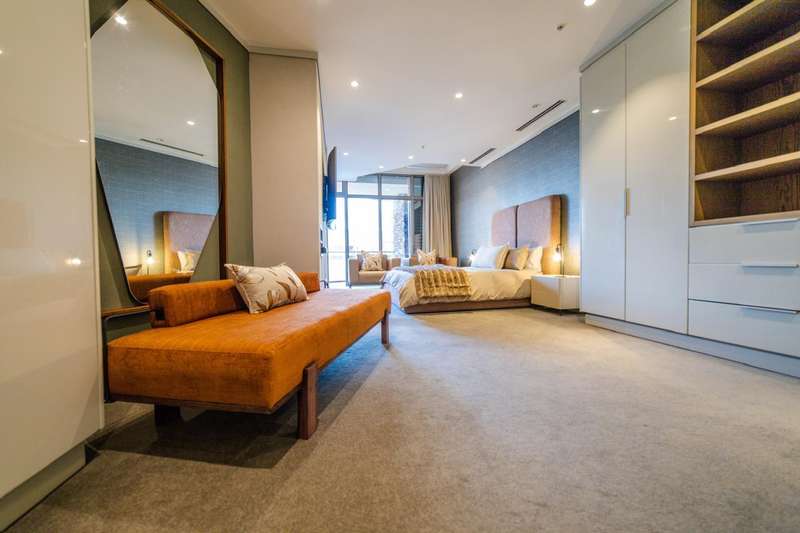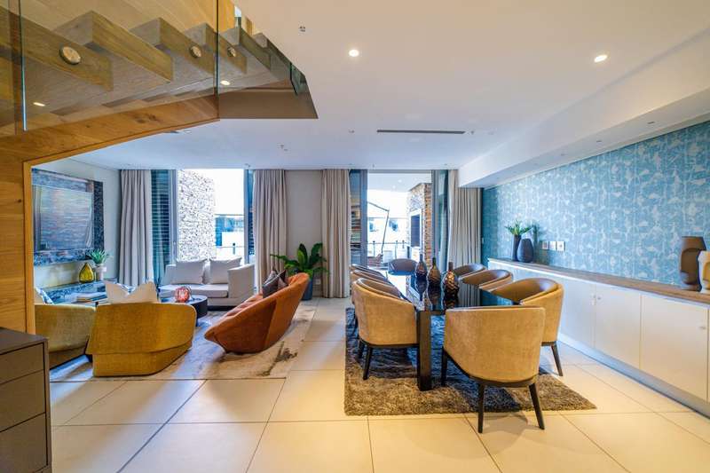 Located in the esteemed Katherine and West precinct, this architectural masterpiece embodies the epitome of luxury living. With unobstructed jetliner views from every room, this penthouse apartment is a rare gem. One of only seven units, it boasts its own private lobby, situated on a prime corner site in the Sandton CBD, mere steps from the Sandton Gautrain Station. Exclusive Features This stunning penthouse offers: - 2 spacious en-suite bedrooms with 2.5 bathrooms, featuring heated flooring - Generous spaces and top-of-the-range finishes throughout - Spectacular rooftop views of the city lights - Private deck with gas braai and indoor-outdoor dining experience - Extensive upper-level deck with city views Luxurious Finishes - Chef's designer kitchen with large stone island and Miele appliances - Oversized pivot door leading to an open-plan living area - Meticulous craftsmanship and bespoke finishes throughout Additional Amenities - Private 3-car parking bays - Private lift - 24/7 security - Private storeroom - Central Mitsubishi air-conditioning Experience the Best of Sandton Living This penthouse apartment is the ultimate in luxury living, perfectly designed for entertaining guests or relaxing after a long day. Its prime location, stunning views, and exceptional features make it a truly unique opportunity. To view this penthouse contact Johanna to book your appointment.