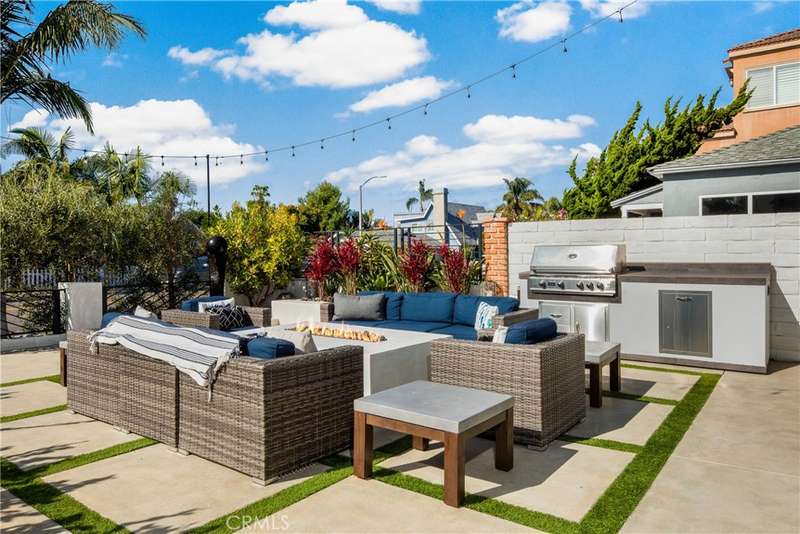 The inviting 800 sq.ft. front patio sets a distinguished first impression, offering an idyllic setting for open-air gatherings with a built-in fire pit, barbecue, artificial turf, and thoughtfully illuminated landscaping. Inside, expansive bi-fold doors open to create a seamless indoor-outdoor flow, uniting sophisticated design with relaxed coastal ambiance.