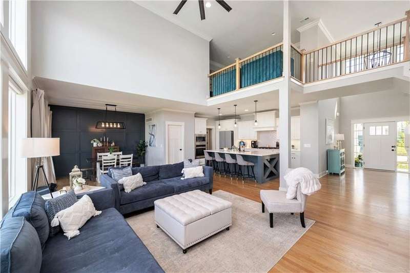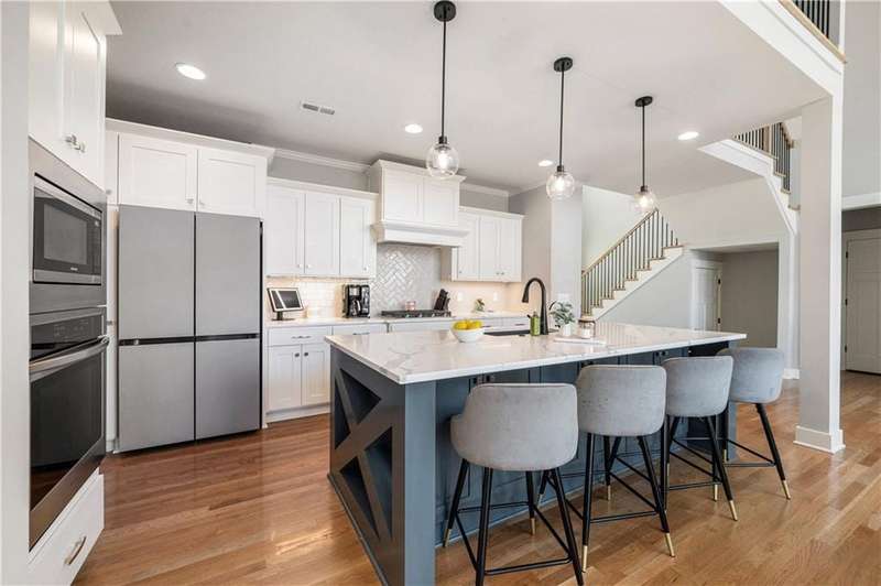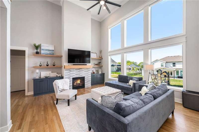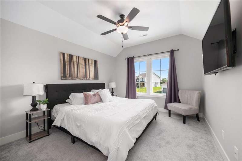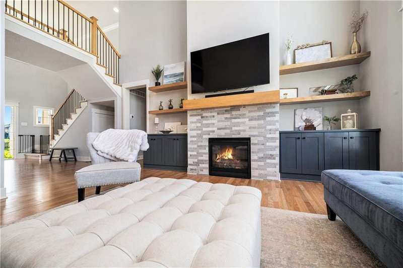 Beautiful 1.5 story located in popular Cadence subdivision. This 4 bedroom, 3.5 bath, and 3 car garage features tons of upgrades and was built in 2022. Aspen Mimosa floor plan. Entering through the home, one will be greeted with soaring ceilings, open floor plan, walls of windows, light hardwood floors, and an abundance of natural light. Chefs kitchen comes equipped with quartz countertops, oversized island, large walk-in pantry, gas stove, SS appliances, and loads of cabinet space. Kitchen opens to expansive great room with stone gas fire place, built-in shelving, and floor to ceiling windows with remote control blinds. Dining room walks out onto covered patio overlooking the back yard. Landry room and mud room area is off the kitchen. Main level primary suite is a true retreat offering double vanity, oversized shower, freestanding tub, and walk-in closet. Upstairs versatile loft area opens to great room below. Three additional bedrooms are located on the second floor. Two bedrooms share a Jack & Jill bath, while the third enjoys privacy of its own ensuite. All bedrooms have walk-in closets! Massive unfinished daylight basement with endless potential. Neighborhood amenities include swimming pool and walking trails. Located in the highly sought after Staley School District. Home is priced under new construction.