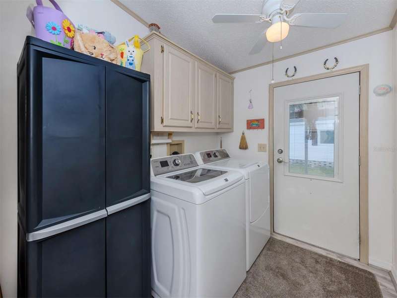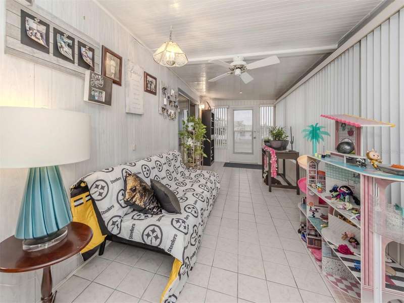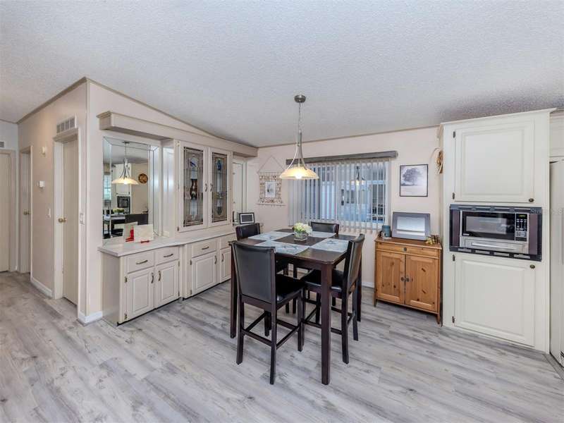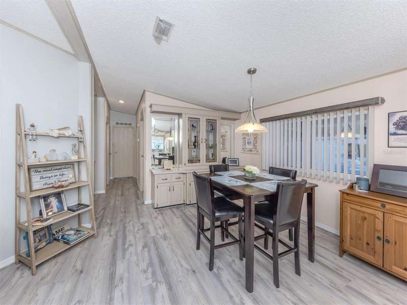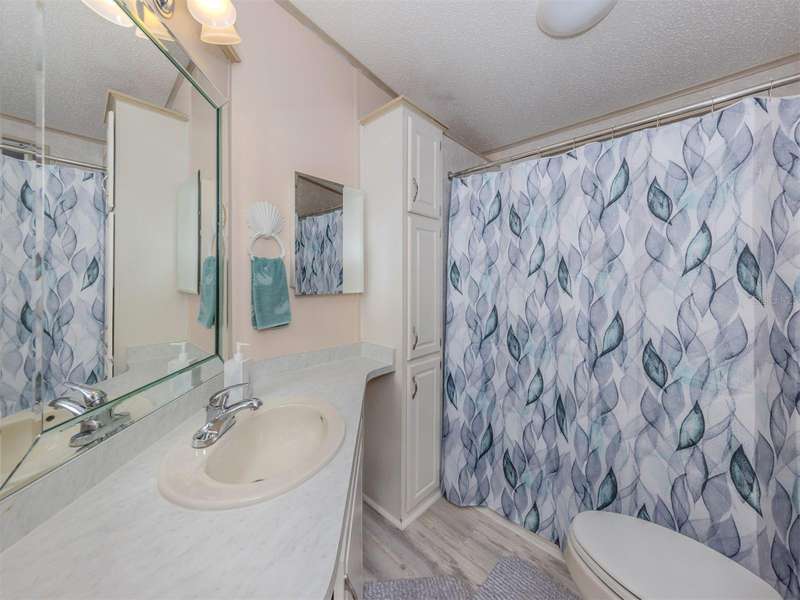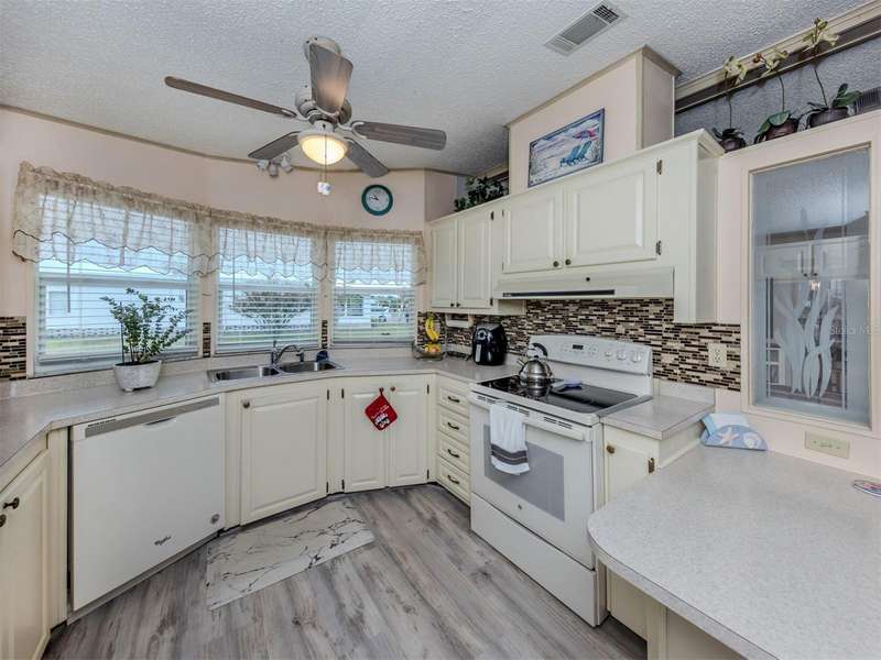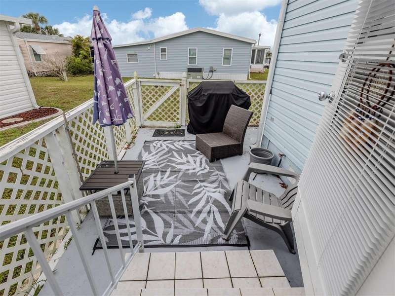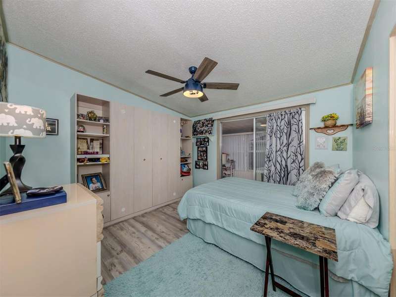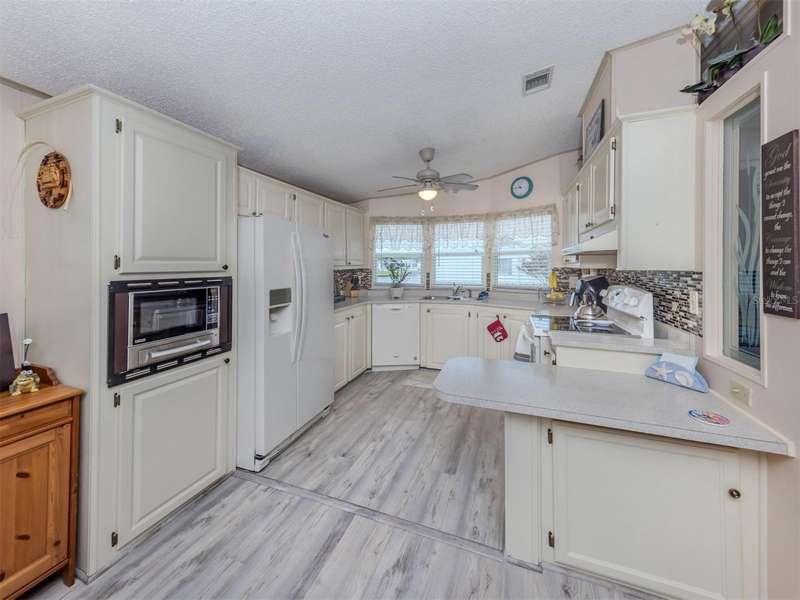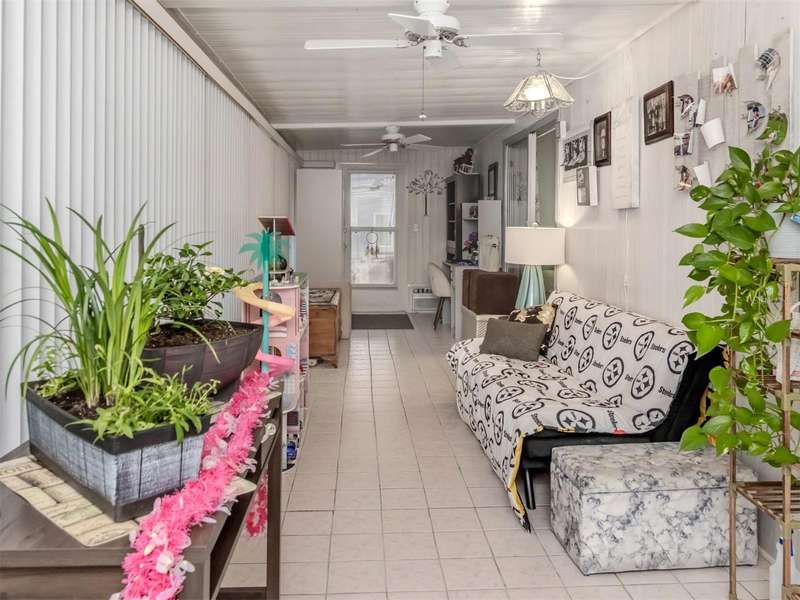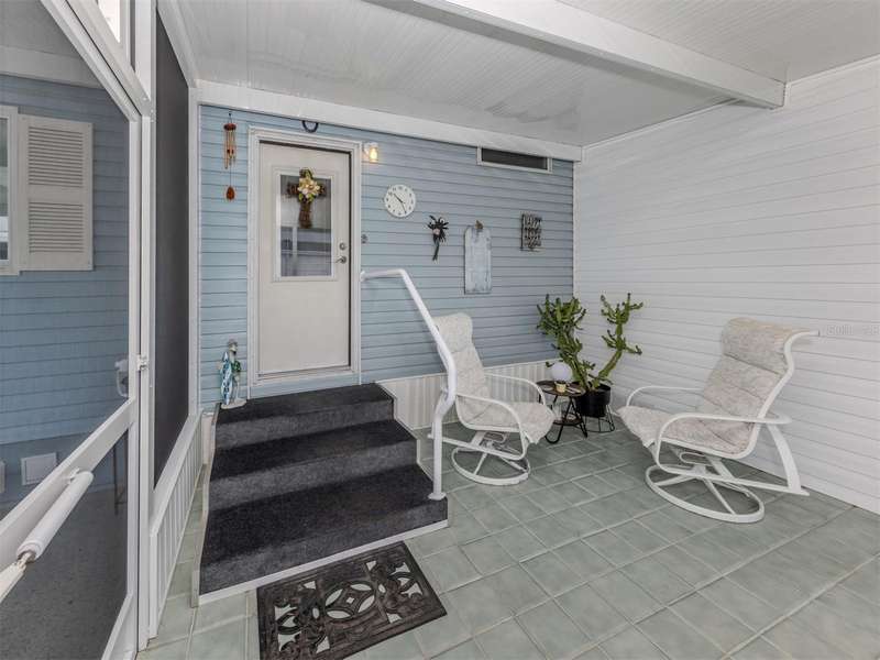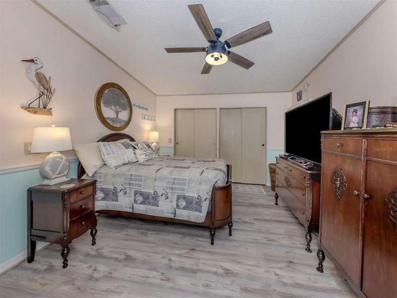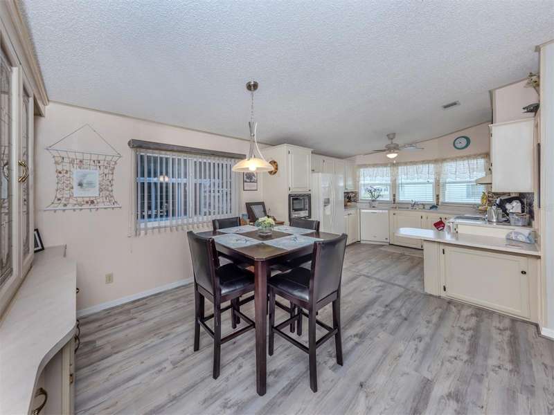 Welcome to this lovely and impeccably maintained 2 bedroom, 2 bath manufactured home located in the highly desirable, land-owned and pet-friendly community of Harbor Isles. Situated just across from the lake, this charming residence offers a light and bright interior with vaulted ceilings and new luxury vinyl flooring throughout. The cheerful kitchen features cream-colored cabinetry, a tile backsplash, and windows with lake views, creating a warm and inviting space for everyday living. An expansive Florida Room with glass windows and a dedicated window AC unit runs the full length of the home, providing the perfect spot to relax, entertain, or enjoy the serene surroundings. The updated windows (2013) throughout the home allow for plenty of natural light, while built-ins add convenient extra storage. The inside laundry room is another practical bonus. The spacious master suite includes an ensuite bath with a walk-in Jacuzzi tub, perfect for relaxing at the end of the day. The guest bedroom also features built-ins and sliding doors that open to the Florida Room, giving guests their own private retreat. Recent updates include a new roof (2023), AC (2017), new carport, shed, and a screened lanai—all oriented to enjoy the peaceful lake views just across the street. This home truly has it all and is move-in ready for full-time or seasonal living. Harbor Isles is a premier 55+ community nestled along the shores of the Myakka River. Residents enjoy a wide array of resort-style amenities, including a heated pool and spa, clubhouse with fitness center, tennis and pickleball courts, bocce ball, shuffleboard, and a marina with boat slips and a kayak launch. Social activities and clubs make it easy to connect with neighbors and enjoy the Florida lifestyle. Best of all, you own your land, and the low HOA fees make Harbor Isles an incredible value. Don't miss your chance to live in this vibrant, waterfront community—schedule your private showing today!