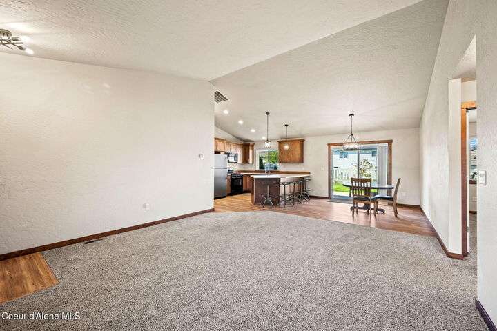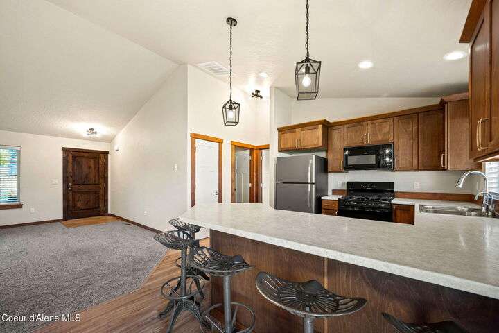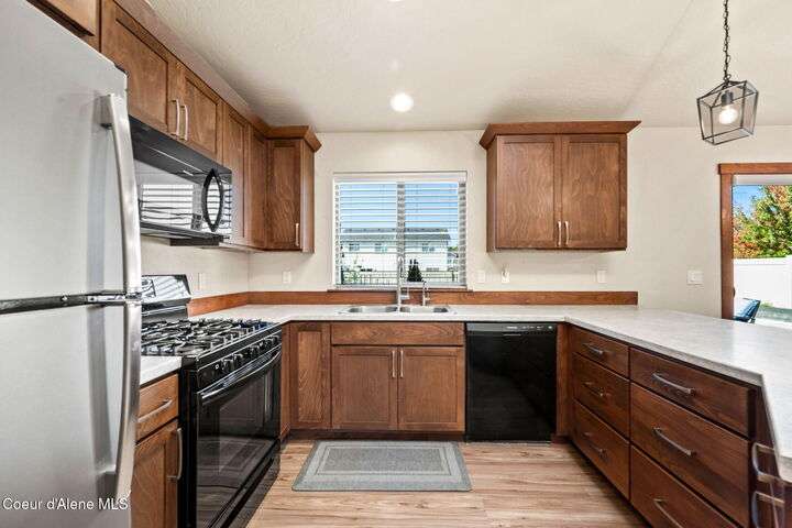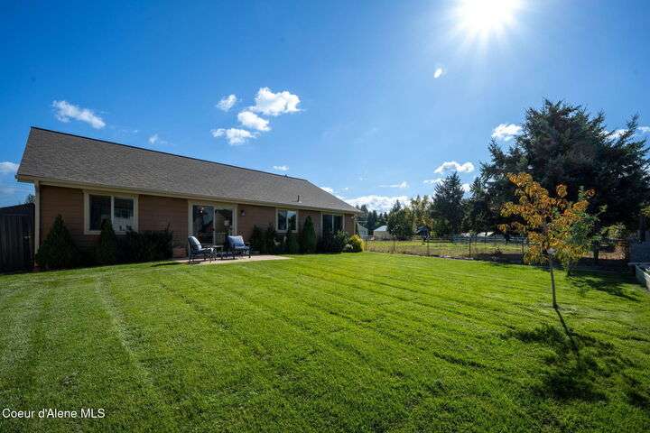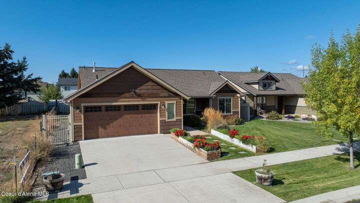 Welcome to this well-maintained 3-bedroom, 2-bath rancher situated at the end of a quiet street in a desirable Post Falls neighborhood. Offering 1,288 sq. ft. of open-concept living, this home features a bright and functional layout with gas forced-air heating and central A/C for year-round comfort. The fully fenced yard comes complete with front and back sprinklers, providing a perfect space for outdoor enjoyment. Built in 2018 and thoughtfully cared for, this home is move-in ready and full of modern convenience.