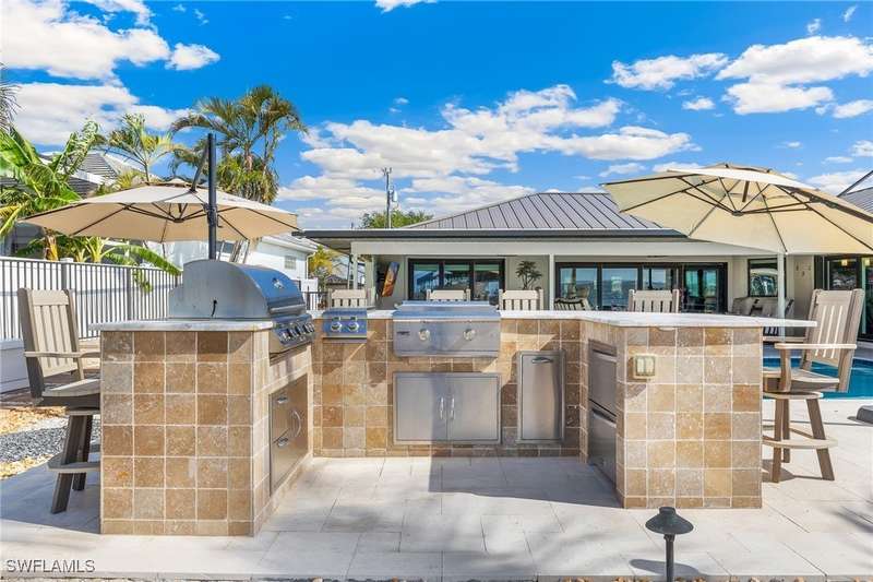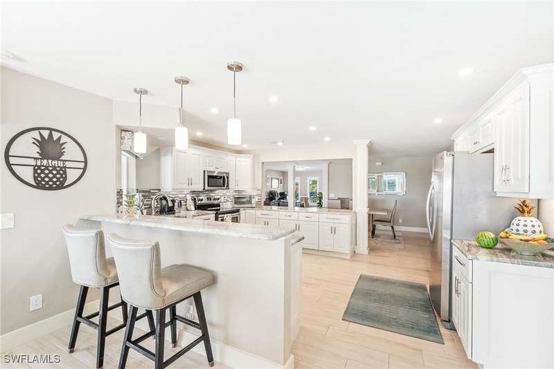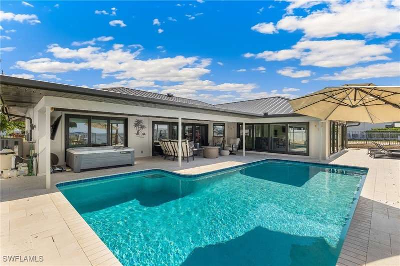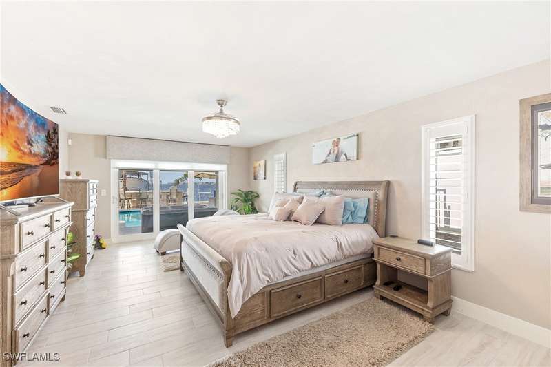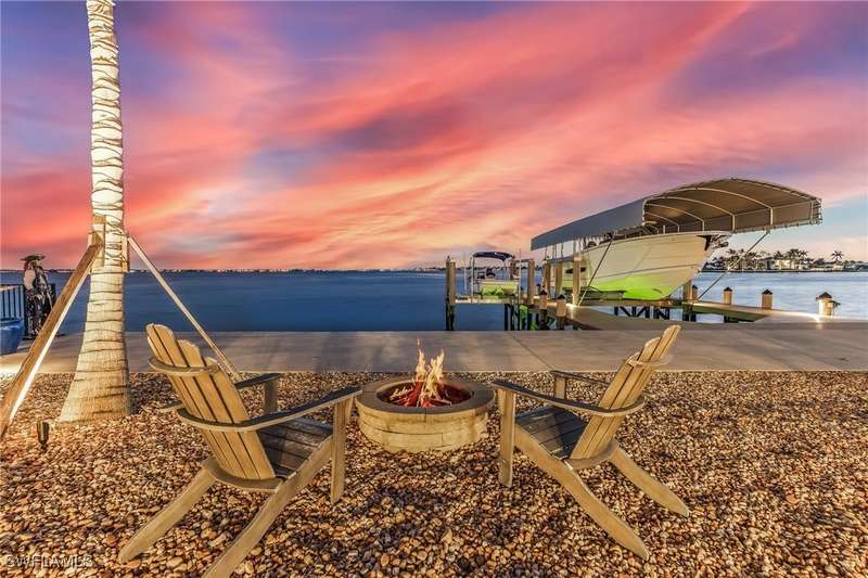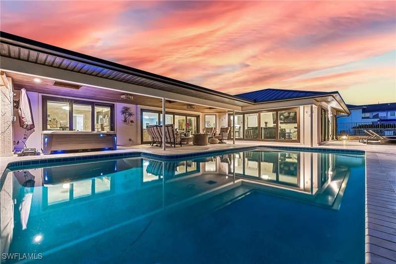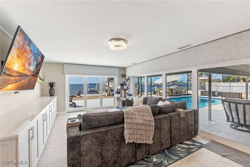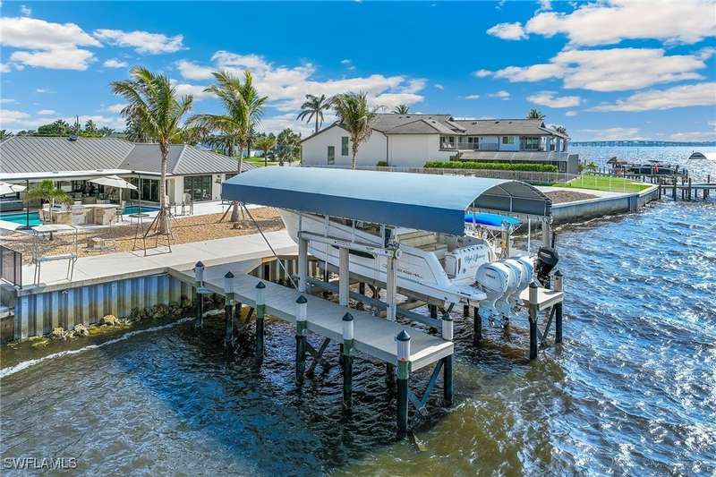 Welcome to your dream home on the river in beautiful Cape Coral! This exquisite three-bedroom, three-bathroom residence offers breathtaking views of the river from every room, creating an idyllic backdrop for daily living. The heart of the home is a gorgeous kitchen, featuring an expansive layout with luxurious granite countertops that's truly a culinary paradise. Every detail of this home has been thoughtfully updated, with everything new pre-hurricane and no flooding. The property boasts a new roof and an electric T-pole installed after Hurricane Ian, ensuring peace of mind. All windows and doors are impact-resistant, providing both safety and energy efficiency. The home is equipped with a state-of-the-art security system for added protection. Comfort is paramount, with new air conditioning and ductwork, alongside updated Pex plumbing and attic insulation for optimal energy performance. The elegant travertine pool deck and sidewalk extend your living space outdoors, perfect for entertaining or simply enjoying the serene environment. The outdoor amenities are equally impressive, featuring a new dock and seawall, along with two boat lifts (24,000 lb and 10,000 lb) and a boat canopy that is just three months old. A remarkable 9 ft concrete captain's walk stretches from lot line to lot line, offering a stunning vantage point to soak in the waterfront views. Additional highlights include a convenient ice machine, a pool heater, a hot tub for relaxation, and a secure safe for your valuables. Notably, this home has no drywall damage from the hurricane, and the post-hurricane porcelain tile floors from Coretec add both style and durability. Don't miss this incredible opportunity to own a piece of paradise in Cape Coral! Schedule your private showing today and experience the beauty and luxury of riverfront living!
