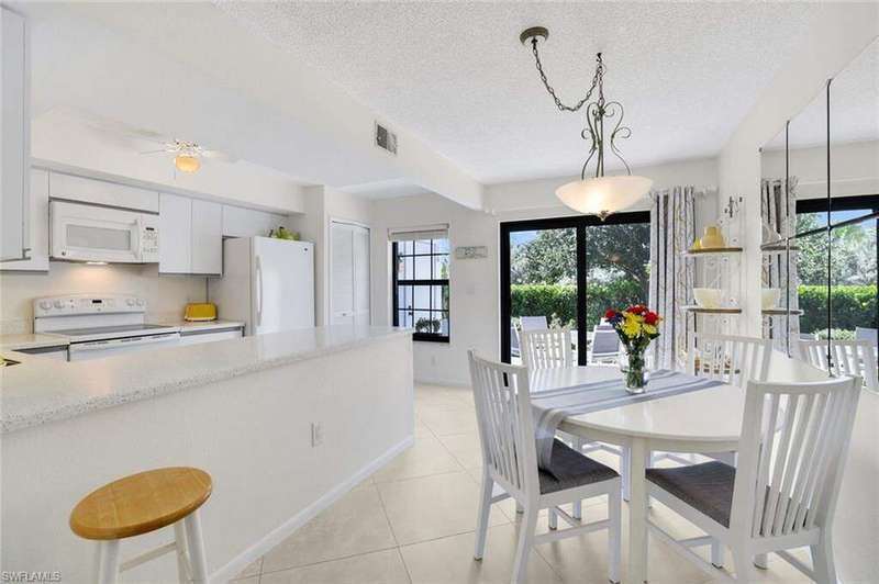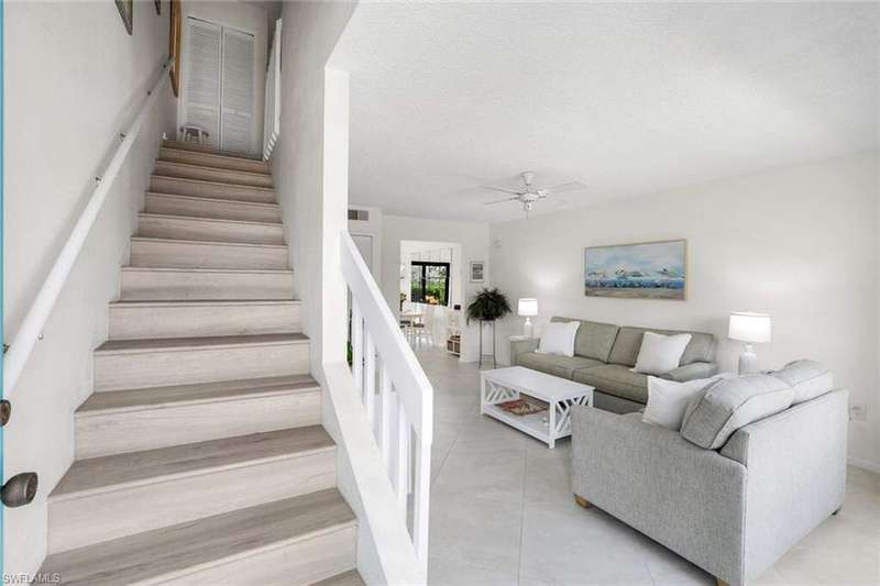 Welcome to your slice of island serenity! This bright and cheerful townhouse, nestled in a centrally located and highly desirable area of Marco Island, offers the perfect blend of comfort, convenience, and a touch of nature's magic. Step inside and be greeted by a spacious living room, ideal for entertaining friends and family, or simply relaxing after a day spent exploring the island's pristine beaches. The heart of the home, the kitchen, is a delight for any cook, boasting ample counter space for meal preparation and casual dining. Enjoy the convenience of a stackable washer and dryer on the first floor, freeing up valuable storage space upstairs in the generous double hallway closet and pull-down attic. Plus, discover clever hidden storage within the half bathroom, maximizing every inch of this thoughtfully designed home. Upstairs, retreat to your private oasis in one of the nice-sized bedrooms, each featuring its own ensuite bathroom the owner's retreat is showcasing a beautifully updated shower and vanity. Step outside and discover your own private, garden-like backyard, a true haven for relaxation. Imagine sipping your morning coffee while listening to the sweet melodies of birdsong or hosting unforgettable sunset barbecues under the warm Florida sky. This outdoor space is perfect for creating cherished memories. New impact glass throughout for safety, security and energy efficiency. Two assigned parking spaces and a beautifully updated community pool to relax and unwind. Don't miss this opportunity to own a piece of paradise on Marco Island. This townhouse offers the perfect blend of comfort, convenience, and tranquility.