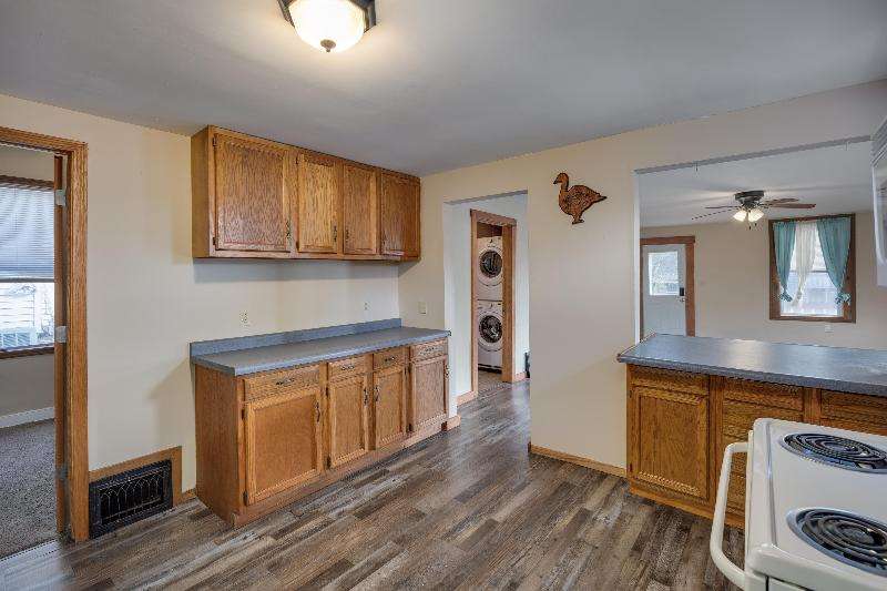 Bring your imagination to this cute little bungalow! This home has had the roof, furnace, a/c, and siding all replaced in the past few years. Home features updated flooring, 3 good sized bedrooms, and a large kitchen area. Exterior has a 2-plus car garage which is perfect for parking or for the hobbyist. Large fenced in yard for the four legged member of the family.