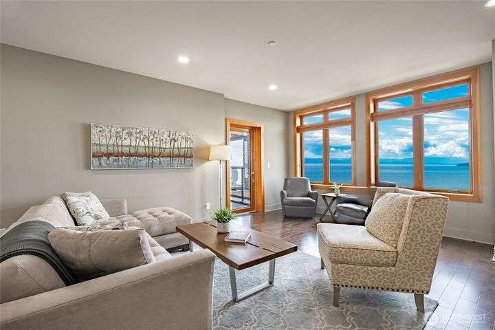 Wake up to sweeping water views from this beautiful 2 bedroom, 1 den, 3 bath home at The Marin. Built of solid concrete & designed to last, this residence combines strength with elegance. Inside, a chef’s kitchen with luxury appliances opens to a spacious great room with gas fireplace and windows framing the bay. Two private suites, a versatile den, and radiant-heated floors create comfort at every turn. Step onto your private deck for morning coffee or evening sunsets. Secure underground parking, private storage, and elevator access make life simple. Just outside your door—Semiahmoo’s marina, resort, golf, pickleball, pool, spa, dining, and miles of trails. A rare chance to own not just a home, but a lifestyle on the Semiahmoo waterfront.