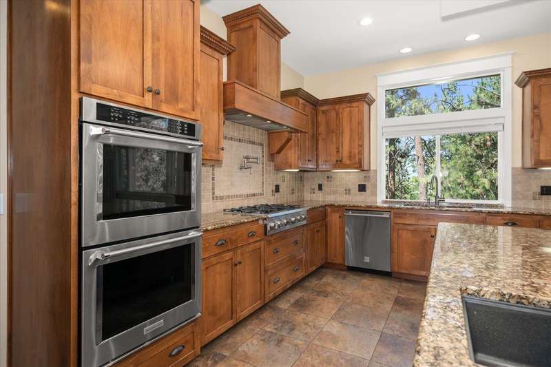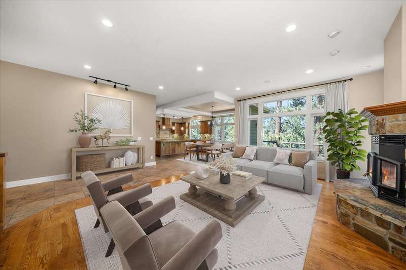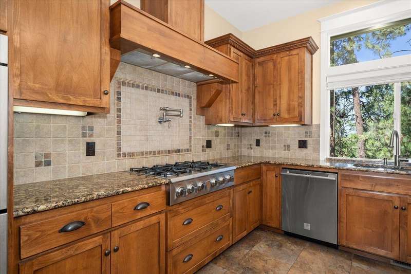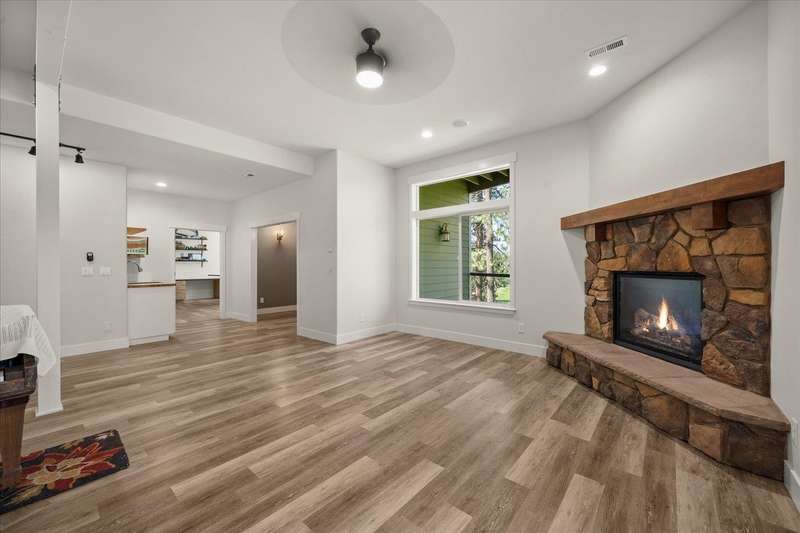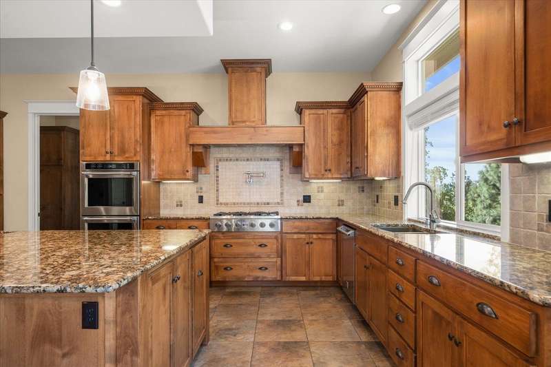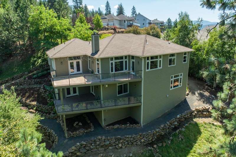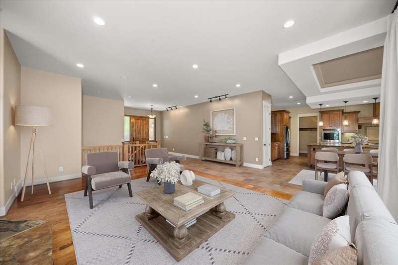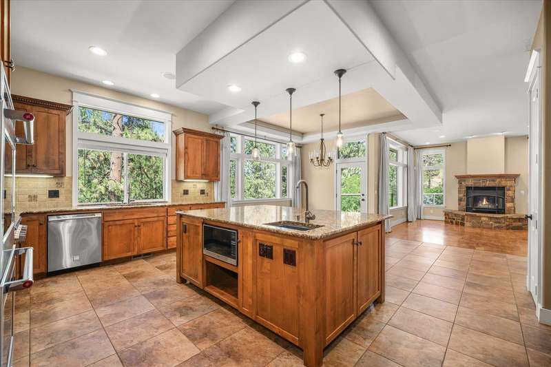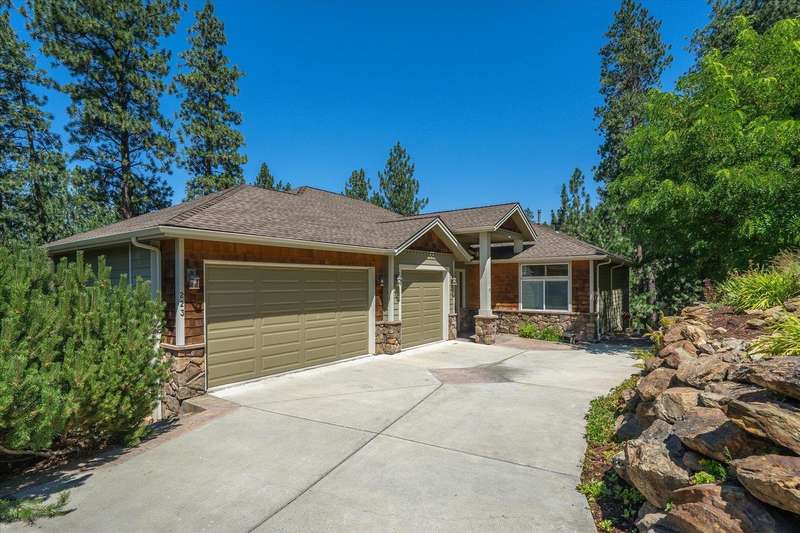 Welcome to this beautifully designed Builder home, situated on a private lot with panoramic golf course views. Crafted with timeless charm & modern luxury, offering the ideal blend of elegance, comfort & functionality. Custom millwork, new carpet & baseboards, plus New Roof - 2022. The gourmet kitchen is complete with high-end stainless steel appl, granite counters & oversized center island. The main-level primary suite features spa-inspired ensuite, walk-in closet & French doors to deck. The finished lower level expands your living space, offering a generous family room w/ gas fireplace, 3 beds/1bath, BONUS- interior shop/ flex work room plus, media/theatre room. Enjoy outdoor living at its finest with a covered patio, manicured landscaping & direct access to trails, golf & all local amenities, don't forget your Golf Cart! Whether you're sipping your morning coffee as the sun rises over the fairway or hosting sunset gatherings on the back deck, this home delivers luxury living in a truly picturesque setting.