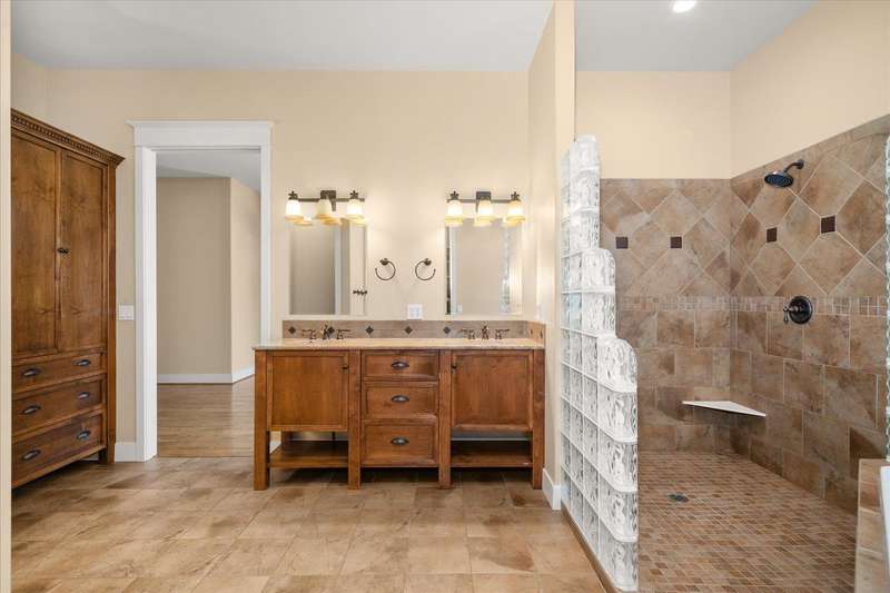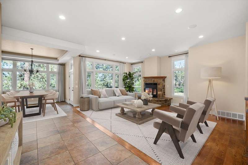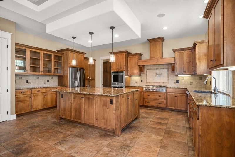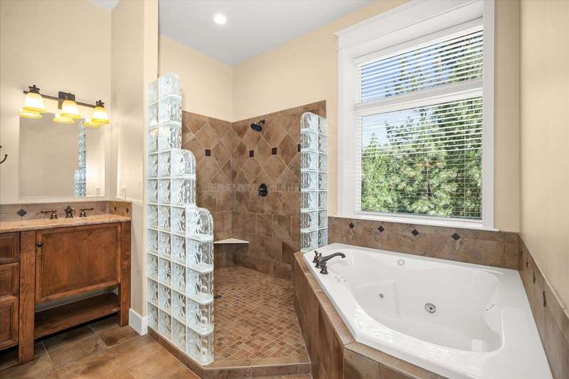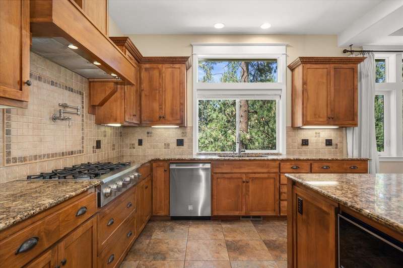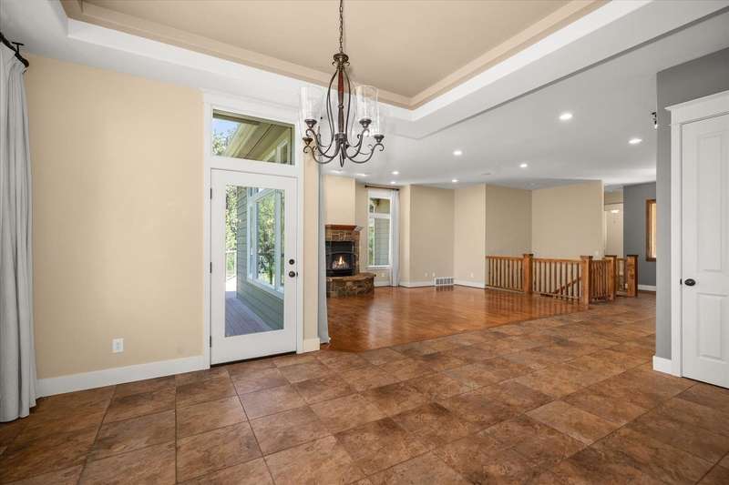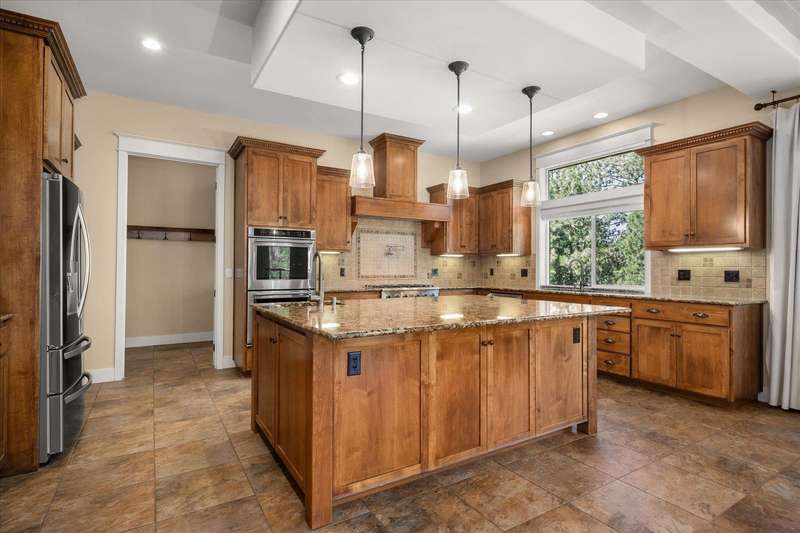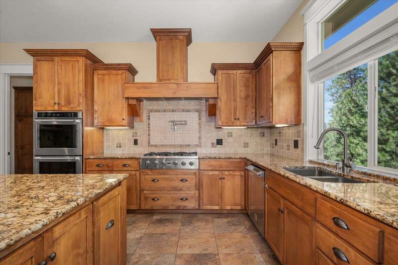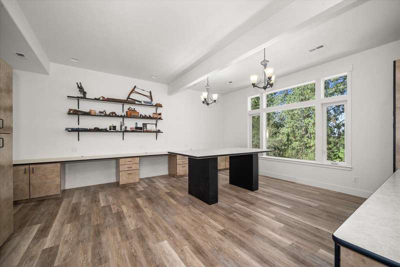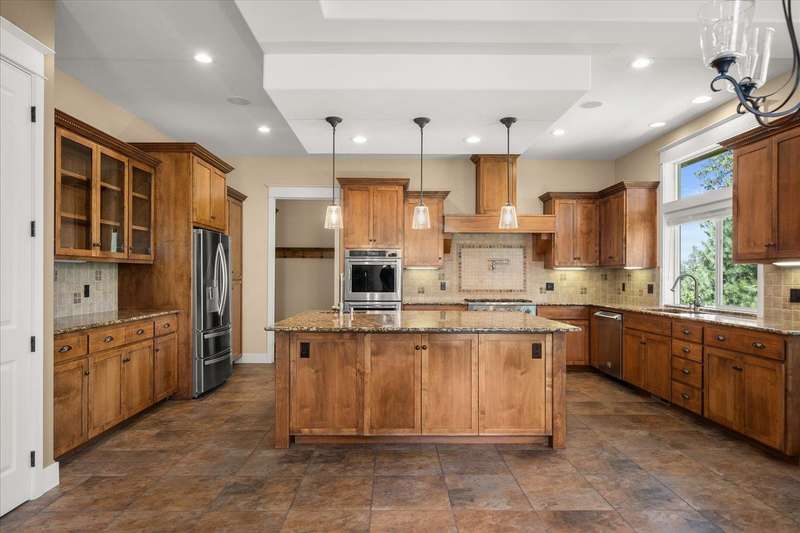 Welcome to this beautifully designed Builder home, situated on a private lot with panoramic golf course views. Crafted with timeless charm & modern luxury, offering the ideal blend of elegance, comfort & functionality. Custom millwork, new carpet & baseboards, plus New Roof - 2022. The gourmet kitchen is complete with high-end stainless steel appl, granite counters & oversized center island. The main-level primary suite features spa-inspired ensuite, walk-in closet & French doors to deck. The finished lower level expands your living space, offering a generous family room w/ gas fireplace, 3 beds/1bath, BONUS- interior shop/ flex work room plus, media/theatre room. Enjoy outdoor living at its finest with a covered patio, manicured landscaping & direct access to trails, golf & all local amenities, don't forget your Golf Cart! Whether you're sipping your morning coffee as the sun rises over the fairway or hosting sunset gatherings on the back deck, this home delivers luxury living in a truly picturesque setting.