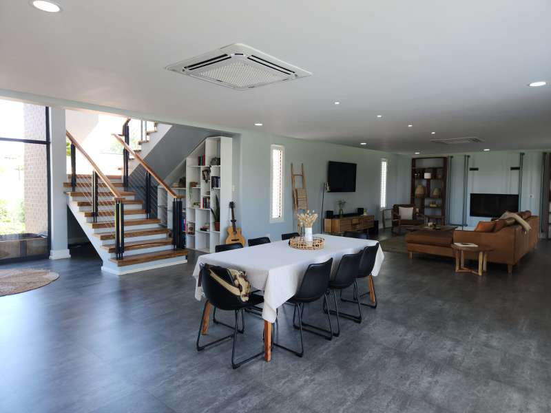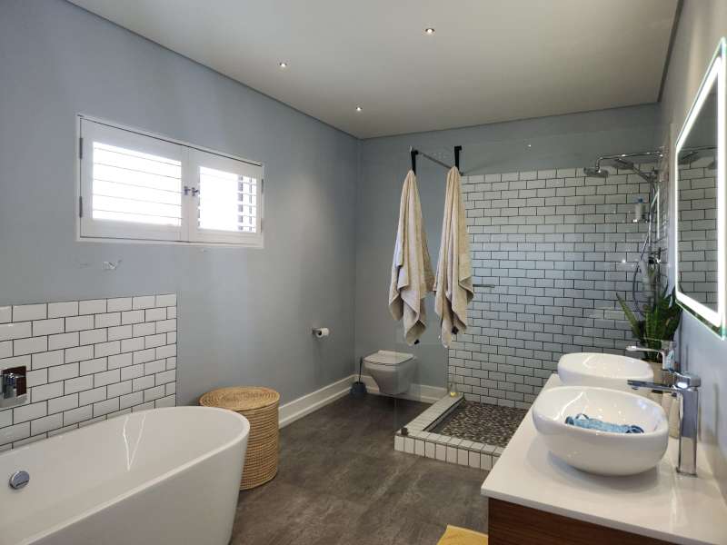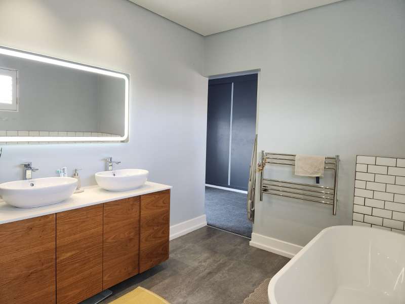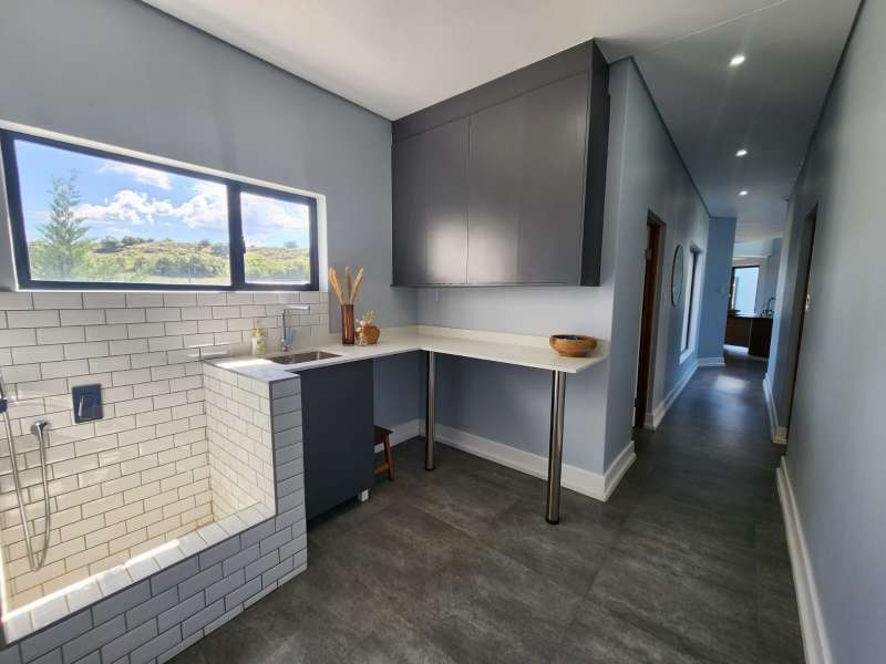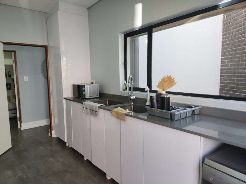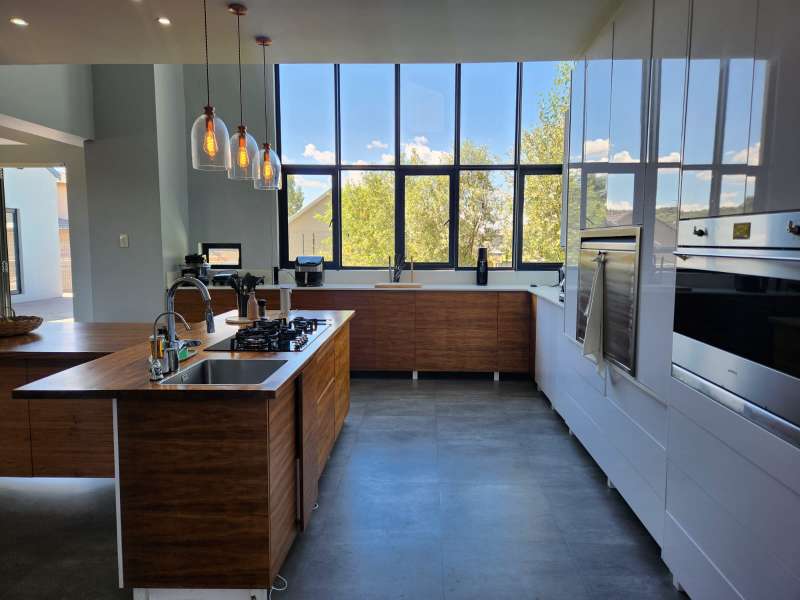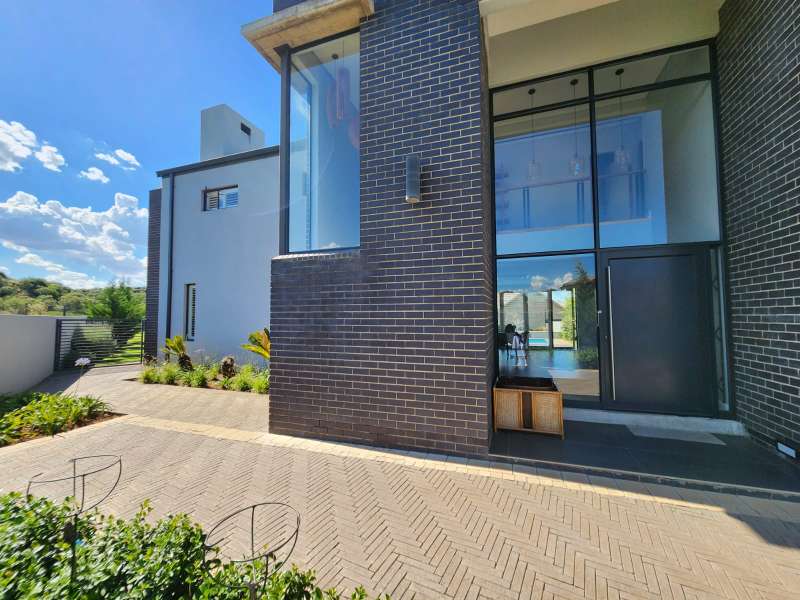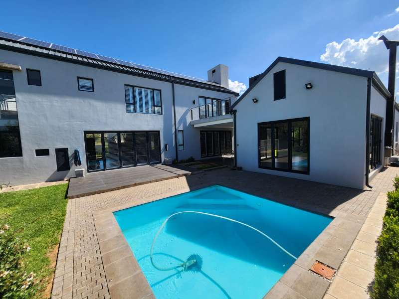 This is not just a house; it's a haven where luxury living meets practicality. Welcome home to the epitome of modern living. This exquisite 3-bedroom home, each boasting its en-suite bathroom, offers a lifestyle of comfort and sophistication. Upon entering, you are greeted by an open-plan design that effortlessly combines the kitchen, dining, and lounge areas with the outside entertaining area. The kitchen is a culinary masterpiece, featuring top-of-the-range appliances like the oven, a coffee machine, and a built-in braai. The living area is enhanced by a cozy fireplace, creating a warm and inviting ambiance. A separate scullery and laundry room and a walk-in pantry to offer ample space. Downstairs, a guest bathroom and a unique wet room with a dog shower showcase the thoughtful design of this home. Ascend to the first floor, where a pajama lounge and a study area provide additional spaces for relaxation and productivity. A walk-in linen room adds a touch of luxury, offering organized storage for linens and essentials. For added convenience, a flatlet awaits on the premises. It includes an open-plan lounge and kitchen with a built-in braai, a bedroom, and a full bathroom. The entire house is equipped with an advanced air-cooling system, guaranteeing comfort throughout the year. This house is equipped with state of the art Trellidor blinds that offers extra security. Environmental consciousness is prioritized with solar panels and inverters, while a greywater system is facilitated by 2 JoJo tanks. The garage, accommodating three cars and providing extra workspace, ensures that both functionality and style are at the forefront of this residence.