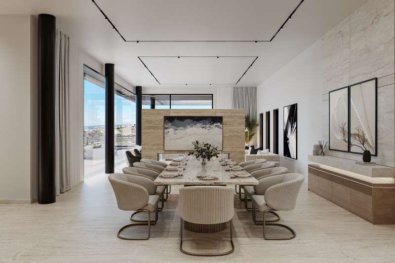 This magnificent 4 bedroom villa is nestled on a sprawling 1,622 sq. m. plot, offering captivating mountain views. Located in the prestigious Opalia Hills suburb of Limassol, the villa resides in a serene neighborhood of modern luxury homes and natural beauty, just 10 minutes from the city and 15 minutes from pristine beaches. The villa features two floors connected by an elegant staircase and lift. The open-plan ground floor boasts a modern, spacious living room, dining area, kitchen, kitchenette, guest toilet, and three grand bedrooms with en-suite bathrooms. The upper floor houses a large bedroom and access to a roof garden, the perfect spot to savor the spectacular mountain and sea views. Experience unmatched luxury and tranquility in this exquisite retreat.
