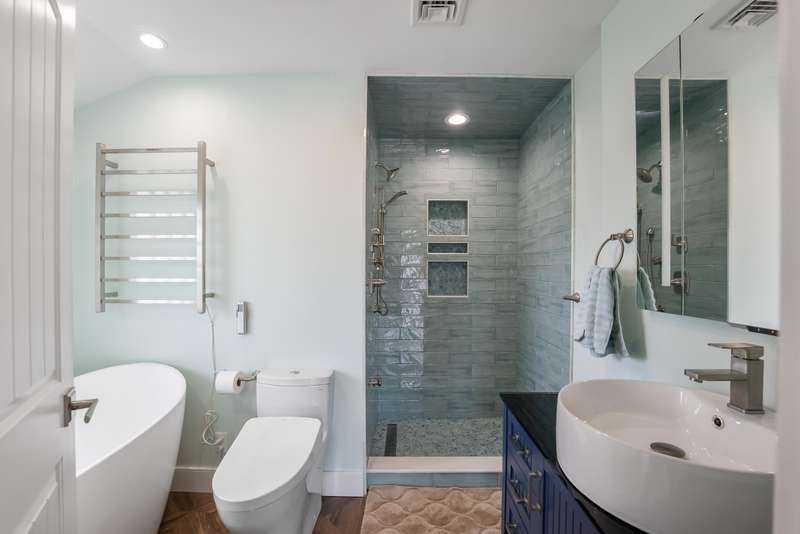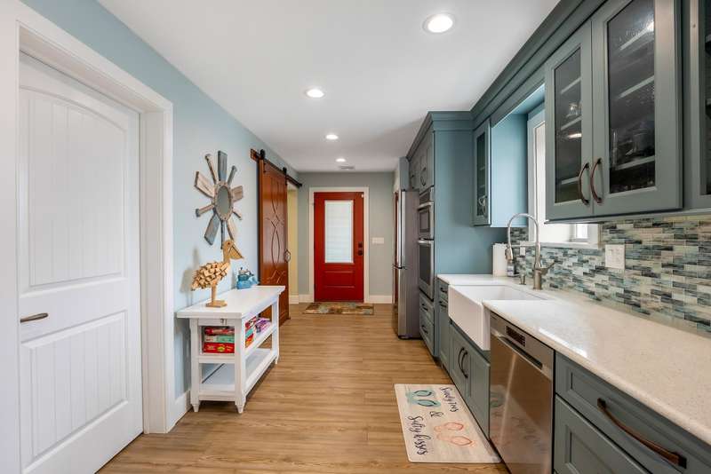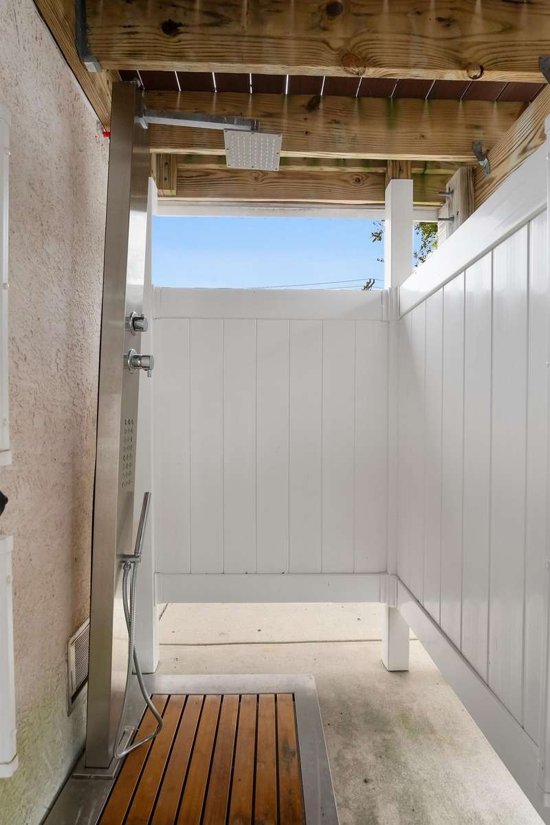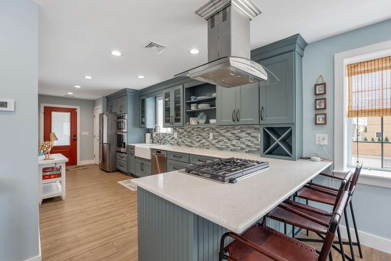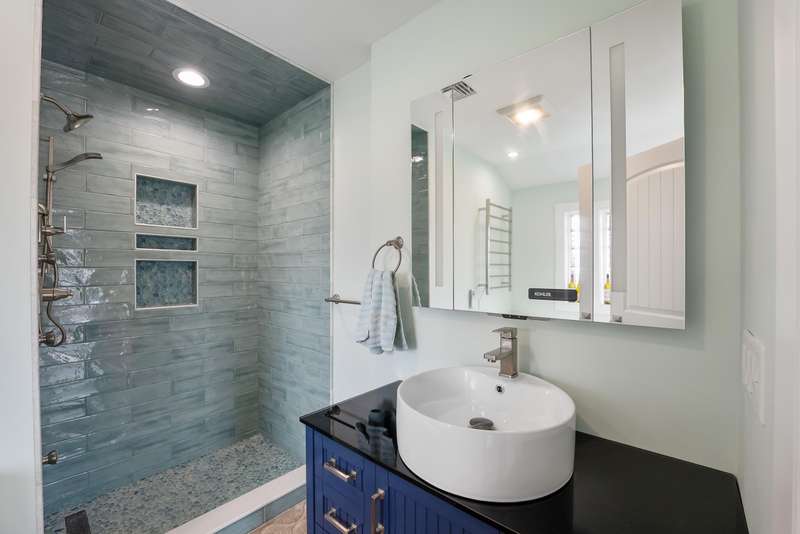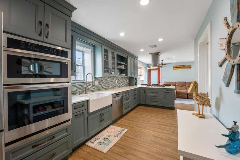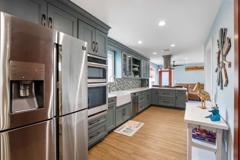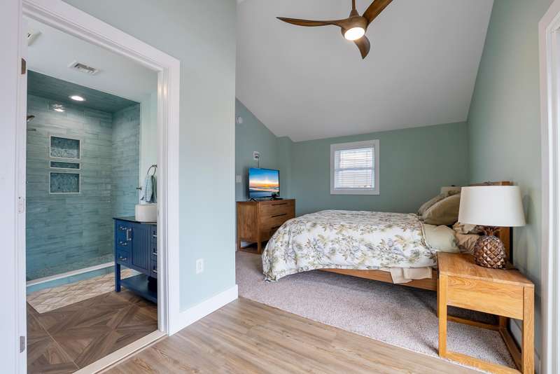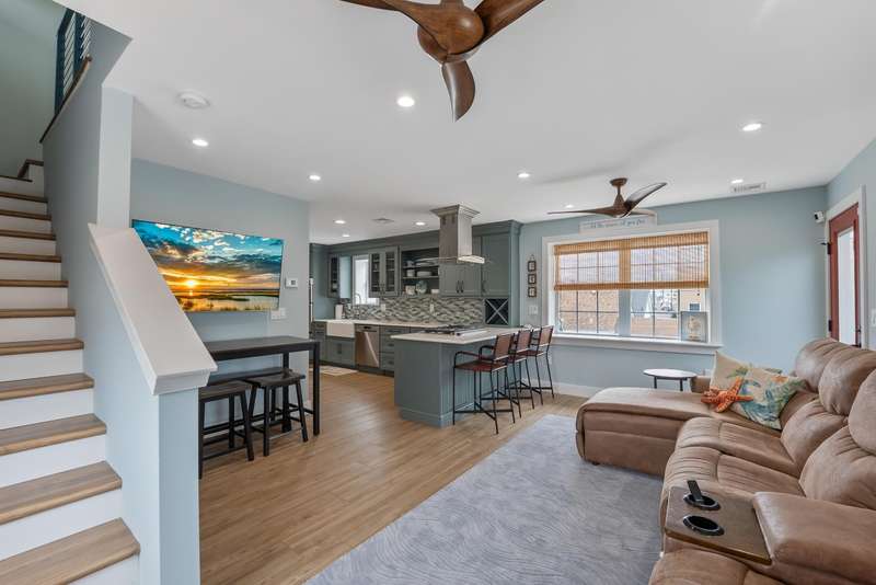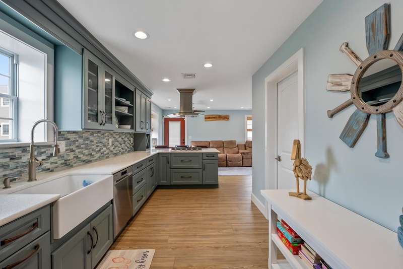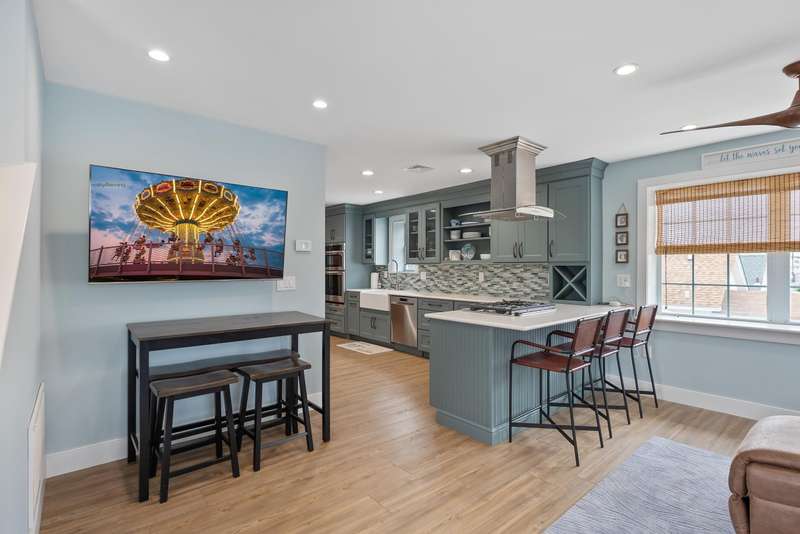 This one is an Absolute Stunner. The Current owners left no stone unturned as they took this property from Faded to Fabulous. This was to be there forever 2nd home, and it shows in the care, time and precision that went into making it perfect. In Fact, the photographer thought this was new construction. Exterior you will find a 1 Car Attached garage, Concrete parking for another in your driveway as well as a separate Heated and cooled work shop about 1.5 times the size of your garage. You Will love your fenced yard for the kids and bar b ques as well as those 4 legged family members. In the Rear, you also have an enclosed outside shower, Yard (Room for a pool) and steps up to your kitchen and Living room. You have 2 Additional Trex style decks on the front of the home on the first floor as well as off of your Primary bedroom. Inside you are greeted by a kitchen that dreams are made of. Exquisite quiet close upgraded Cabinetry in the most beautiful shade of Blue that I have seen in a long time. you will adore The Farm Style oversized sink, White Counters and tile backsplash. The Stainless-steel appliances and Hood above your stove really make this kitchen come to life. On this floor is your living Room, 1/2 Bath, Laundry and a 2nd Living Room or 4th Bedroom. The Top Floor hosts 2 Bedrooms with cathedral ceilings that share the 2nd bathroom. The Master Suite also has the aforementioned Cathedral Ceilings and a massive deck that is perfect for the Friday Night Fireworks. The Master Bath is what dreams are made of. There is a separate oversized soaking tub with towel warming racks perfect for wine and winding down, The Tile shower with built ins and multiple shower heads have been done perfectly with all of the fixtures tying this oasis together.