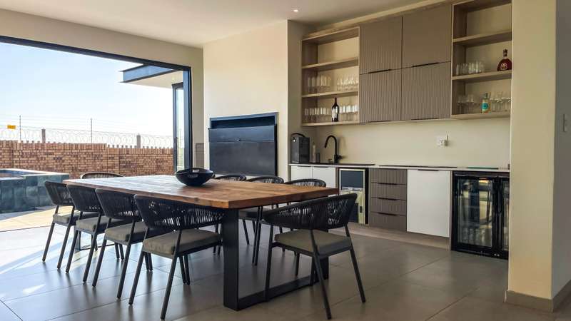 Modern 5-Bedroom Luxury Residence – Fully Furnished with Designer Touches Exclusive Tri-Mandate Experience elevated living in this contemporary 5-bedroom all en-suite home, perfectly crafted for comfort, style, and sophistication. Situated in a prime location, this residence boasts an impeccable modern design and comes fully furnished with top-tier, custom-selected furniture – all included in the purchase price. Property Highlights: Five spacious en-suite bedrooms, each thoughtfully designed for privacy and relaxation Gourmet kitchen with high-end appliances and sleek finishes Expansive open-plan living and dining areas, ideal for entertaining Private PJ lounge – the ultimate cozy retreat for family movie nights Sparkling swimming pool, perfect for leisure or hosting guests Large balcony with sweeping, unobstructed views – your own slice of serenity This home offers a seamless blend of luxury and functionality, tailored for modern lifestyles. From sunlit mornings to elegant evenings, every detail has been carefully curated to offer a first-class living experience.
