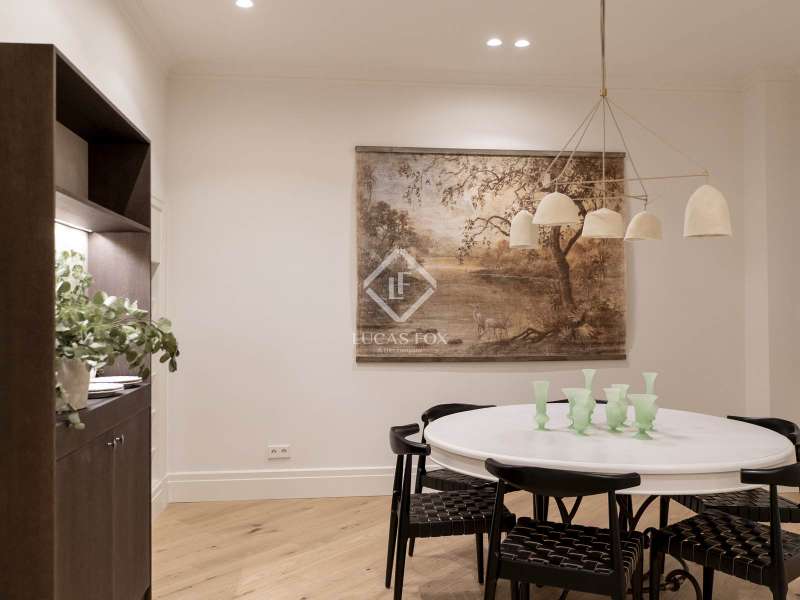 Lucas Fox presents this spectacular, fully renovated and furnished apartment, boasting excellent finishes and ready to move into, in the exclusive Salamanca district, one of Madrid's most prestigious residential areas . It is located just steps from renowned institutions such as the IE Business School, the Lázaro Galdiano Museum, and the renowned Serrano, Velázquez, and Diego de León streets. The apartment is located in a distinguished 1948 building with a classic facade, elegant entrance, and elevator. The property boasts 212 square meters of living space. The night area comprises a spacious bedroom with an en-private bathroom and a large main bedroom with its own en-private bathroom and dressing room. The day area includes a living room and an eat kitchen diner. The property has been completely renovated with high-quality materials and is delivered fully furnished and equipped, with luxury finishes that stand out for their contemporary style and attention to detail. A unique opportunity to acquire a sophisticated, elegant property ready to enjoy from day one.