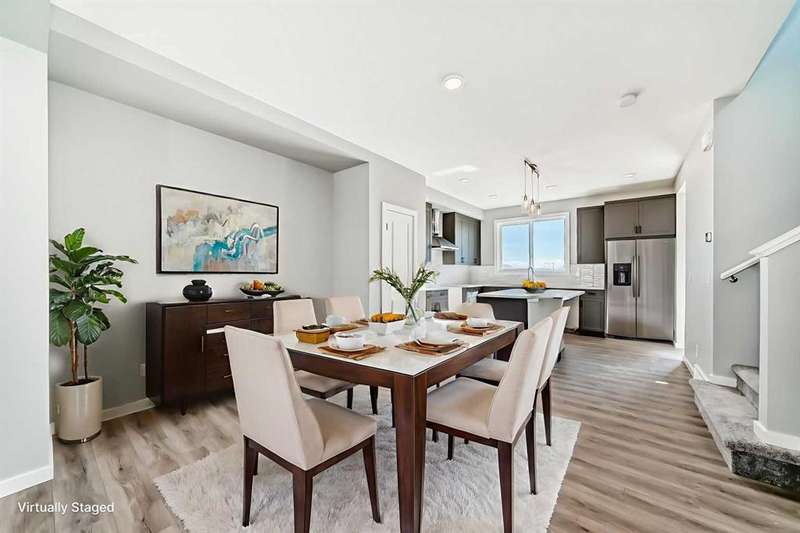 SOME HOMES ARE BUILT TO HOUSE YOU. OTHERS ARE BUILT TO GROW WITH YOU. AT 64 BARTLETT WAY SE, YOU’LL FIND A HOME THAT DOES BOTH—with purposeful design, meaningful flexibility, and a setting that’s unlike anything else in Calgary. Located in Rangeview by Section 23—Calgary’s first GARDEN-TO-TABLE community—this 3-bedroom, 2.5-bath Leonard model from Homes by Avi offers 1,608 SQ FT of warm, functional living space on a SUN-DRENCHED CORNER LOT just STEPS FROM FUTURE COMMUNITY GARDENS, orchards, and a farmers' market. Inside, the OPEN-CONCEPT MAIN FLOOR was made for connection. The kitchen features QUARTZ COUNTERTOPS, STAINLESS STEEL APPLIANCES, and a CENTRAL ISLAND that anchors the space—whether you’re hosting friends or helping with homework. The adjacent dining area fits a full-size table, and the sunlit living room has space to gather, unwind, and just breathe. Near the front door, a main floor POCKET OFFICE adds a layer of calm to the chaos—perfect for work-from-home days or creative side hustles. Out back, the 10' X 10' DECK extends your living space outdoors, while the 20' X 20' DOUBLE DETACHED GARAGE offers secure parking and extra storage. Upstairs, the master bedroom is a space to exhale, complete with a WALK-IN CLOSET and a MODERN ENSUITE featuring quartz finishes and a sleek, minimal palette. Two more bedrooms, a full 3-piece bathroom, and an UPPER-FLOOR LAUNDRY ROOM make daily routines easier, while the BONUS ROOM provides the flexible space every household needs—think yoga, movie marathons, or a cozy reading corner. Looking ahead? A SEPARATE SIDE ENTRANCE gives you the freedom to develop a lower-level living area with private access—ideal for multigenerational households, nanny quarters, or future guests. And because this is a MOVE-IN READY home, YOU CAN START WRITING YOUR NEXT CHAPTER RIGHT AWAY. Life in Rangeview is built around food, family, and meaningful community—where neighbours know each other, gardens grow together, and the shared spaces make everyday life feel just a little richer. DESIGNED WITH SUSTAINABILITY AND CONNECTION AT ITS CORE, Rangeview offers an urban agricultural lifestyle rooted in authenticity and forward-thinking design. Kitchen appliances are included, and will be installed prior to possession. If you’ve been looking for more than just a place to live—something intentional, inspiring, and full of potential—this home is ready for you. This one won’t wait around—book your showing today!