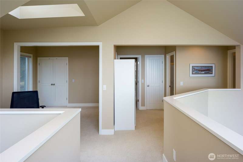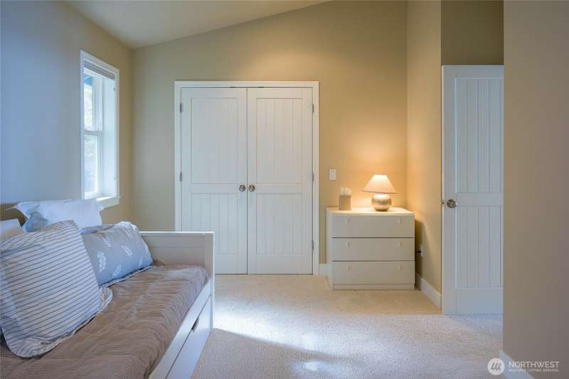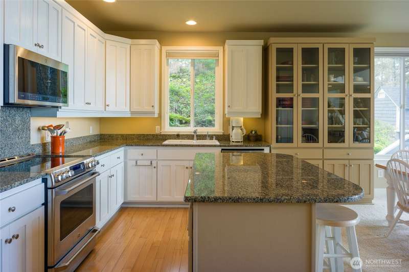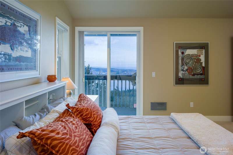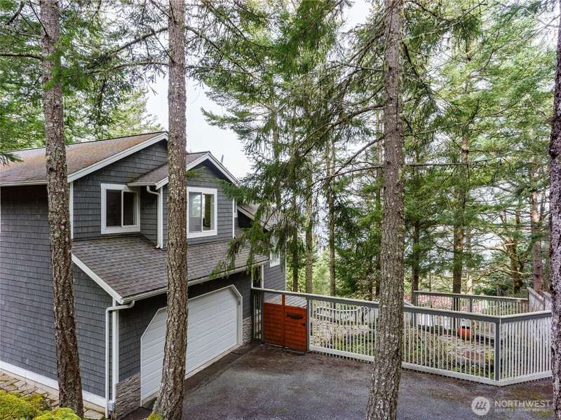 Northwest water views and summer sunsets await! Step inside this lovely 3 bedroom, 2.5 bath home to find a light-filled interior, floor-to-ceiling windows, vaulted ceilings, ft. a well-appointed kitchen boasting stainless steel appliances and granite countertops. Retreat to the primary bedroom with an en-suite bath, spacious closet, and private balcony. Outside, the deck is perfect for enjoying the tranquil surroundings. Soak in the hot tub and take in the views! Terraced garden with fruit trees, fenced in. Attached 2-car garage. Located minutes from Moran State Park and 10 minutes from Eastsound.
