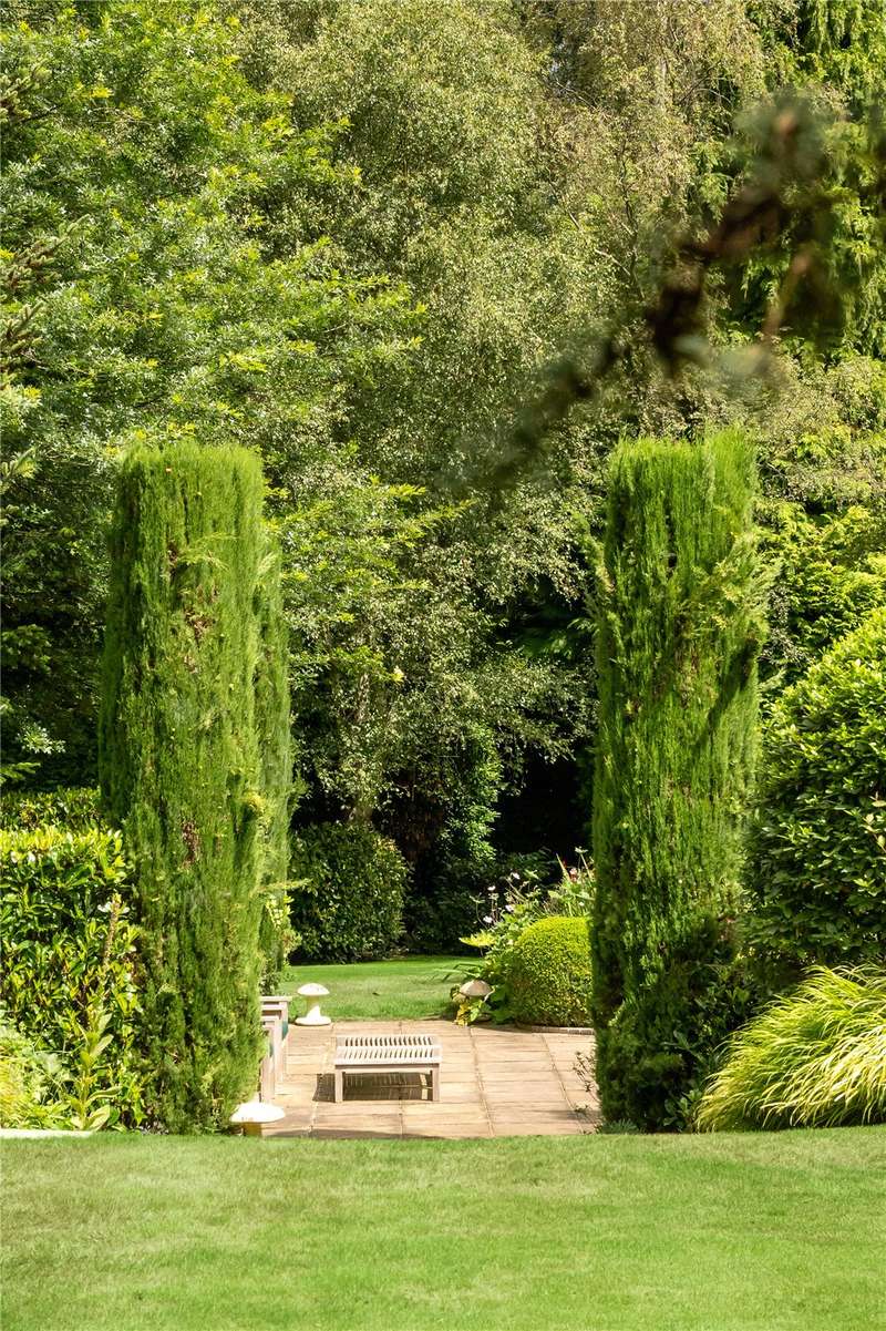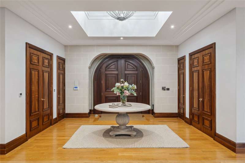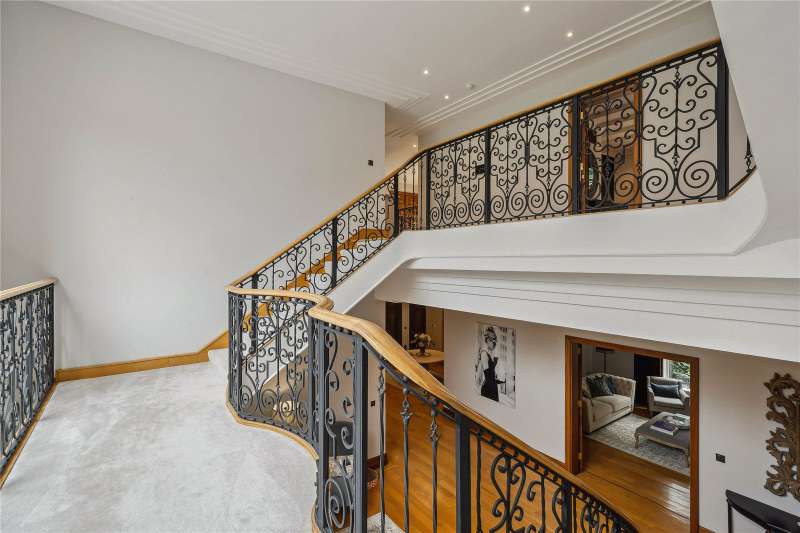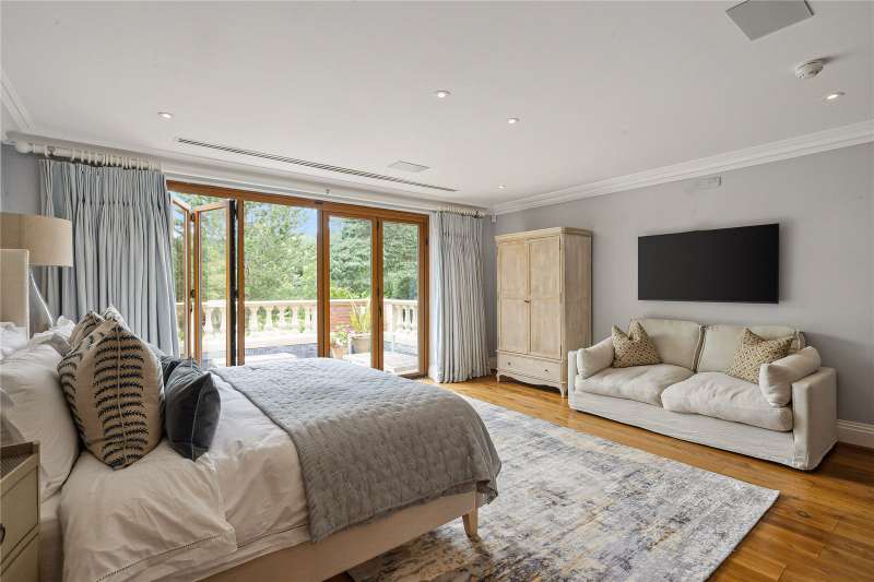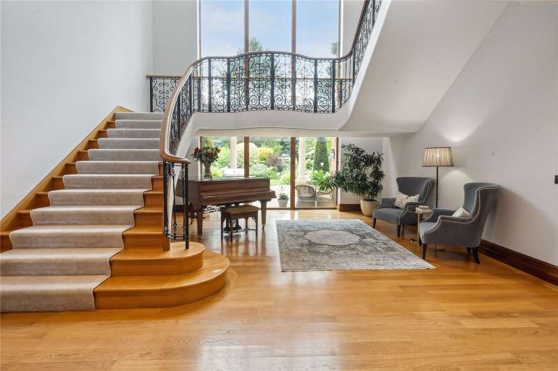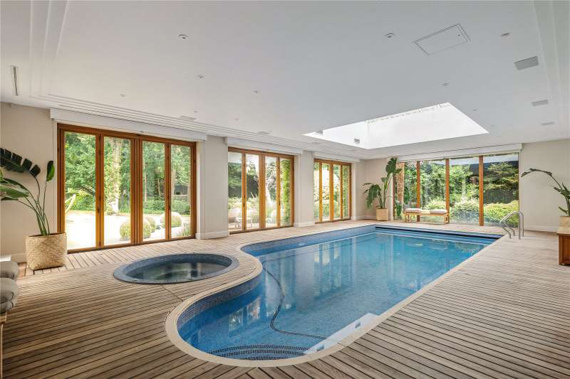 A magnificent eight bedroom estate set in about 2.6 acres of exquisitely landscaped, lily pond gardens on St George’s Hill’s premier road, East Road. Moments from the Lawn Tennis Club, with approximately 14,856 sq ft of finely arranged accommodation, Park Hill is designed for both grand entertaining and effortless family living. Beyond an impressive reception hall, the drawing room opens via bi fold doors to the grand water gardens. The drawing room is complemented by sitting and dining rooms, a study and a versatile family/TV room. The heart of the home is a generous kitchen with a family dining area and a living space. The ground floor further offers a utility and boot room. Upstairs, the principal suite features a private balcony and dressing room, with seven additional bedroom suites providing superb guest and family accommodation. A top-floor media/games room and separate office add further flexibility. Wellness and leisure are centre stage: an indoor swimming-pool complex with steam room, gym and changing facilities opens to the gardens, while a self contained staff apartment ensures discreet service. The specification includes air conditioning and underfloor heating. A double garage completes the offering. A byword for privacy and prestige, St George’s Hill is one of England’s most celebrated private estates. Set amid mature woodland and sweeping avenues, the estate combines grand architecture on generous plots with 24 hour security and discreet well-kept private roads. Daily life revolves around exceptional amenities: the historic St George’s Hill Golf Club, a renowned Harry Colt design, and the Lawn Tennis & Health Club with racket sports, pool and fitness facilities. Moments from Weybridge, Cobham and Esher, residents enjoy refined dining, boutique shopping and riverside walks, with the Thames and Surrey commons close at hand. Connectivity is effortless: fast services from Weybridge reach London Waterloo in around half an hour; the A3 and M25 are nearby; Heathrow and Gatwick are within easy driving distance. The area is also prized for schooling, with leading independents such as St George’s (Weybridge) and ACS Cobham among a strong local line-up. International in outlook yet reassuringly residential, St George’s Hill offers rare seclusion, first class amenities and seamless access to London—making it a perennial choice for UHNW families and global executives. Situated close to the St George’s Hill Lawn Tennis Club, Park Hill enjoys excellent connectivity: Weybridge 2 miles, Esher 4 miles, Heathrow 15 miles, Central London 22 miles, Gatwick 27 miles (all approx.). Property Features : Price: £19,500,000 Tenure: Freehold Local Authority: Elmbridge Council Tax Band: H EPC: D Area: Gross Internal Area – 14,856 sqft; Outbuilding – 285 sqft; Total – 15,141 sqft Parking: 4 cars Staff Accommodation: Yes
