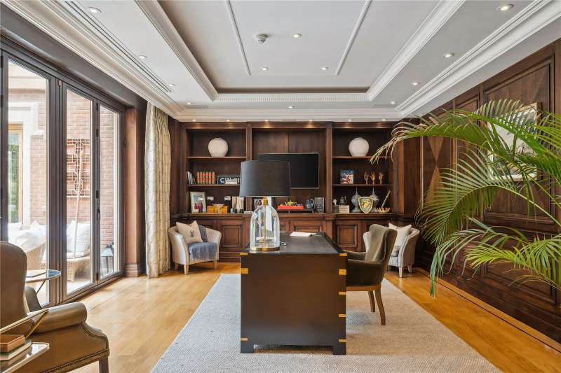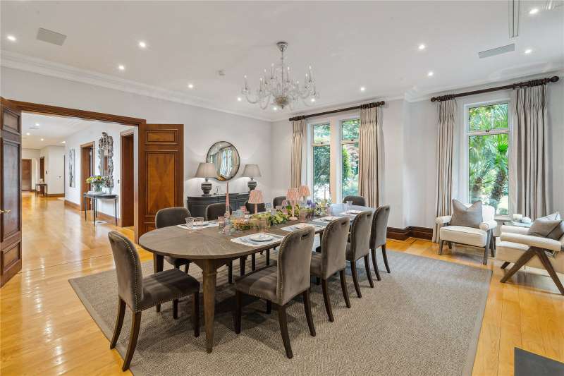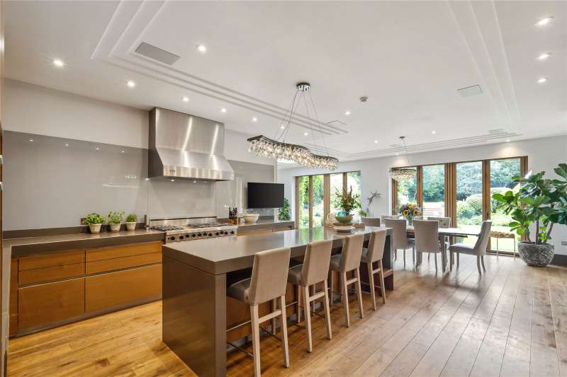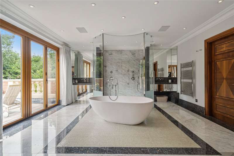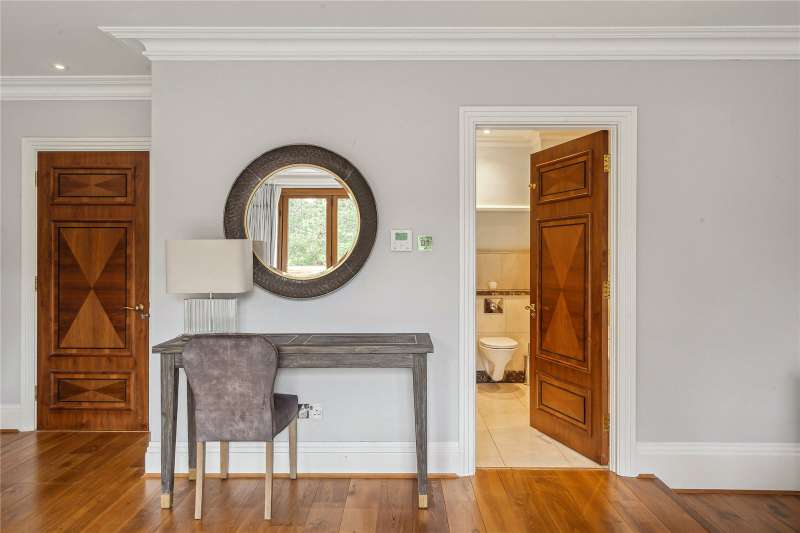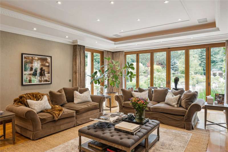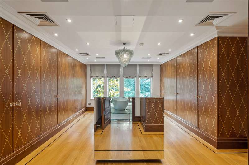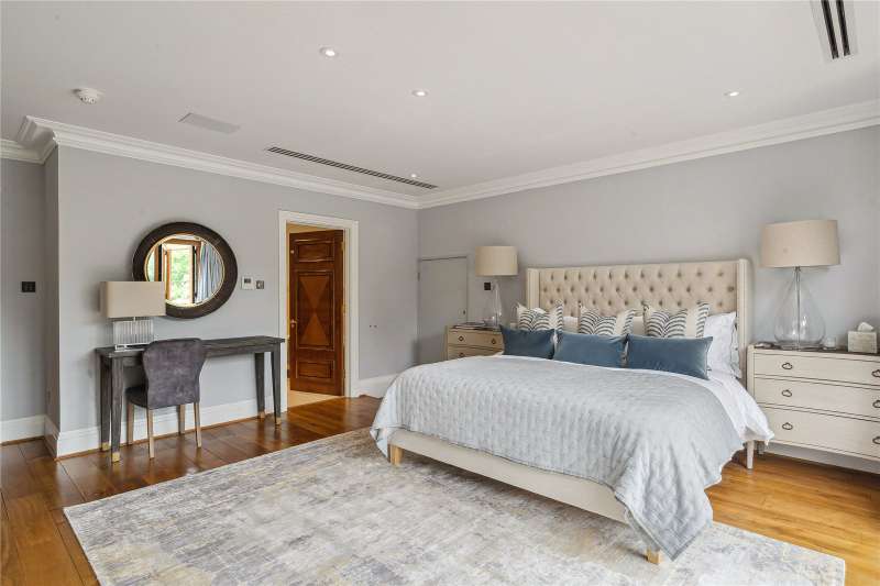 A magnificent eight bedroom estate set in about 2.6 acres of exquisitely landscaped, lily pond gardens on St George’s Hill’s premier road, East Road. Moments from the Lawn Tennis Club, with approximately 14,856 sq ft of finely arranged accommodation, Park Hill is designed for both grand entertaining and effortless family living. Beyond an impressive reception hall, the drawing room opens via bi fold doors to the grand water gardens. The drawing room is complemented by sitting and dining rooms, a study and a versatile family/TV room. The heart of the home is a generous kitchen with a family dining area and a living space. The ground floor further offers a utility and boot room. Upstairs, the principal suite features a private balcony and dressing room, with seven additional bedroom suites providing superb guest and family accommodation. A top-floor media/games room and separate office add further flexibility. Wellness and leisure are centre stage: an indoor swimming-pool complex with steam room, gym and changing facilities opens to the gardens, while a self contained staff apartment ensures discreet service. The specification includes air conditioning and underfloor heating. A double garage completes the offering. A byword for privacy and prestige, St George’s Hill is one of England’s most celebrated private estates. Set amid mature woodland and sweeping avenues, the estate combines grand architecture on generous plots with 24 hour security and discreet well-kept private roads. Daily life revolves around exceptional amenities: the historic St George’s Hill Golf Club, a renowned Harry Colt design, and the Lawn Tennis & Health Club with racket sports, pool and fitness facilities. Moments from Weybridge, Cobham and Esher, residents enjoy refined dining, boutique shopping and riverside walks, with the Thames and Surrey commons close at hand. Connectivity is effortless: fast services from Weybridge reach London Waterloo in around half an hour; the A3 and M25 are nearby; Heathrow and Gatwick are within easy driving distance. The area is also prized for schooling, with leading independents such as St George’s (Weybridge) and ACS Cobham among a strong local line-up. International in outlook yet reassuringly residential, St George’s Hill offers rare seclusion, first class amenities and seamless access to London—making it a perennial choice for UHNW families and global executives. Situated close to the St George’s Hill Lawn Tennis Club, Park Hill enjoys excellent connectivity: Weybridge 2 miles, Esher 4 miles, Heathrow 15 miles, Central London 22 miles, Gatwick 27 miles (all approx.). Property Features : Price: £19,500,000 Tenure: Freehold Local Authority: Elmbridge Council Tax Band: H EPC: D Area: Gross Internal Area – 14,856 sqft; Outbuilding – 285 sqft; Total – 15,141 sqft Parking: 4 cars Staff Accommodation: Yes