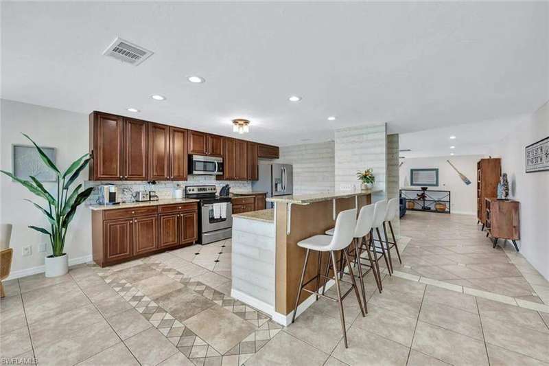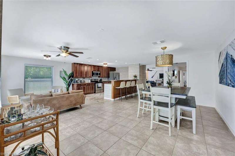 Looking for a spacious coastal atmosphere? Look no further! 3 generously sized bedrooms plus a den, providing plenty of space to spread out, room for a home office too. Enjoy living room plus family room, open kitchen with expansive breakfast bar perfect for entertaining! The open-concept kitchen, complete with stainless steel appliances and granite countertops, flows seamlessly into the living spaces, making it the heart of the home. New A/C, new water heater, freshly painted and new lighting. Fenced in back yard! Just a bike ride to white sugar sand beaches plus a plethora casual and fine dining, movie theaters, La Fitness, Whole Foods, Trader's Joe, The Ritz and luxury shopping at Mercato. This is the Naples lifestyle you have been looking for! Move in today!