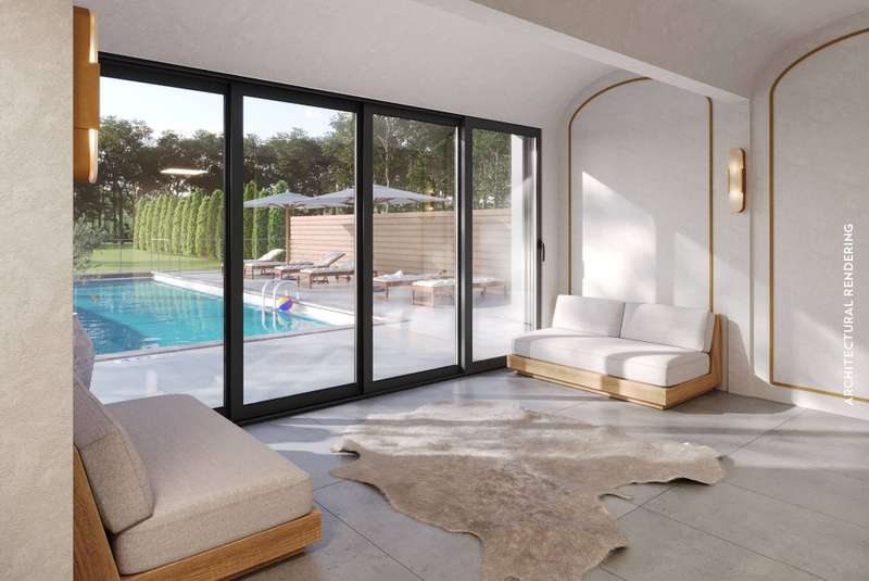 Enter a new standard of modern luxury in this exceptional new home, located just moments from East Hampton Village. Designed with a meticulous eye for detail and outfitted with world-class finishes, this property offers an elevated lifestyle that seamlessly blends elegance, comfort, and functionality. A Grand Welcome! The living room stuns with soaring 22.6' double-height ceilings and expansive custom Fleetwood windows and multi-glide pocket doors that open to the backyard oasis.Custom wide-plank wood flooring by Algol runs throughout the home, adding warmth and refinement. A dramatic 96' custom Regency fireplace anchors the space, offering both architectural interest and cozy ambiance. Culinary Excellence! At the heart of the home is an Italian Boffi-designed kitchen featuring a 10-foot Arabescato Viola marble island with soft, rounded edges-including a marble-formed sink for a seamless look. A Waterworks faucet and top-tier appliances (Wolf, Subzero, Gaggenau) complete this gourmet space. Spa-Inspired Serenity! The ground floor bath is a statement in luxury with Ann Sacks tilework and a one-of-a-kind tub carved from a single black marble slab. The powder room features hand-painted De Gournay wallpaper and a custom Carrara marble sink that turns a functional space into a work of art. Wellness Redefined! A dedicated spa area combines custom millwork and Venetian plaster walls with flush-laid Florim tiles that extend outdoors. Indulge in the Cold Stoic 2.0 cold plunge or unwind in the state-of-the-art Sunlighten mPulse Conquer sauna...your personal sanctuary awaits. Private Retreats w/luxury finishes! The primary bathroom is designed luxuriously with Italian Marbo Verde marble slabs, Bisazza tiles, and a sculptural custom Carrara tub. A guest bath features an elegant Antonio Lupi tub, while the outdoor shower is fitted with a Waterline frost-free Volutus fixture for year-round luxury. Endless Amenities! The finished basement features a fully customized wine room, a movie room with a built-in bar, a full gym, and generous storage. Every inch of this home is thoughtfully designed to cater to both relaxed living and high-end entertaining. While currently under construction, this gorgeous 1.78 acre property appears twice as large being surrounded by reserve on two sides offering beautiful views of stately native beech trees, song birds and wildlife. The mature landscaping and the reserve areas provide privacy for the heated gunite pool. Just a few of the custom features include: Lutron shades in the primary bedroom, efficient 7.8KW of solar power, porcelain patio tiles, automatic pool cover, whole home air purification system and more. Slated for mid-late summer completion. Call for details.