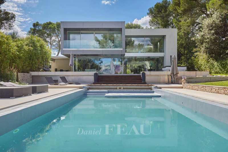 This resolutely contemporary 400 sqm property dating from 2011 is in a peaceful location 10 minutes from Cours Mirabeau and the centre of Aix, 15 minutes from the TGV station, 25 minutes from the airport and near the autoroutes. Set in 4000 sqm of grounds and commanding an exceptional view of the iconic Sainte Victoire Mountain, it includes a 180 sqm reception area, a 70 sqm home cinema, five bedrooms and a study. With a heated 15 x 5 metre mirror swimming pool, a jacuzzi and a carport.