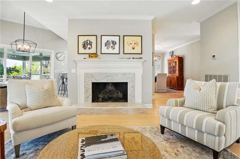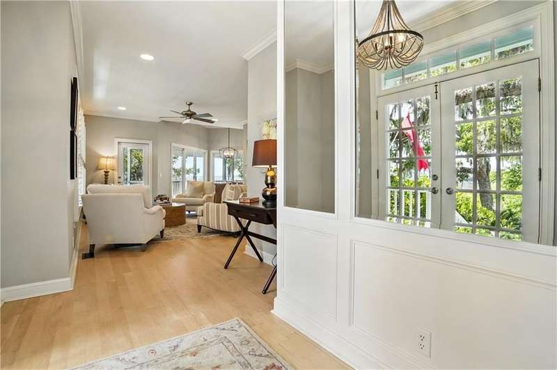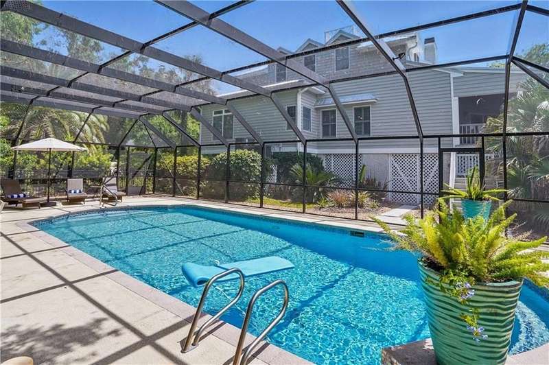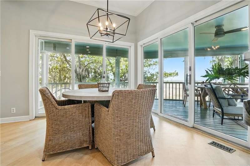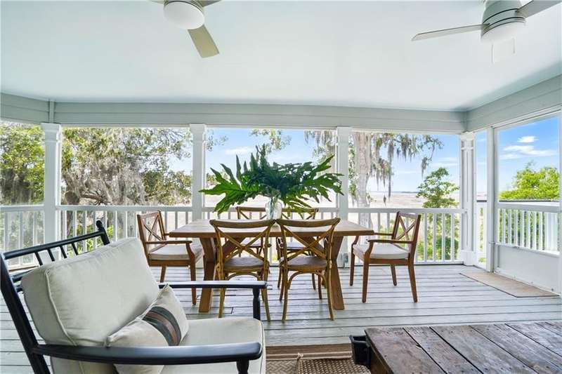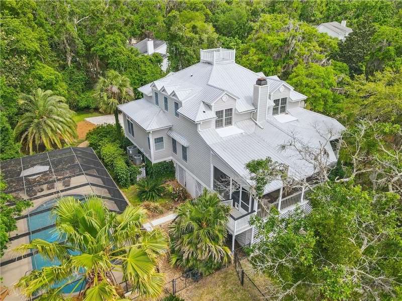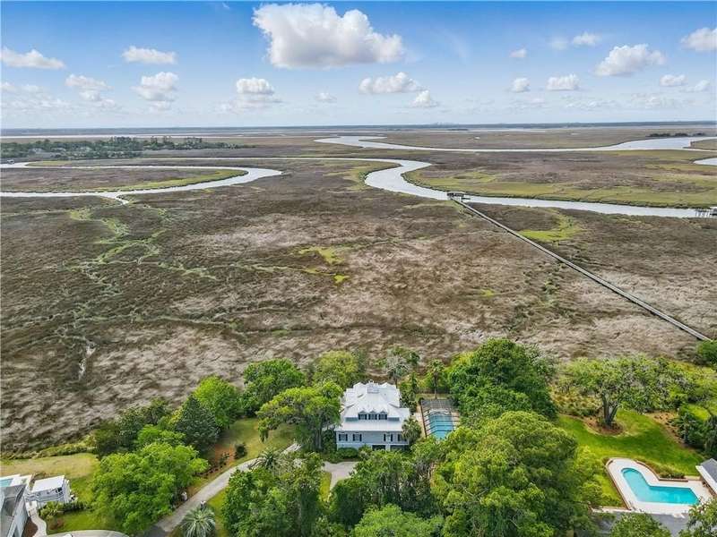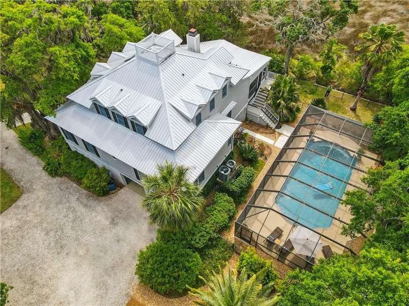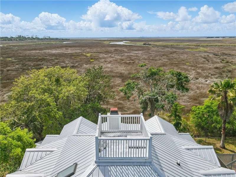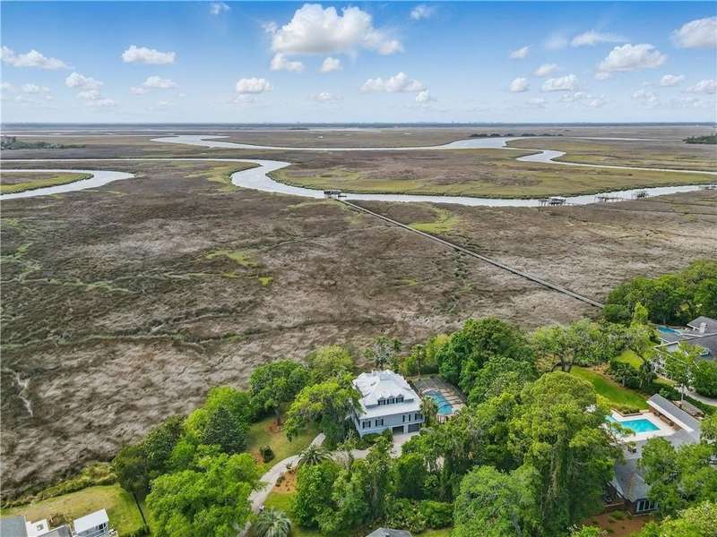 Welcome to your dream home, where breathtaking panoramic marsh and river vistas surround you in timeless Lowcountry style. Nestled among majestic oaks on a very private lot, this beautifully maintained home captures the heart with its classic wrap-around porches and gracious Southern charm. Inside, a separate formal dining room sets the stage for elegant entertaining, while a spacious den offers the perfect gathering space for family and friends. The master suite on the main level features an elegant bath and a generous walk-in closet, creating a luxurious private retreat. Upstairs, a second master bedroom with ensuite bath and two walk-in closets offers additional comfort and flexibility. Two more guest bedrooms, each with walk-in closets, share an adjoining bath, providing ample space for family or visitors. The oversized double garage, conditioned storage/flex space, and two bonus rooms — ideal for crafts, exercise, or hobbies — plus a convenient half bath are located on the ground level. Step outside to the large, saltwater pool, enclosed screen enclosure, making it a year-round entertaining oasis. Topping it all off, a metal roof with a charming crow’s nest observatory offers the perfect perch to enjoy the sweeping views and coastal sunsets.This home truly has it all — location, style, and space — and it’s ready for you to make it your own. Please provide notice to schedule a private showing. Don’t miss this special opportunity!
