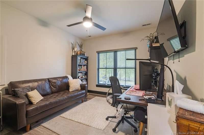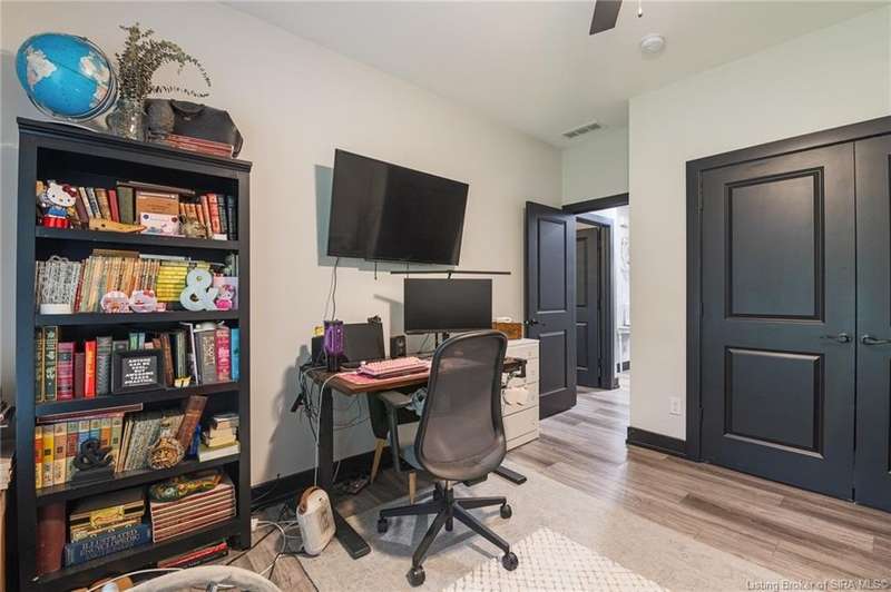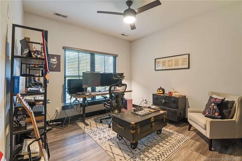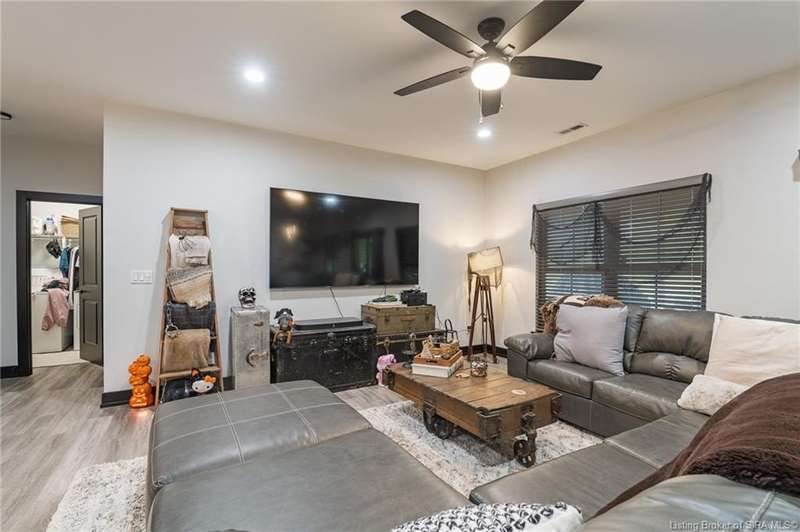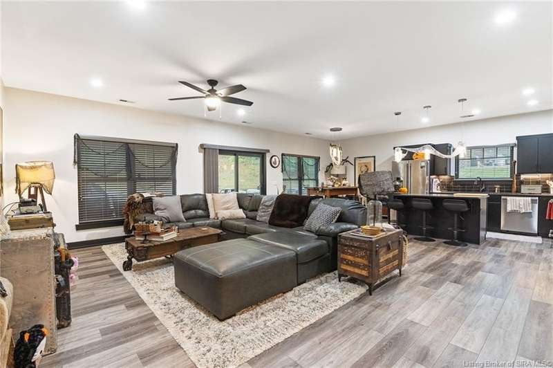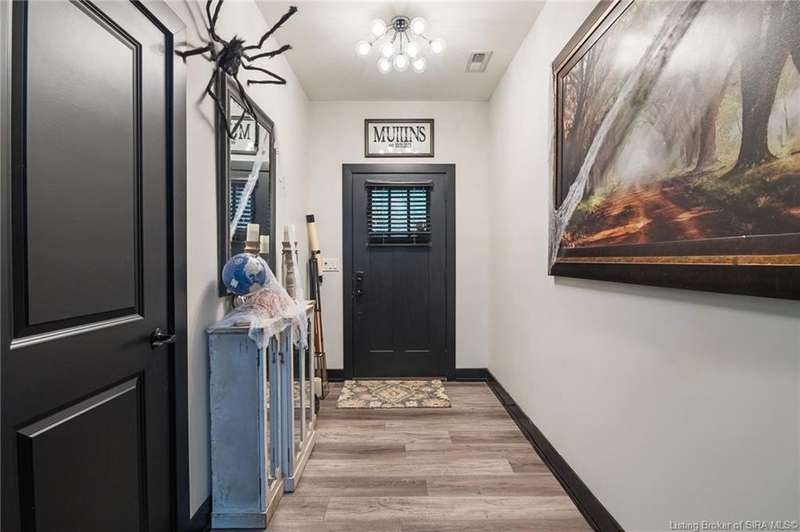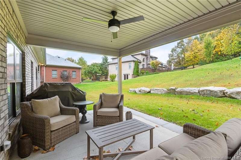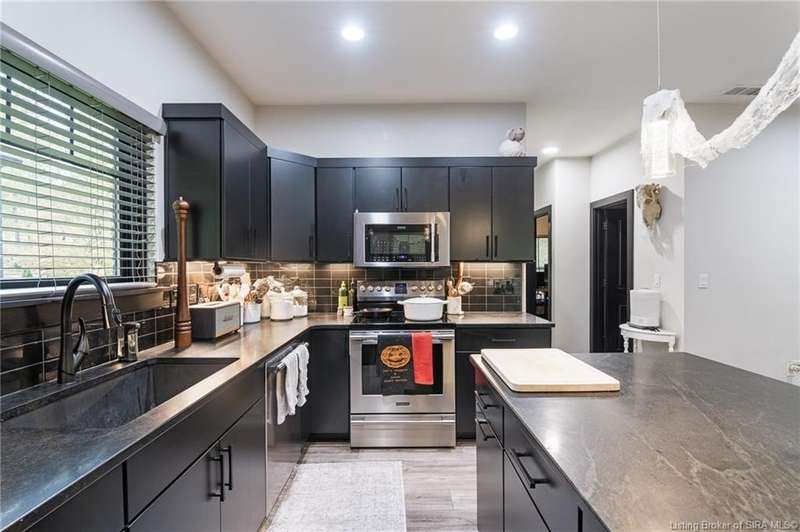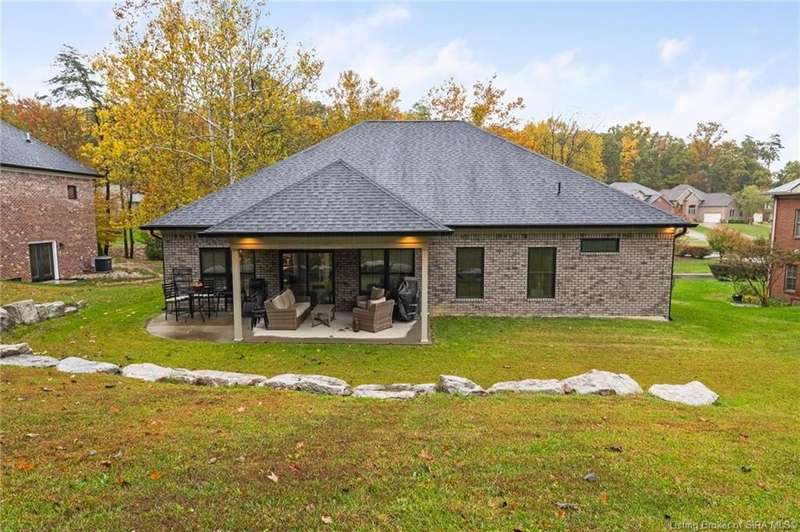 Location, location, location! This beautiful, move-in ready custom home offers the perfect blend of modern comfort and convenience. Nestled in the quiet Wooded Valley neighborhood, you’re just one mile from all the shopping, dining, and amenities along State Street in New Albany, and less than a mile from I-265 for easy commuting. Step inside to discover a bright, open-concept layout filled with natural light. The kitchen features sleek black cabinets, modern finishes, and spacious countertops, opening seamlessly to the living and dining areas—ideal for entertaining or relaxing. A sliding glass door leads to a covered back patio, perfect for outdoor dining or enjoying your peaceful surroundings. With an energy-efficient design, ample storage, and stylish details throughout, this home offers both beauty and practicality. Enjoy the perfect balance of convenience and tranquility—schedule your private showing today!