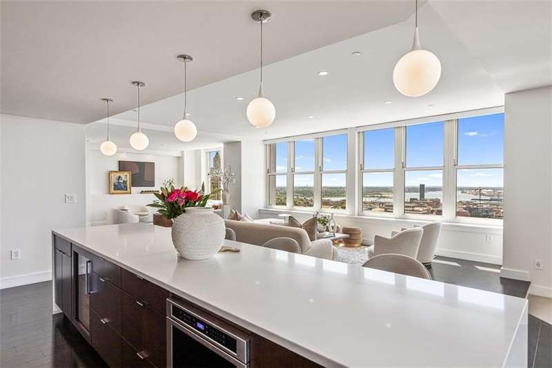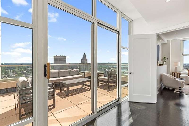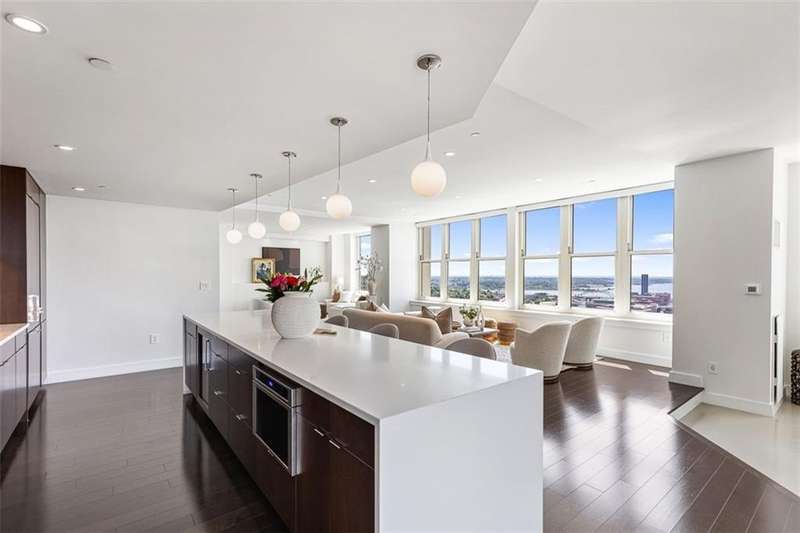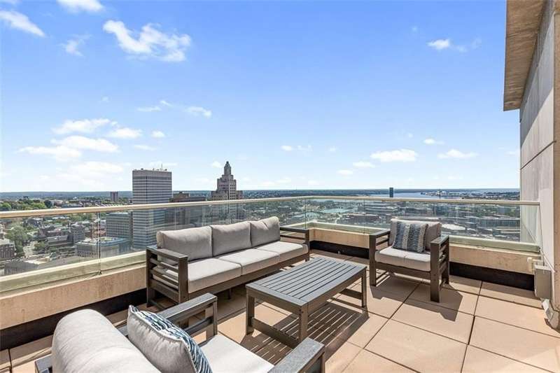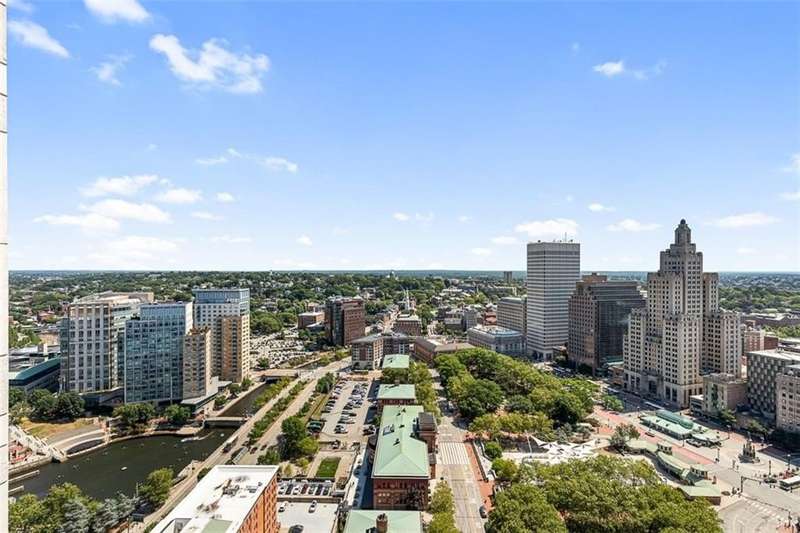 Set atop Rhode Island’s only full-service condo building, Penthouse 3102 is the Pinnacle of Downtown Living. Truly unsurpassed, this unit features sweeping open concept living spaces, walls of windows, high ceilings and 2 private terraces. Step inside and find a wide entry foyer with a convenient powder room and glimpses of the Providence skyline. The breathtaking great room, encompassing the entire south side of the 31st floor, will leave any guest in awe. The views from the oversized windows are truly incredible, and at night the twinkling cityscape provides endless visual entertainment. The sleek kitchen, with custom wood cabinetry, features a massive island, and professional grade appliances. The sunken dining room provides an ideal spot for formal or informal entertaining. The eastern wing of the unit is entirely devoted to your primary bedroom, bathroom, and private terrace, offering complete privacy and views of Downtown. The western wing features 2 additional bedrooms, a luxurious bathroom, walk in closet, and secondary service entrance with laundry room. Included in the sale is a private parking corner in the Residences garage, large enough for 2 cars plus a guest or service space. The Residences offers white glove personalized concierge and day porter services, 2 on-site restaurants, security, and indoor connectivity to some of the city’s greatest venues. Expansive living spaces, decadent design details and unsurpassed views truly elevate this unit above all else.
