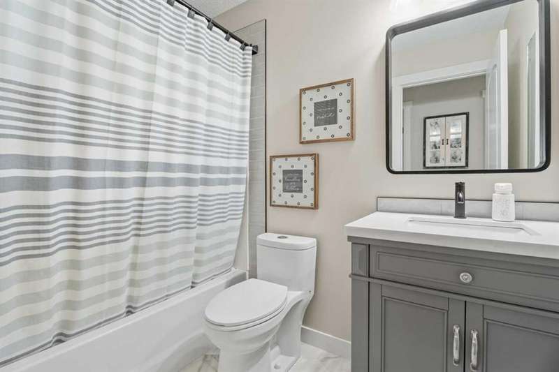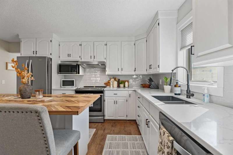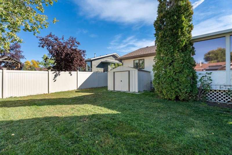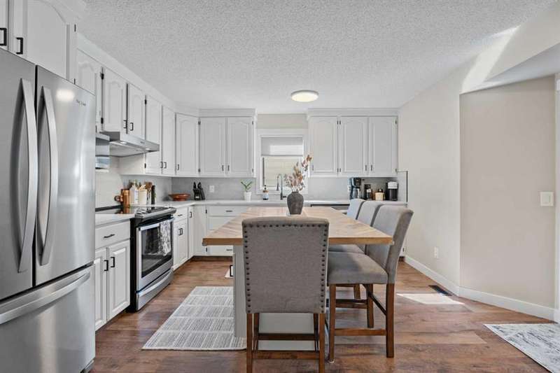 Discover this stylishly renovated front-drive bungalow in the welcoming community of Vulcan. This home offers five bedrooms and three full bathrooms, is fully finished, and ready for you to move in and enjoy. Its stucco exterior and covered front porch, set on a mature, tree-lined street, provide exceptional curb appeal. Step inside to beautifully updated spaces featuring vinyl flooring throughout the living areas, fresh paint and trim, and well-designed living spaces. The front room offers both formal dining and living, leading into an upgraded kitchen with quartz countertops and stainless steel appliances. From the kitchen, enter the sunroom overlooking a spacious backyard perfect for relaxing or entertaining family and friends. On the main floor, find two generous secondary bedrooms, convenient laundry with garage access, an updated four-piece bath, and a primary suite with walk-in closet plus a stunning three-piece ensuite. Comfort is ensured year-round by newer furnace and air conditioning systems. The fully finished basement features a large recreation room with a gas fireplace and bar area, two additional bedrooms, a modern three-piece bathroom, and ample storage space. Vulcan is located midway between Calgary and Lethbridge on Highway 23 a vibrant Southern Alberta Community. The town has embraced its shared name with the iconic Star Trek planet, there are lots of Star Trek themed attractions to check out. Check out the shops, furniture store, grocery, restaurants, parks, schools, hospital, recreation facilities and the community events. Schedule a private showing with your favourite agent today.