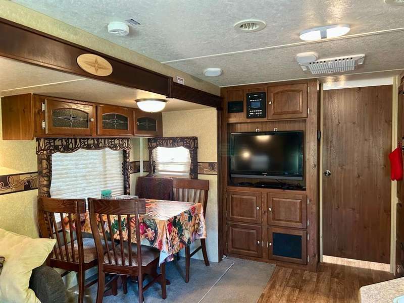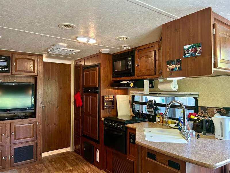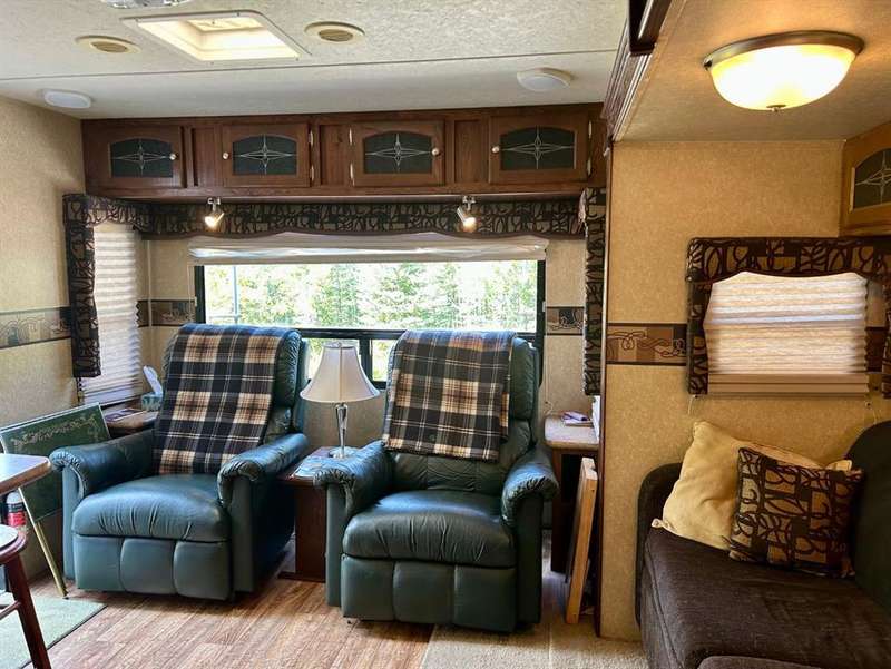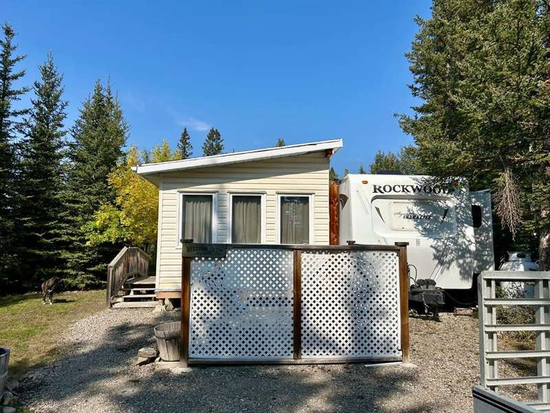 Tucked away in the quiet Riverside RV Village, this exceptional pie-shaped lot offers the perfect summer retreat for those seeking a peaceful escape without sacrificing comfort or convenience. Spanning approximately 6,000 square feet, the oversized lot is both spacious and private, thoughtfully developed to create a relaxing outdoor haven. Included with the property is a well-maintained 8’ x 30’ Forest River Inc. RV featuring one cozy bedroom—ideal for a couple or small family to unwind after a day of outdoor adventure. A sofabed adds additional sleeping space, if needed. A beautifully crafted 12’ x 20’ addition expands your living space and invites you to enjoy cooler evenings by the warmth of the propane fireplace, all while surrounded by nature. Whether you're sipping your morning coffee or relaxing on the private patio or gathering with friends around the private fire pit, this lot has everything you need to embrace the good life. The lot includes two handy sheds, with the larger one at the front offering ample room for use as a workshop, creative space, or guest overflow. Generous storage throughout the property ensures room for all your summer toys and gear. Enjoy full RV hookups and immediate access to the resort’s well-appointed clubhouse, complete with showers, washrooms, and laundry facilities—making extended stays effortless. The lot is just steps away from the Red Deer River, renowned for fishing and natural beauty, while nearby walking and biking paths let you explore the great outdoors at your own pace. The resort community also features family-friendly amenities including playgrounds, a sandpit, horseshoe pits, and even a basketball court. Golfers will appreciate the selection of scenic courses just minutes away, and with shopping close at hand, every convenience is within reach. Whether you're looking for a summer basecamp, a weekend getaway, or a quiet corner to relax and reconnect with nature, this Sundre River Resort property offers a rare blend of comfort, recreation, and tranquility. It's more than a lot—it’s your own piece of paradise.