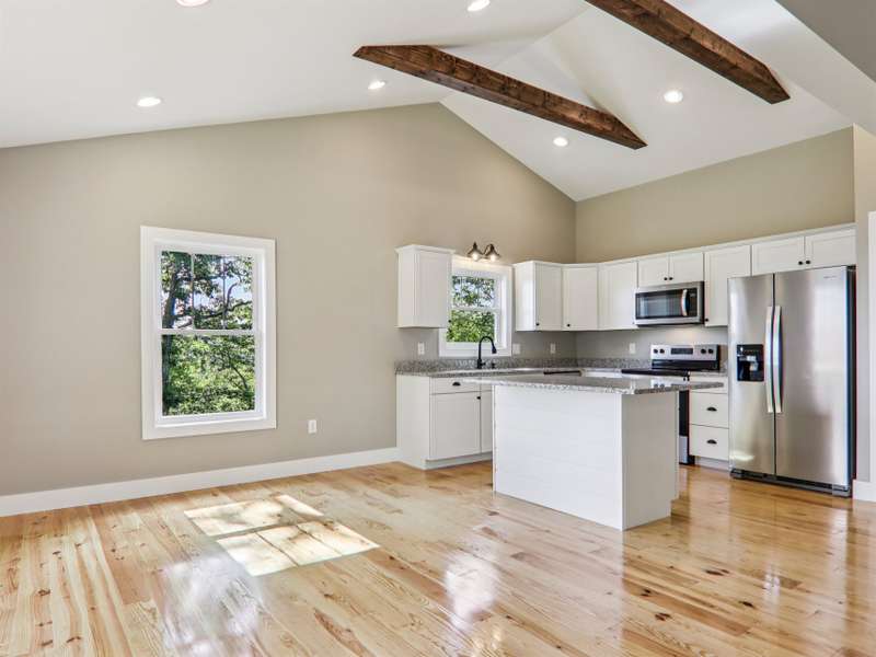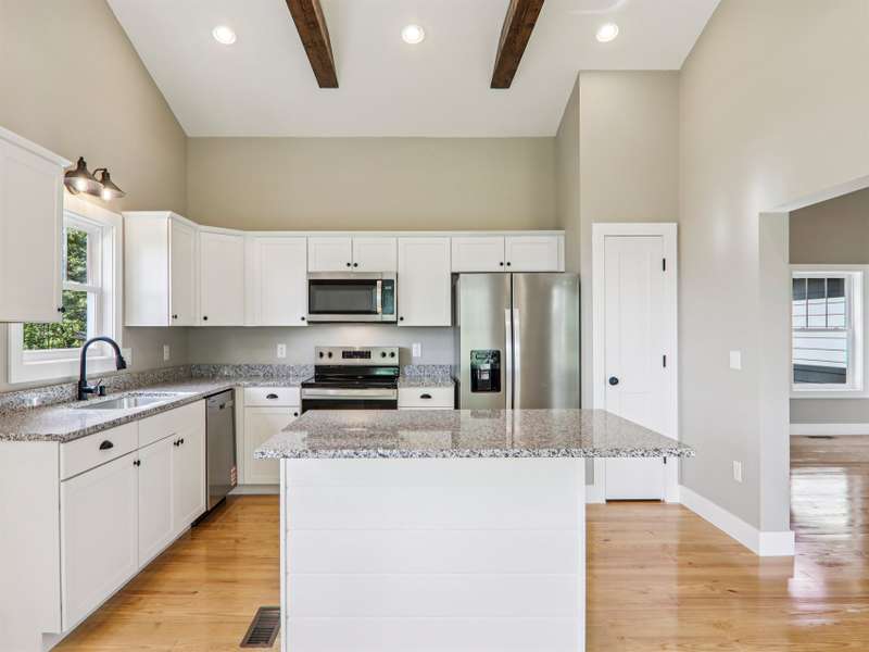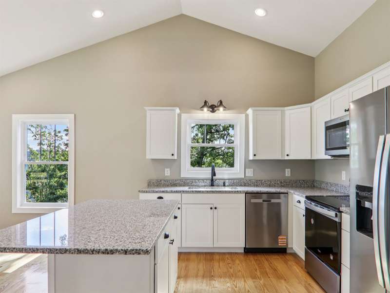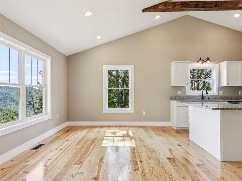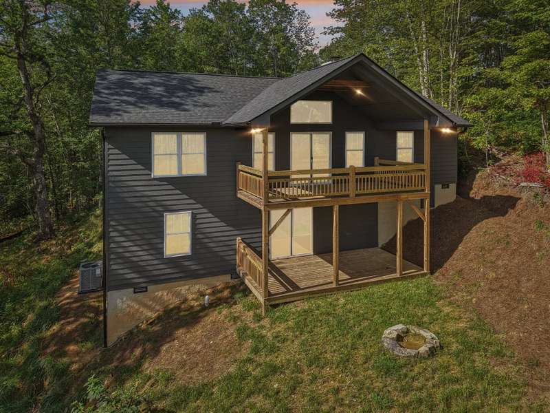 This brand-new home offers sweeping north-facing views of the Blue Ridge Mountains and a design meant for modern mountain living. The open floor plan creates an easy flow between the kitchen, dining, and living areas, making it ideal for gathering with family and friends. Large windows frame the mountain backdrop, and outdoor living is at its best with a wide deck designed for gathering, dining, or simply taking in the sweeping views. In the evenings, gather around the fire pit under the stars and enjoy the cool mountain air.