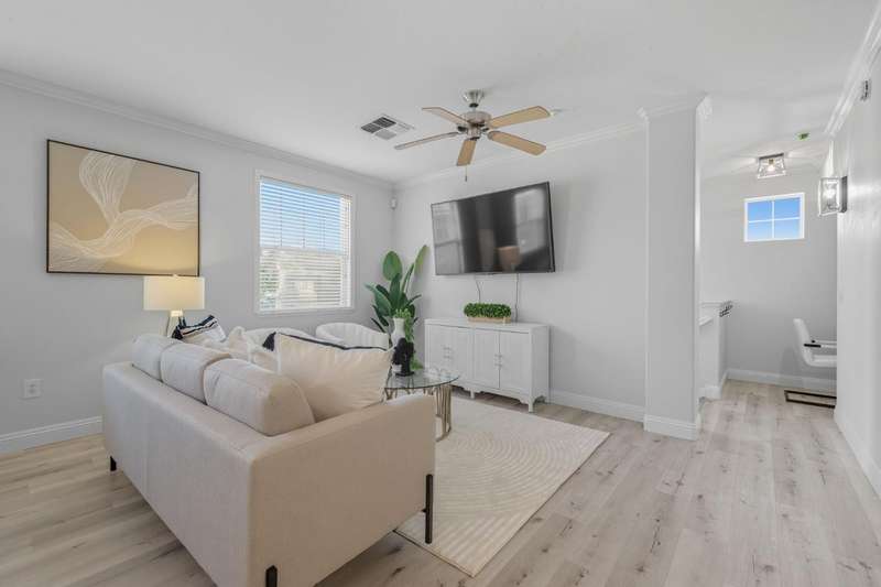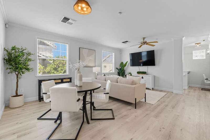 Welcome to 9625 Coney Island Circle, a beautifully updated 2-bedroom, 2-bath condo in the incredible community of Laguna West. Thoughtfully renovated by the current owner, this home blends modern upgrades with everyday comfort in one of Elk Grove's most convenient locations. This two-story condo features the main entry and attached garage on the ground level, with all living spaces upstairs for added privacy and light. Inside, you'll find a bright, open layout with updated flooring and a refreshed kitchen featuring quartz countertops, stainless steel appliances, and sleek cabinetry. The open-concept living and dining areas flow seamlessly to a private balcony, creating an inviting indoor-outdoor feel. The primary suite includes a walk-in closet and updated bath with clean, contemporary finishes. A second bedroom and full bath provide flexible space for guests or a home office. Additional highlights include updated central heating & air system (2022), a built-in desk at the top of the stairs, in-unit laundry, and access to community amenities such as a pool, spa, gym, and clubhouse. Conveniently located near I-5, shopping, dining, and California Northstate University, this condo offers low-maintenance living at its best.