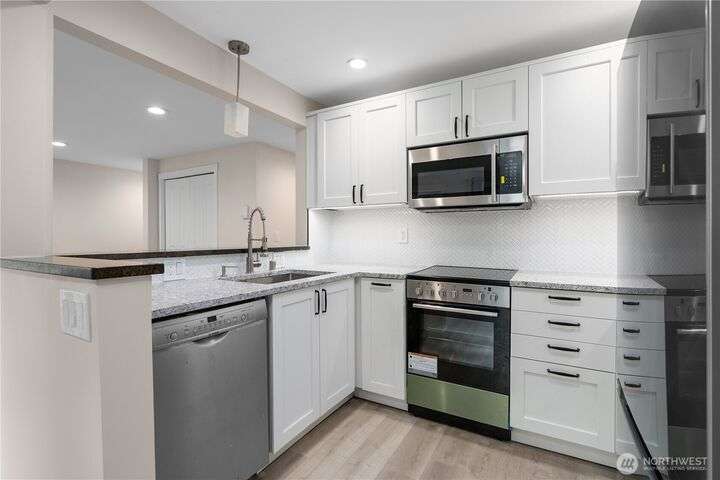 Come see this fully updated Villa Sonoma home which is perfect for homeowners or investors. No Rental Cap and ideally located near Kirkland’s downtown waterfront, Google and Microsoft campuses, Costco, I-405, and Lake Washington High School. Updated kitchen with new cabinets, countertops and new appliances. A modern bathroom with new flooring, floating vanity and new tub/shower. Primary bedroom comes with spacious walk-in closet with California closet shelving. New flooring throughout. Ground floor unit for entry and nearby covered parking. Covered patio with close access to outdoor pool area.
