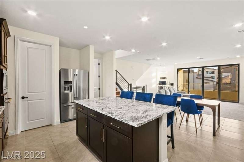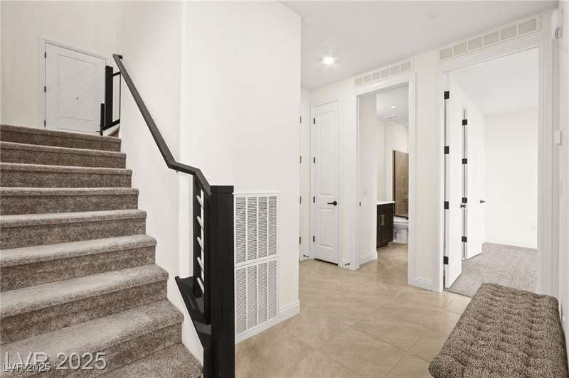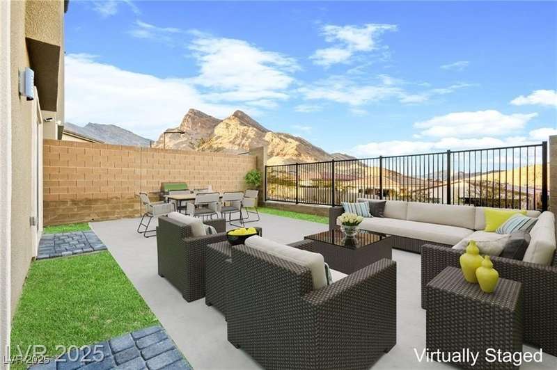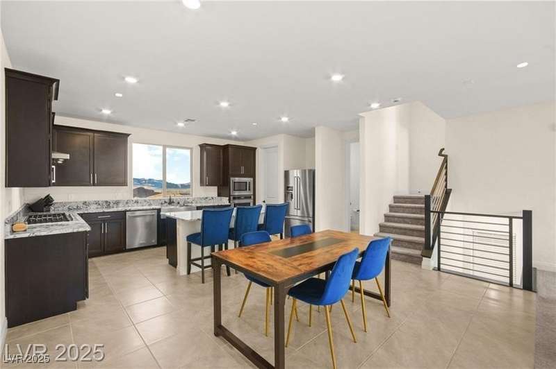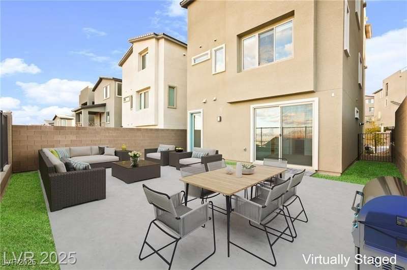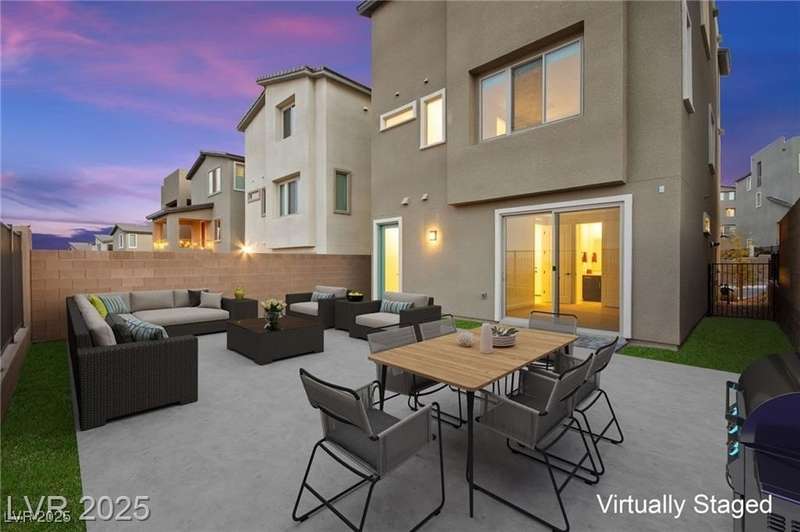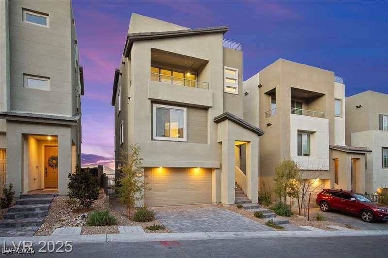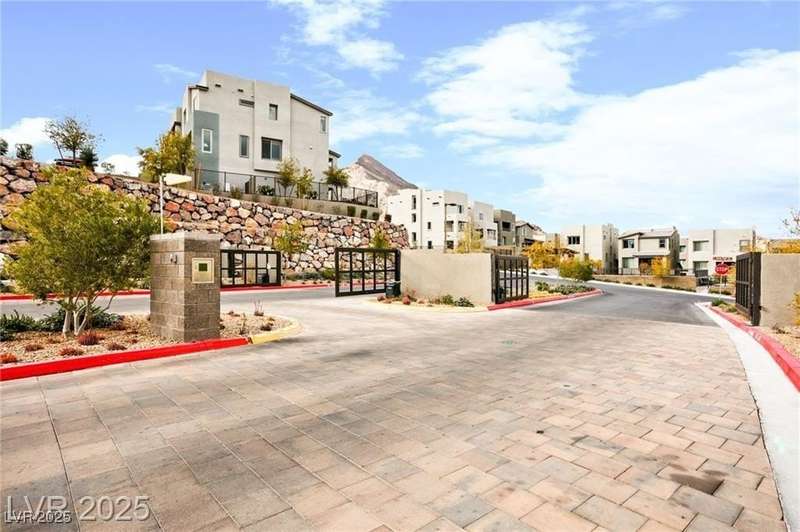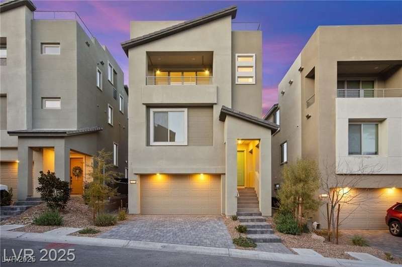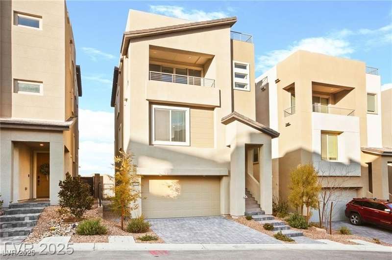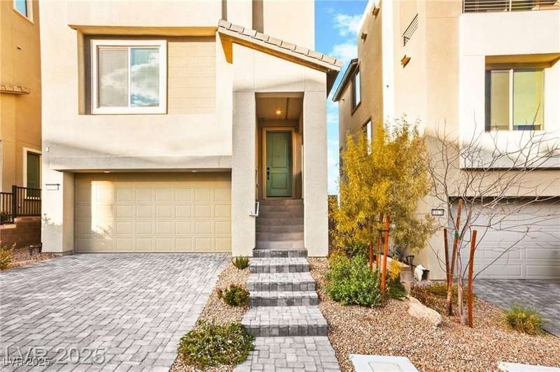 Experience the elegance and charm of this stunning 3-bedroom, 4-bathroom home, perfectly situated in the desirable Kestrel Village of Summerlin. With its contemporary design and refined finishes, this home exudes timeless sophistication. The interior boasts beautiful tile flooring and a modern, sleek stair railing. The kitchen is a chef’s dream, featuring upgraded espresso cabinetry, granite countertops, and premium Kitchen Aid stainless steel appliances. Additional amenities include a tankless water heater and a water softener system. Relax and unwind on the rooftop deck, offering breathtaking 360-degree views of the city and surrounding mountains. This exceptional home blends style, comfort, and tranquility for a truly elevated living experience.