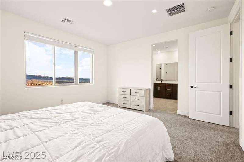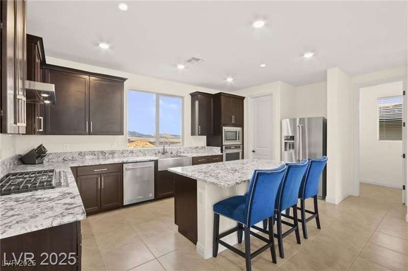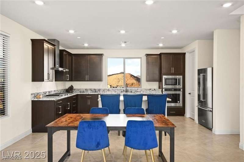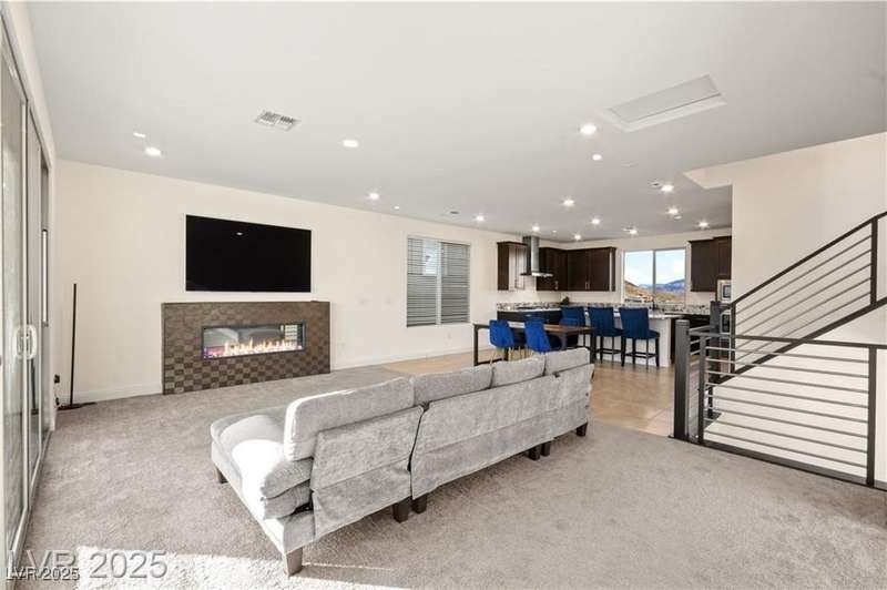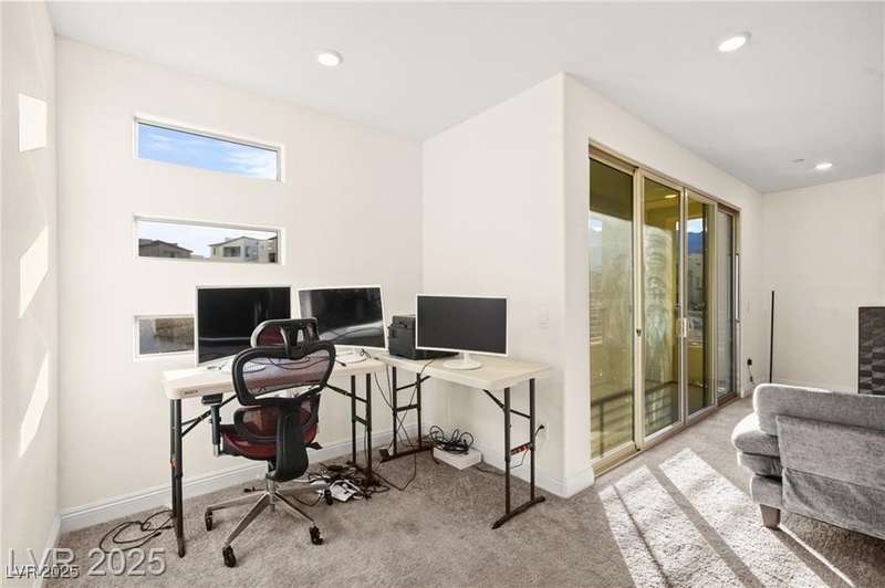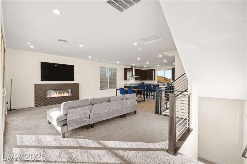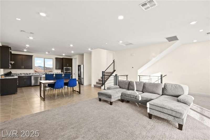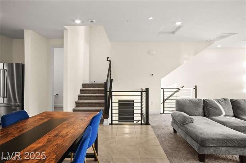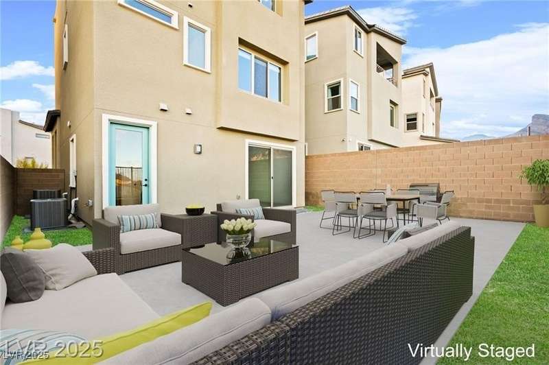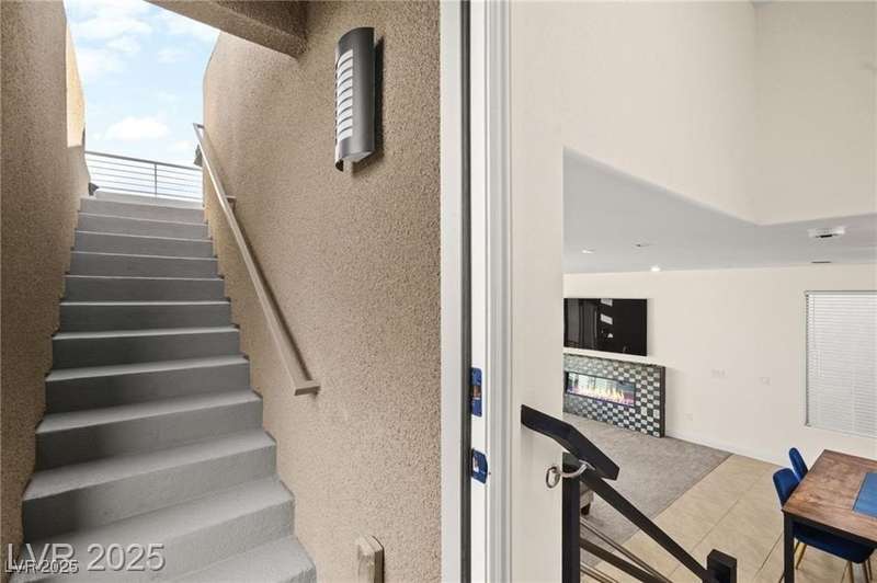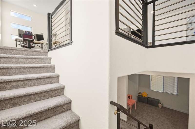 Experience the elegance and charm of this stunning 3-bedroom, 4-bathroom home, perfectly situated in the desirable Kestrel Village of Summerlin. With its contemporary design and refined finishes, this home exudes timeless sophistication. The interior boasts beautiful tile flooring and a modern, sleek stair railing. The kitchen is a chef’s dream, featuring upgraded espresso cabinetry, granite countertops, and premium Kitchen Aid stainless steel appliances. Additional amenities include a tankless water heater and a water softener system. Relax and unwind on the rooftop deck, offering breathtaking 360-degree views of the city and surrounding mountains. This exceptional home blends style, comfort, and tranquility for a truly elevated living experience.