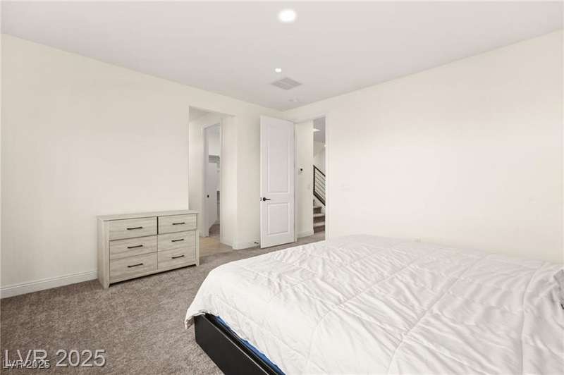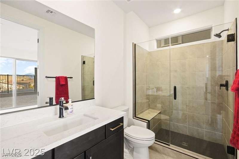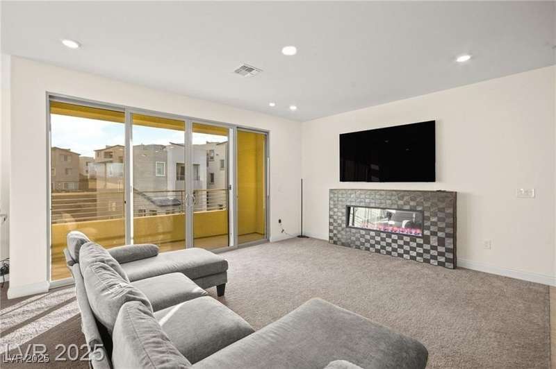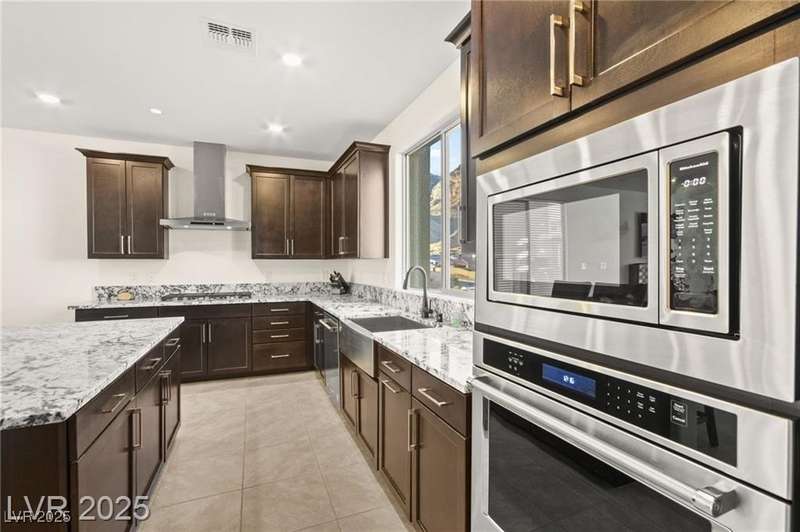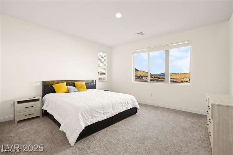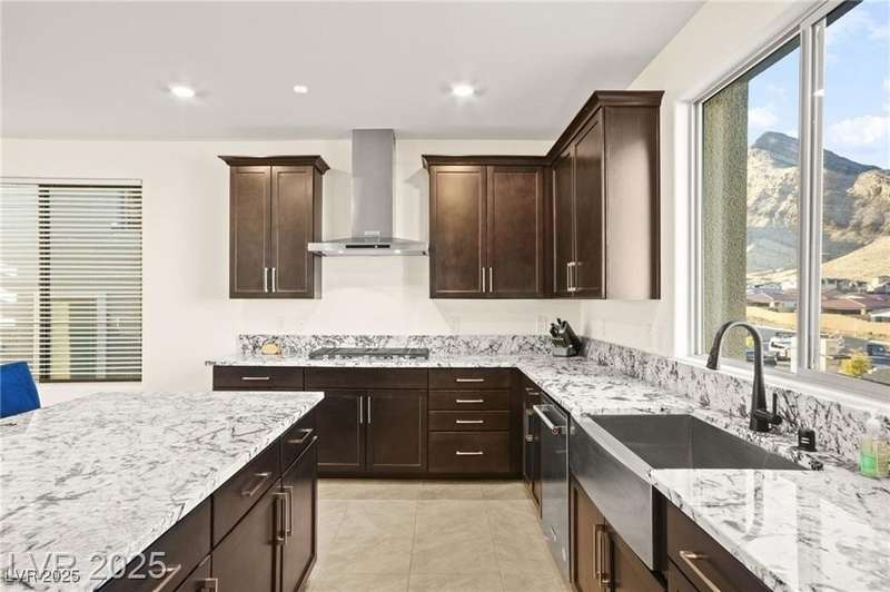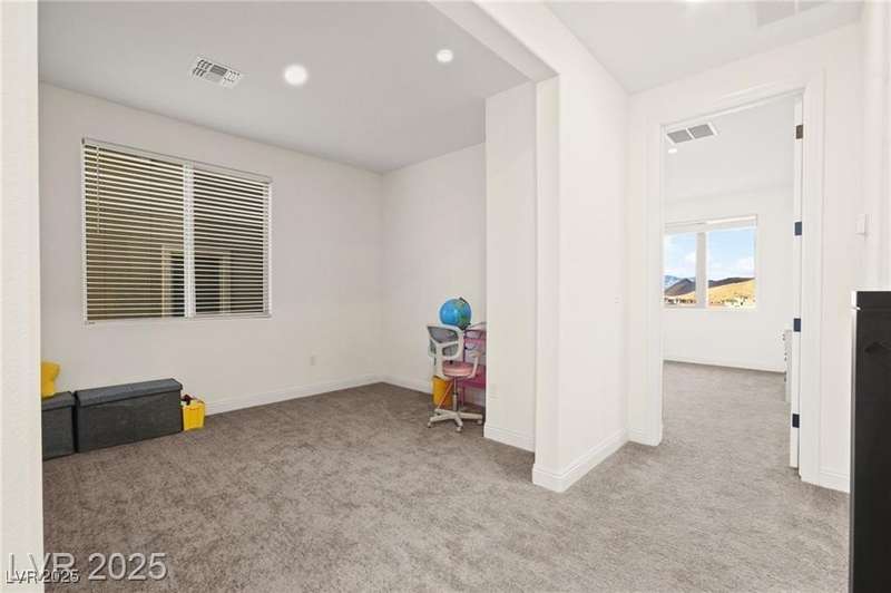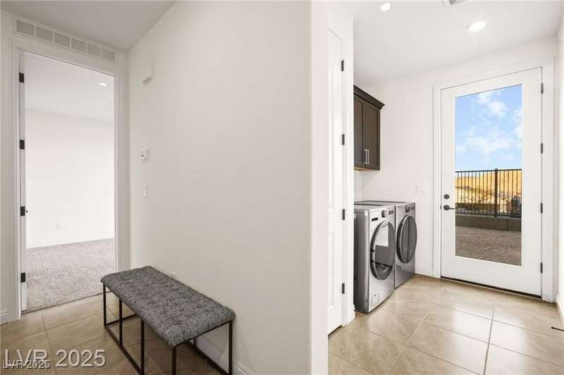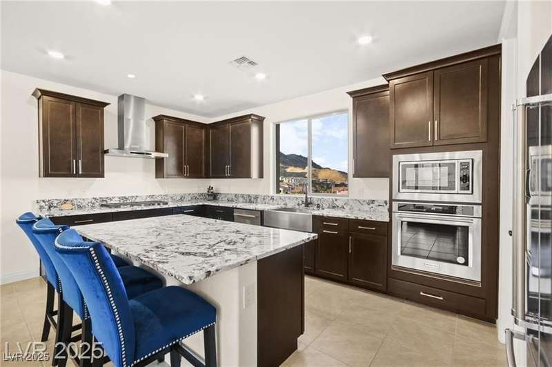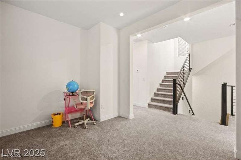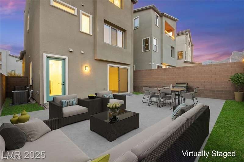 Experience the elegance and charm of this stunning 3-bedroom, 4-bathroom home, perfectly situated in the desirable Kestrel Village of Summerlin. With its contemporary design and refined finishes, this home exudes timeless sophistication. The interior boasts beautiful tile flooring and a modern, sleek stair railing. The kitchen is a chef’s dream, featuring upgraded espresso cabinetry, granite countertops, and premium Kitchen Aid stainless steel appliances. Additional amenities include a tankless water heater and a water softener system. Relax and unwind on the rooftop deck, offering breathtaking 360-degree views of the city and surrounding mountains. This exceptional home blends style, comfort, and tranquility for a truly elevated living experience.
