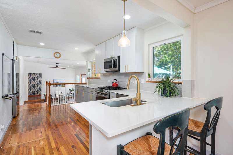 Welcome to this beautifully updated home in Terrell Heights, this inviting one-story offers timeless curb appeal with fresh updates and a flexible layout. Inside, original hardwood floors and clean lines frame two living areas arranged for both relaxation and entertaining. Built-in shelving adds charm and function, while brand-new Pella and Andersen windows throughout flood the interiors with light. The kitchen features quartz countertops, a breakfast bar, stainless appliances, and gas cooking, all open to the dining area for easy flow. Four well-proportioned bedrooms include a generous primary with a walk-in closet and outdoor access. Both bathrooms have been fully updated. In addition, there is a versatile office flex space and a secondary living space with backyard access. Out back, enjoy a private patio and yard with new fence, mature trees, a grassy lawn, turf, and a refreshing above-ground pool, perfect for summer afternoons or weekend gatherings. - 11/7/2025 8:15:34 PM