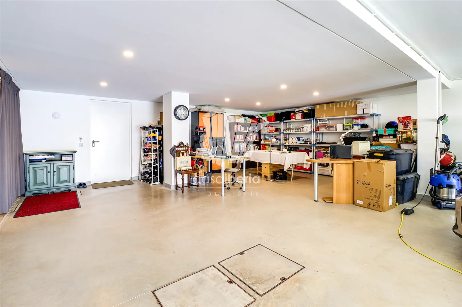 In the basement, there is a spacious garage with capacity for four vehicles, a laundry room, and a versatile space ideal for a gym, home cinema, or any other need, along with technical areas and additional storage.