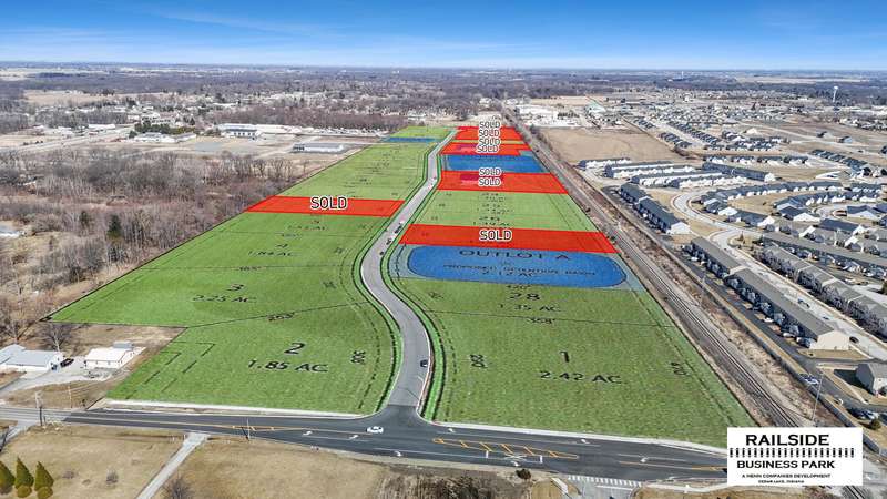 Lot 28 is zoned B-3-WATER FEATURE LOT--Retail, restaurants, professional services, banks, gyms, grocery, daycare/senior/assisted living centers, liquor sales, building materials, amusement, entertainment, pools, skating, club, hotels/lodges, machinery rental and all like kind of businesses. RAILSIDE Business Park is located in the Cedar Lake.Great opportunity for all B-3 uses in this growing area!!! Lot 28 has a B-3 zoning sites will be develop-ready with roadway and utilities in place, 3 phase electrical service available. Multiple lots are allowed to be combined into one building site. Multi-tenant/occupants per buildings are allowed up to a total of three (3). TIME IS NOW TO START THINKING ABOUT A MOVE TO THIS INDIANA BUSINESS PARK. Great interstate connectivity as well as quick access to the Rt 41/Rt 231 and Rt 2 interchange on I-65 as well as Rt 10/Rt 114 gives access across to Illinois. Rt 41 north and south access from Chicago to the south are limitless.