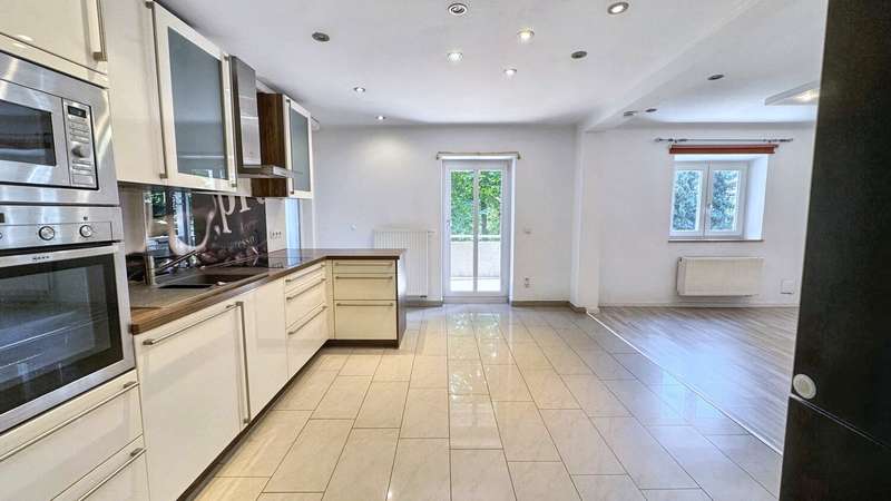 This attractive 3-room apartment impresses with a well thought-out floor plan and a quiet orientation. It not only offers living comfort, but also an elegant ambience thanks to the high-quality furnishings such as the laminate flooring and high-gloss stone flooring. The spacious living area with open-plan fitted kitchen - equipped with modern electrical appliances - offers direct access to the balcony and an additional loggia with a view of the greenery. The daylight bathroom is equipped with a whirlpool bathtub and two well-designed rooms are available for individual use. A large cellar room offers additional storage space, while a parking space directly in front of the house rounds off the offer. Come and view this ideal combination of comfort and practical benefits in a central, urban location for yourself.
