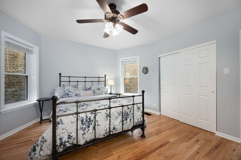 IT DOES NOT GET MUCH BETTER THAN THIS!!! This amazing 4-5 Bedroom plus office/workout room, 3 newer bathrooms, duplex unit is located in Budlong Woods/Lincoln Square. This is truly a Bungalow in a Condo Body. Amazing space, meticulously maintained with gleaming hardwood floors on both levels of living, fireplace, bay windows, loads of light, 3 bedrooms on first floor and 2 bedrooms in lower level, (1 can be an exercise room) spacious living spaces including large living room/dining room, spectacular family room, open office with built-in desk, laundry room, storage. Kitchen features all the Bells and Whistles a true chef would want with built-in kitchen table. Exterior features front wrought-iron fence, landscaped areas, 1 garage parking spot with an EV charger. Inclusion is freezer and iron art work above the fireplace. Area amenities are Nature Center, Lincoln Square, Andersonville, great restaurants, parks, health club, and so much more. Too good to be true. LIVE LARGE!!!!
