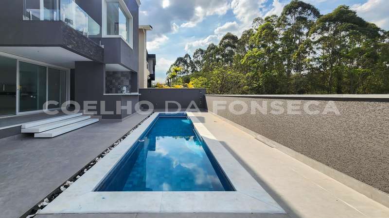 Casa nova no Tamboré XI, um dos melhores e mais modernos residenciais de Alphaville/Tamboré. Espaços voltados para a vista permanente. 4 suítes, living em 3 ambientes, escritório, cozinha integrada com a área gourmet e piscina. Aquecimento solar.
