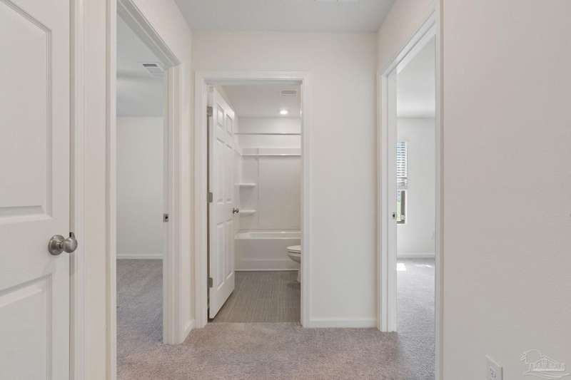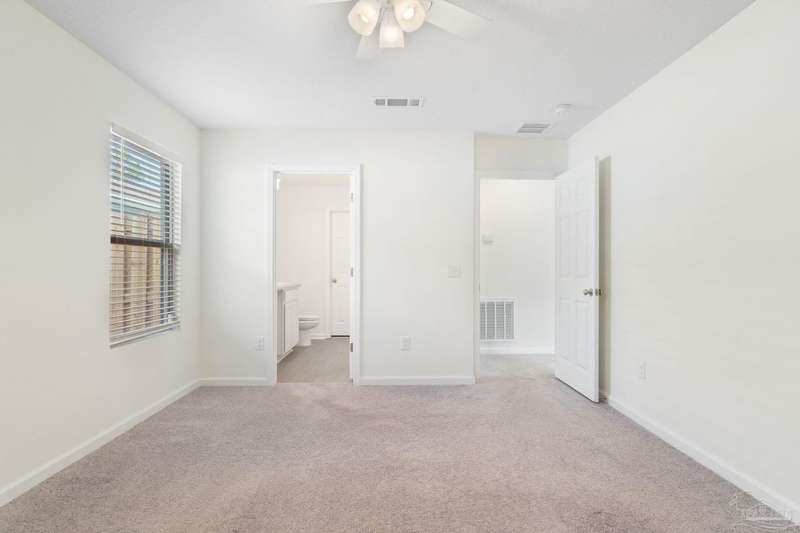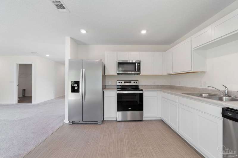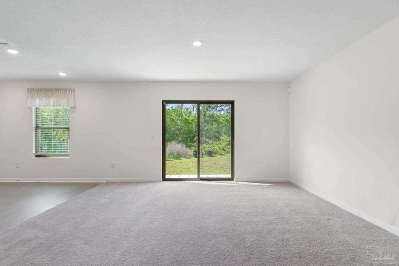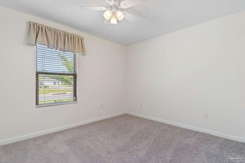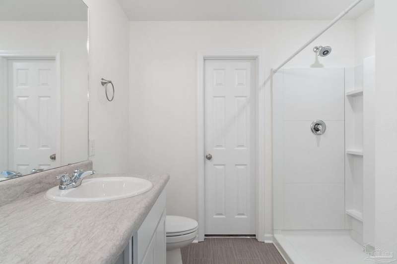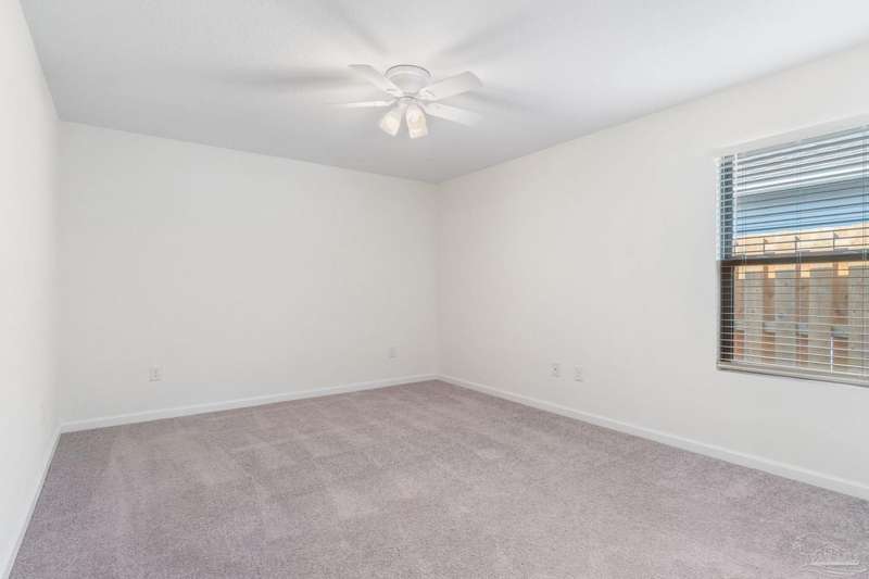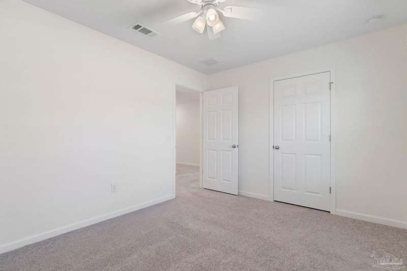 Located in the desirable Schooner Landing subdivision, this 2022-built home offers convenience to NAS Pensacola, Corry Station, Naval Hospital Pensacola, and the beautiful white sand beaches of Perdido and Pensacola Beach. Inside, you'll find an open-concept living and dining area-ideal for hosting friends and family or simply relaxing at home. The kitchen is well-proportioned and functional, featuring stainless steel electric appliances and ample counter space. Step outside to enjoy summer evenings in the private backyard, where you can unwind while watching local wildlife and birds. The spacious primary suite is just off the living area and includes an en suite bath and a generous walk-in closet. Two additional bedrooms share a full bathroom with neutral finishes, offering a clean canvas for your personal style. An indoor laundry room provides added convenience and leads to a roomy two-car garage. Whether you're looking for a full-time residence or a smart investment opportunity, this well-maintained home is ideal.